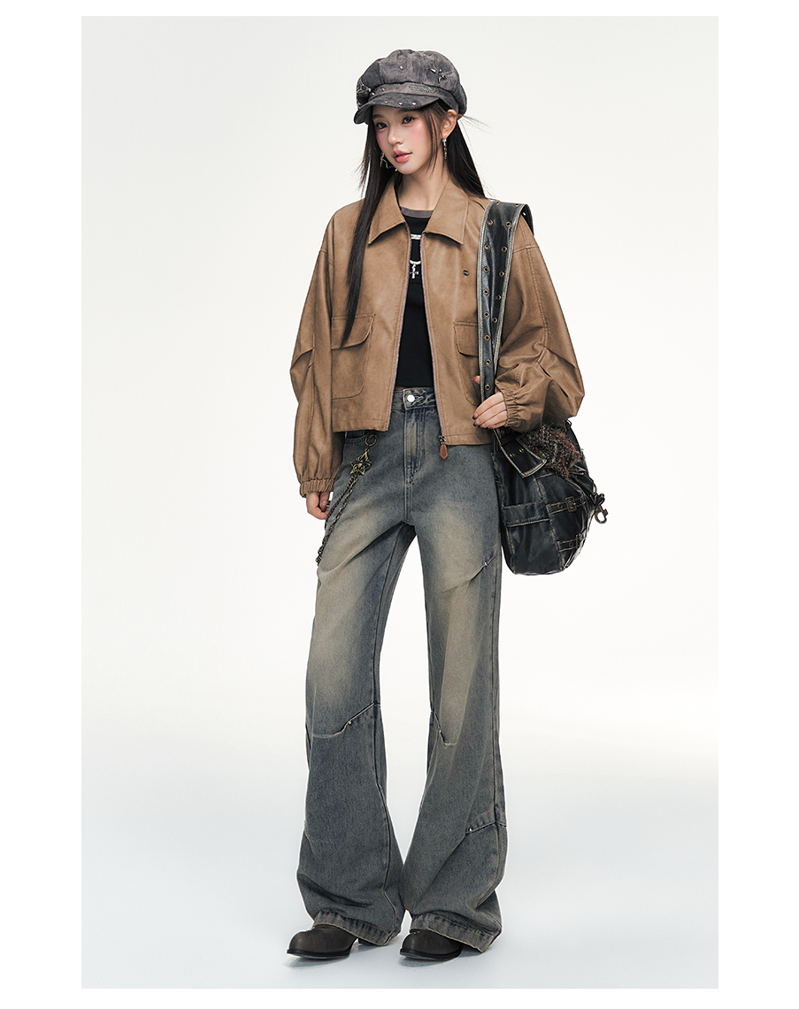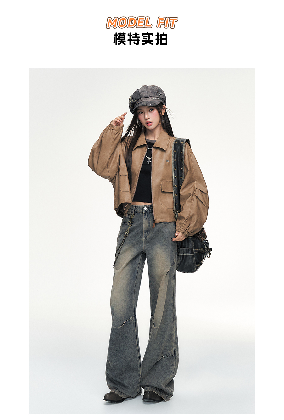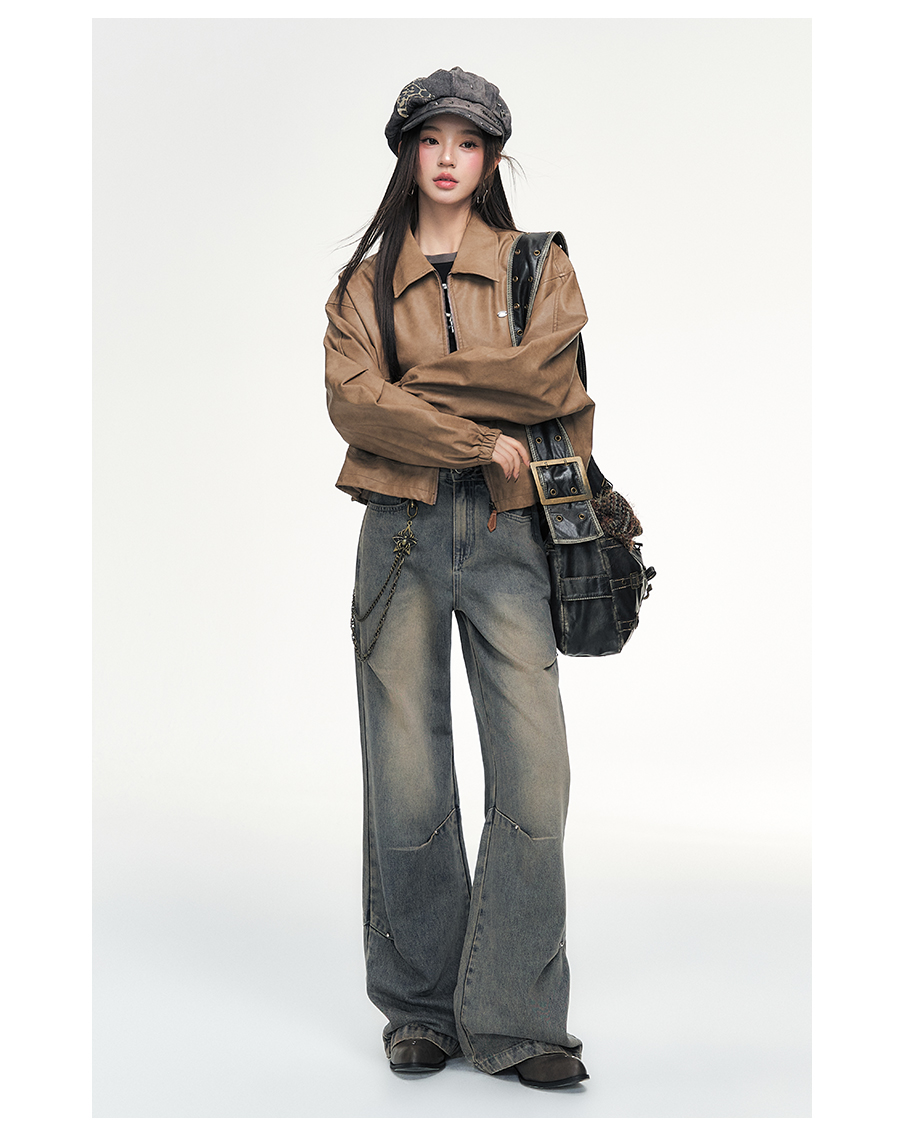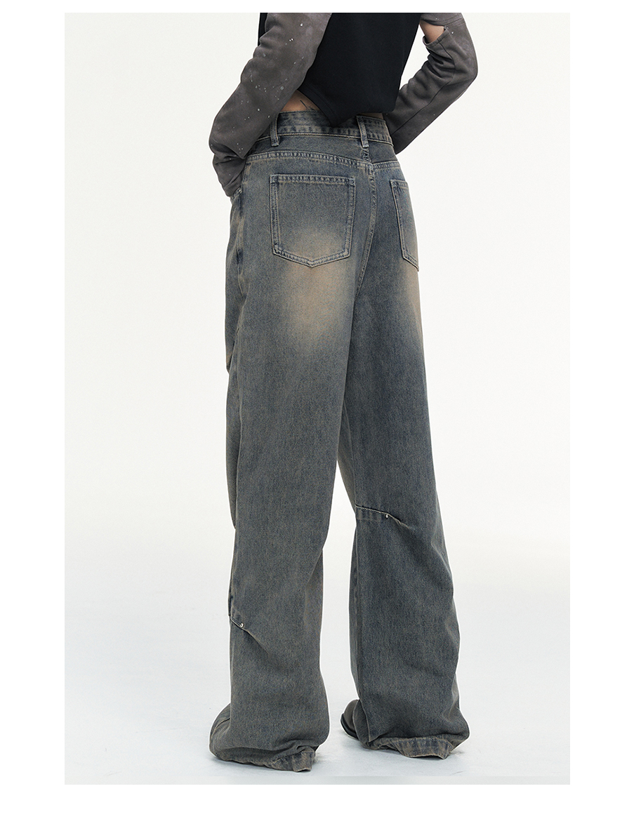 P&X设计师女装 美式潮流复古做旧牛仔裤宽松阔腿裤825110063 蓝色