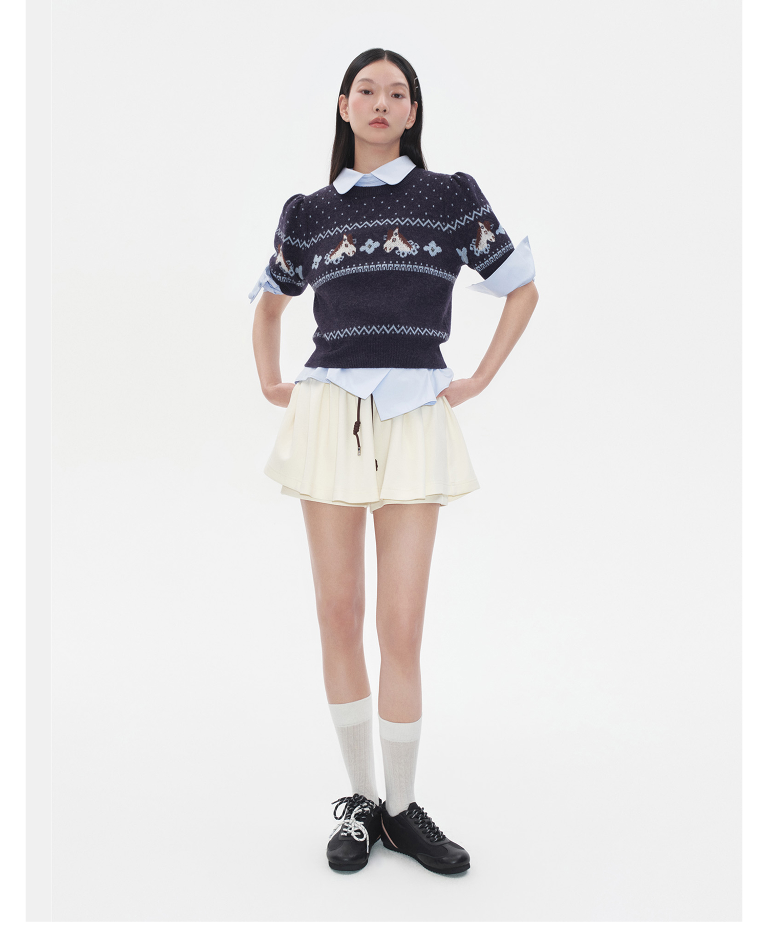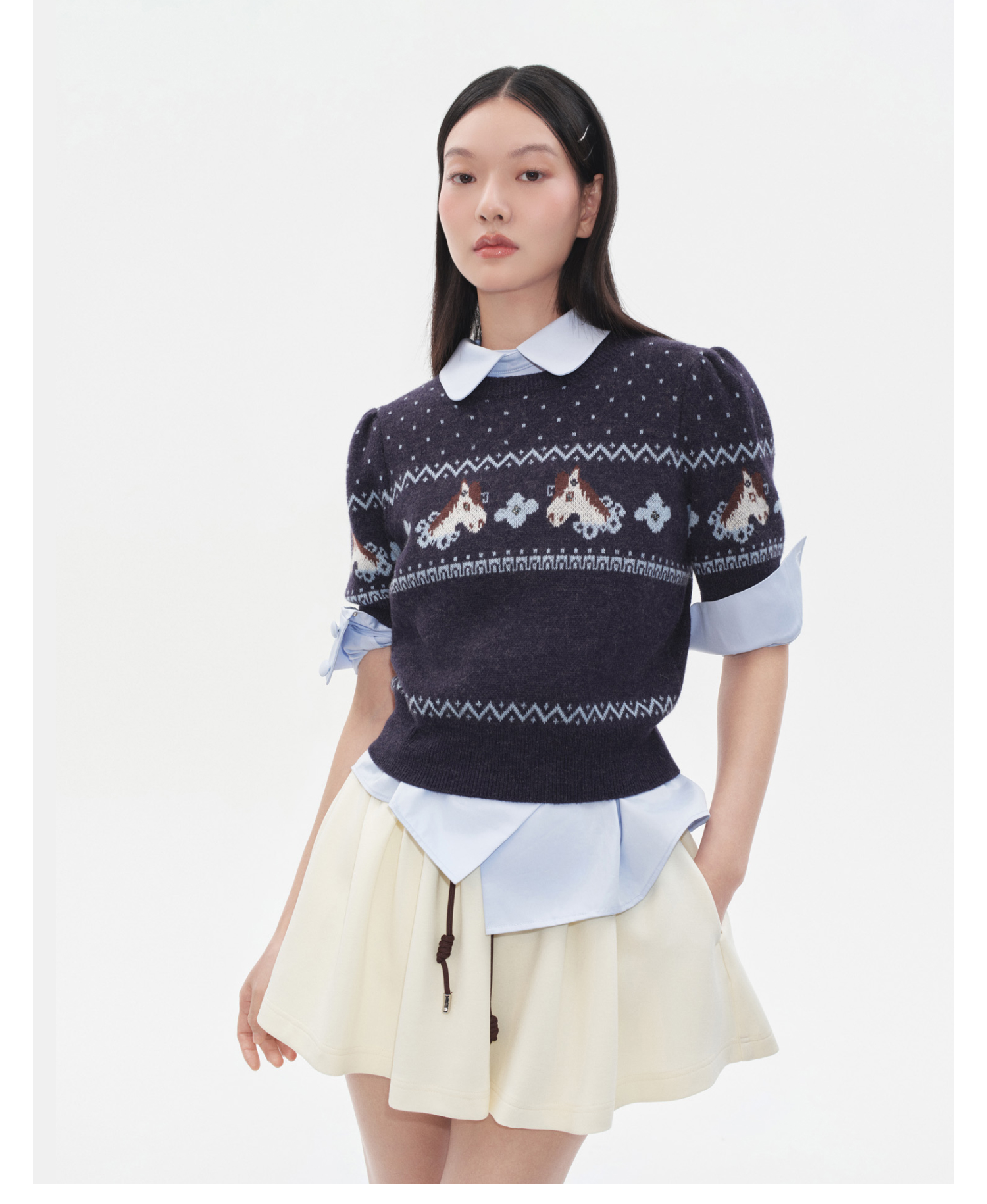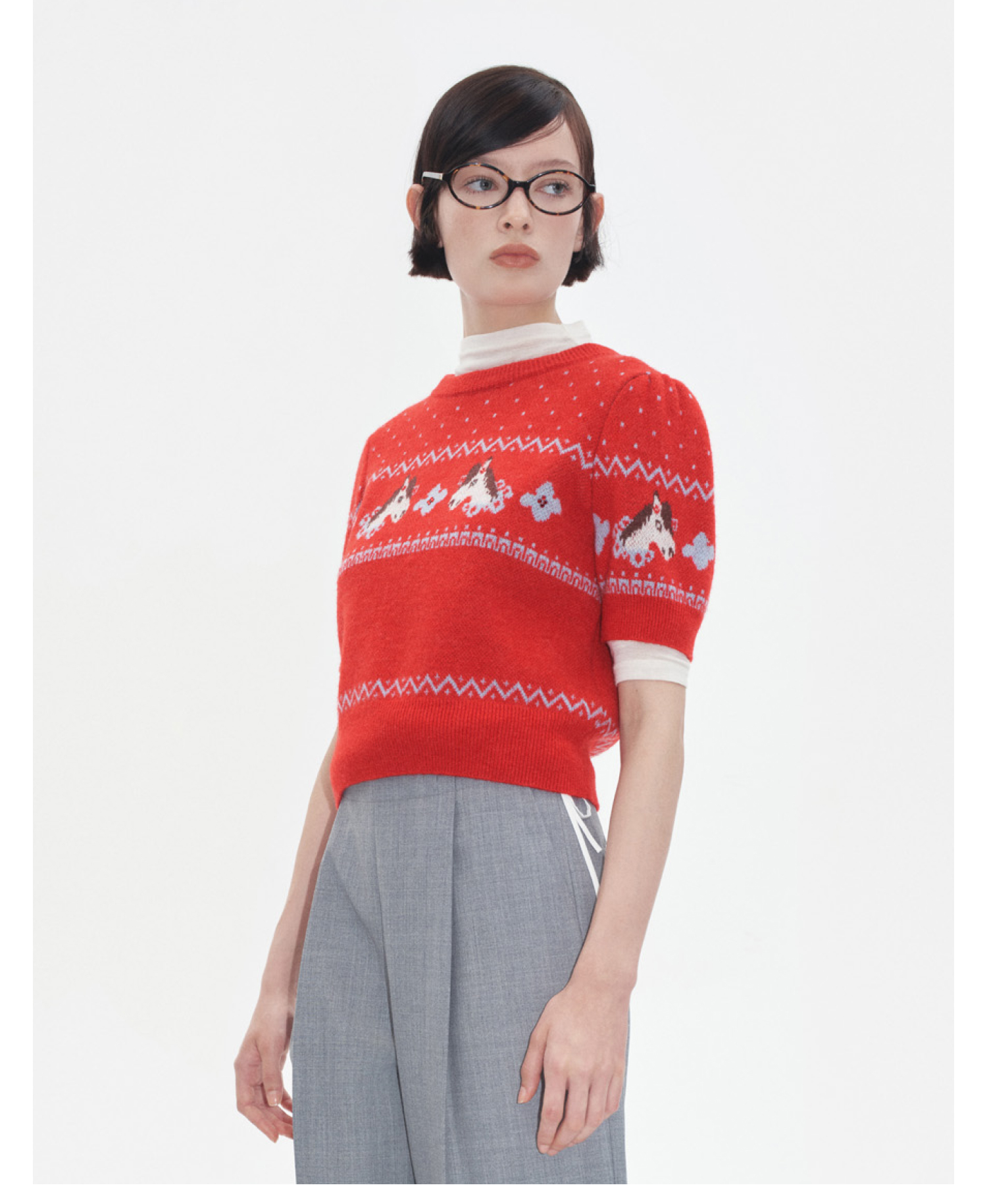 HERLIAN 2025年冬季女士小马提花短袖套头毛衫