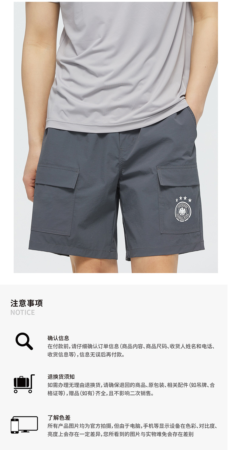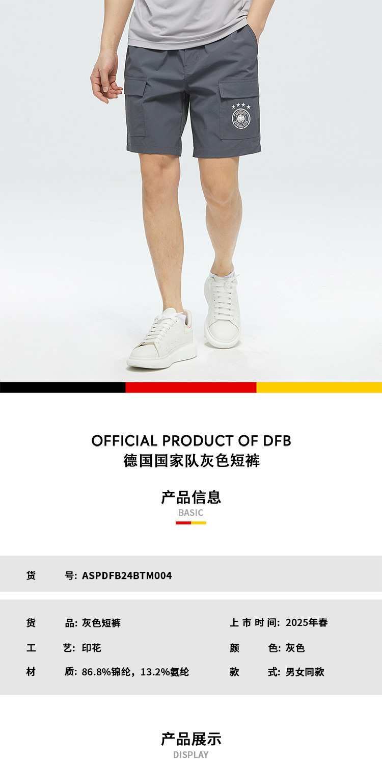 【官方正版】德国国家队 | 春夏百搭透气灰色短裤男士球迷
