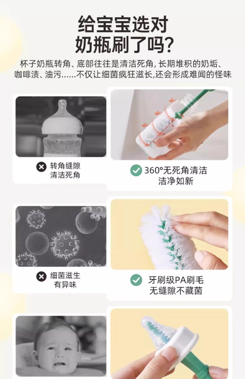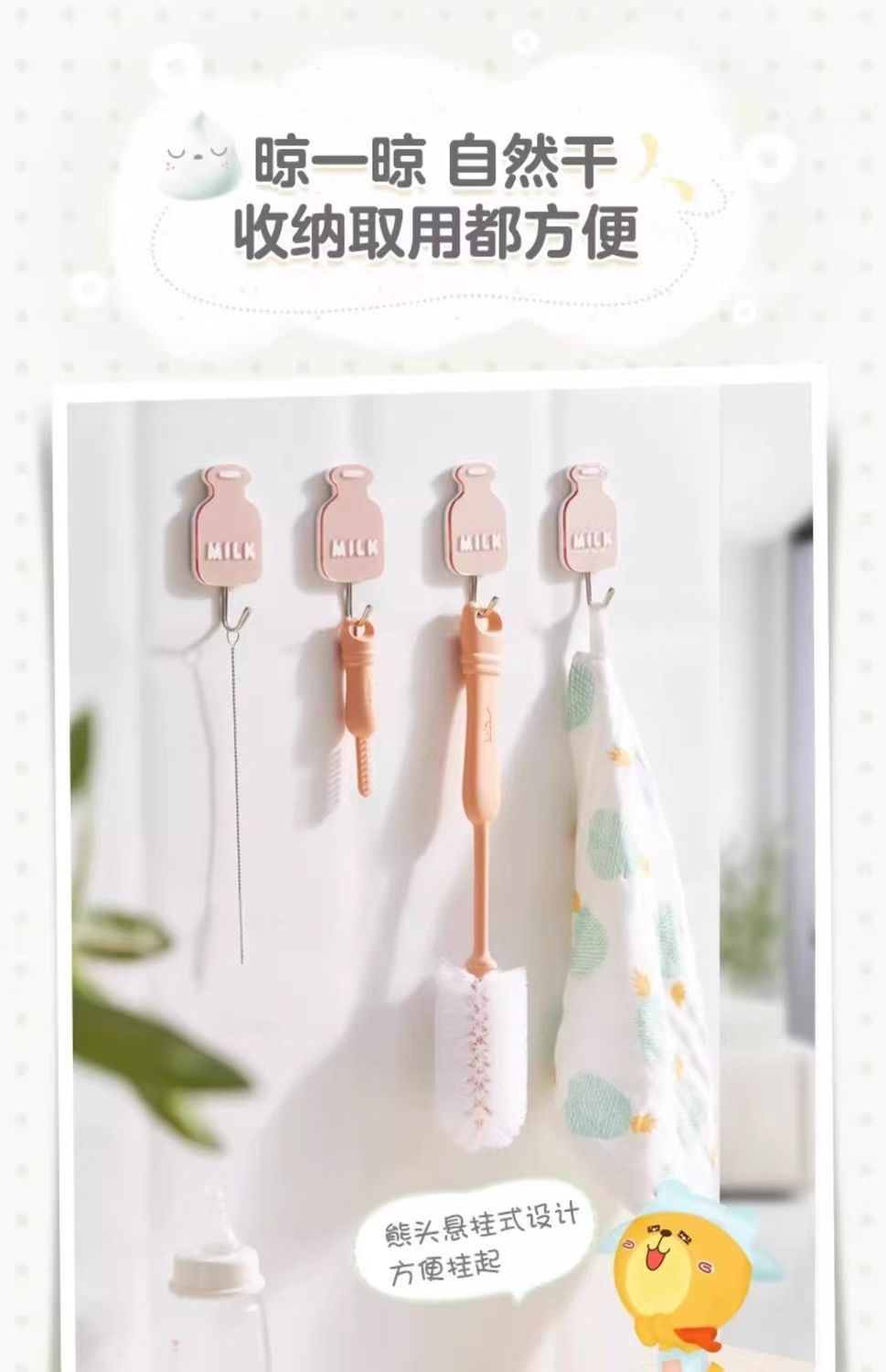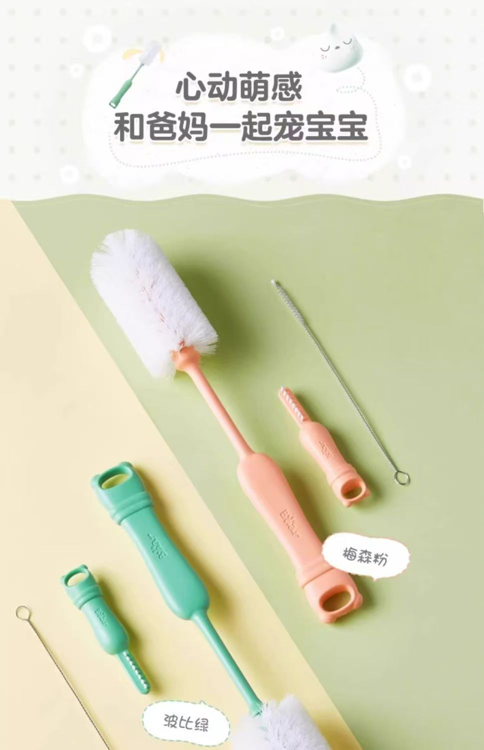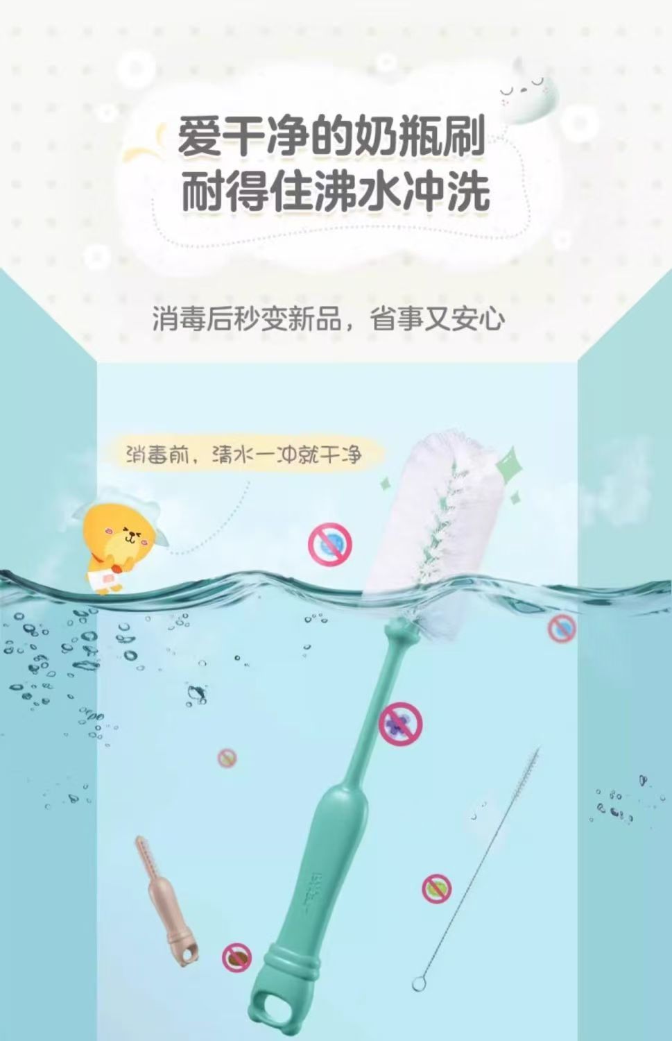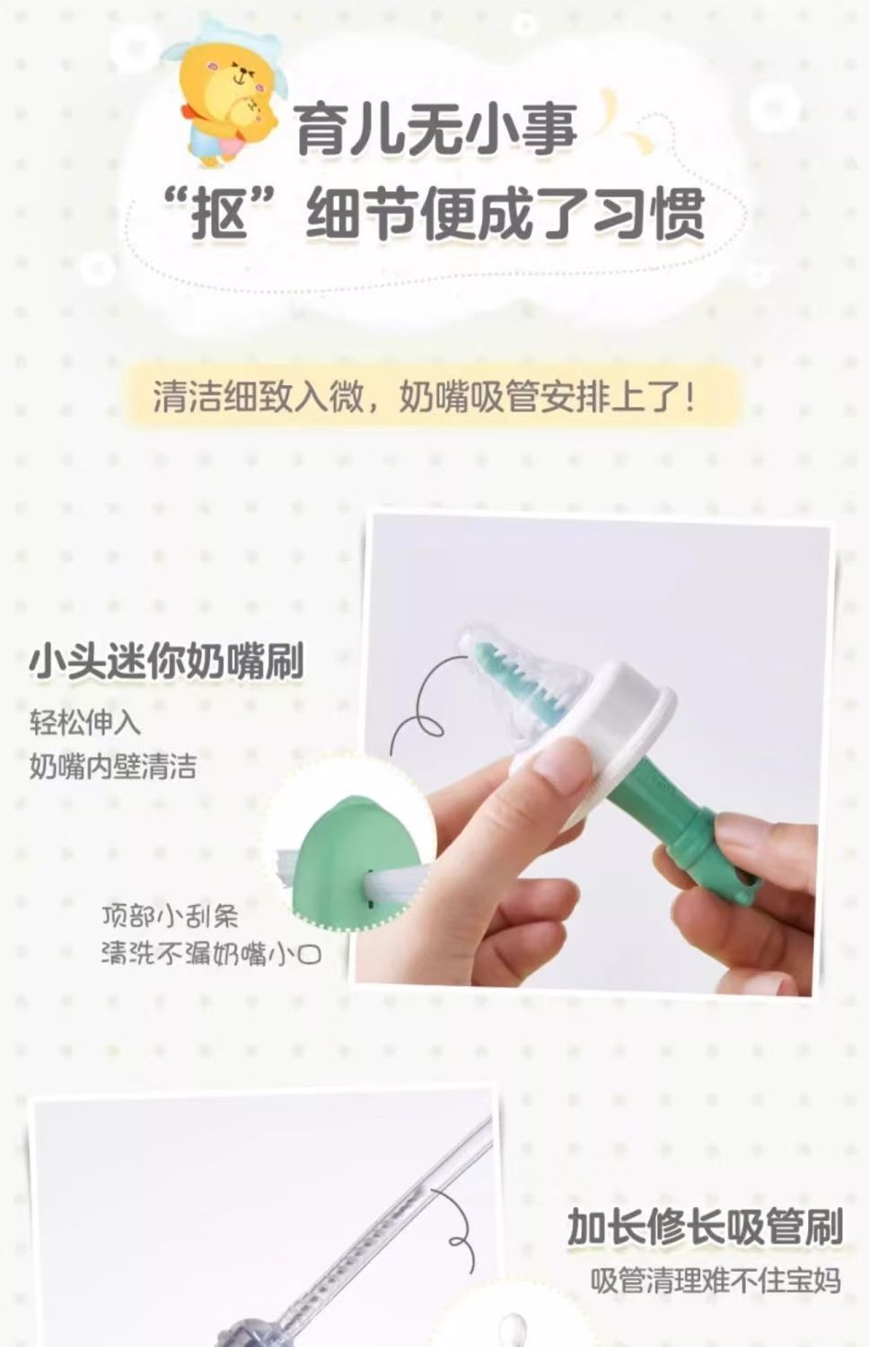 小熊奶瓶海绵宝宝清洁刷长柄婴儿专用奶嘴吸管刷