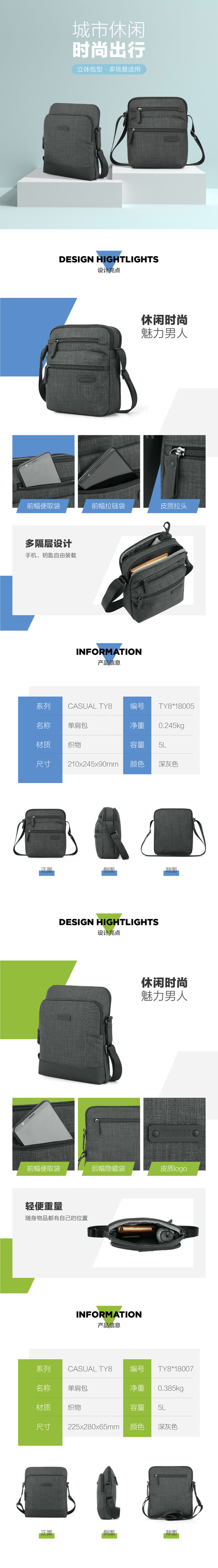 【美旅】便携 轻便 时尚设计 多口袋 易收纳 单肩 男士斜挎包 TY8 005&007