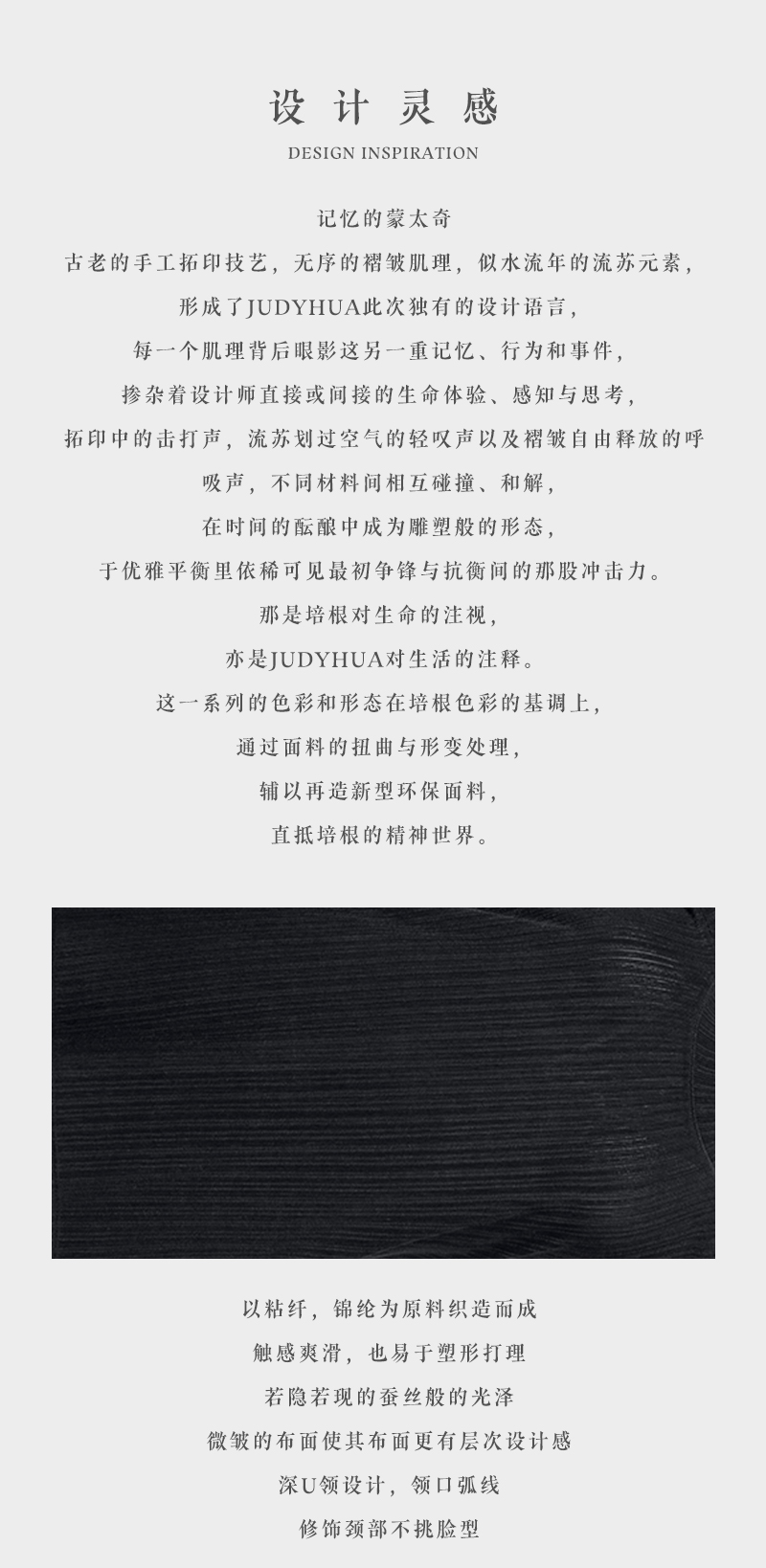 以极简建筑风格,诠释对生活美学之独特理解,JUDYHUA以作品触动您心。更多新款上架,请亲临JUDYHUA STUDIO试穿选购。预约电话:021-62663449,18201881913