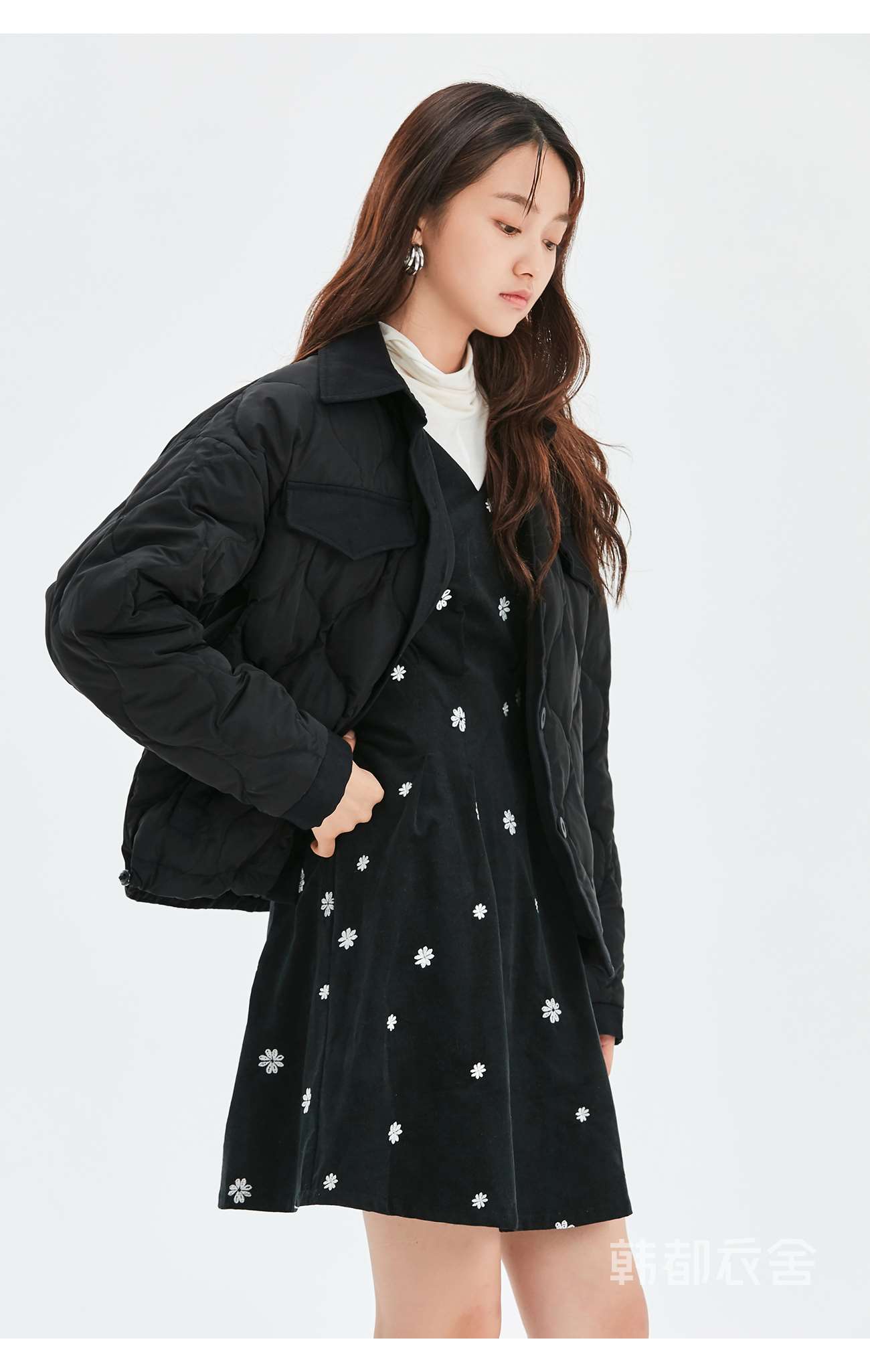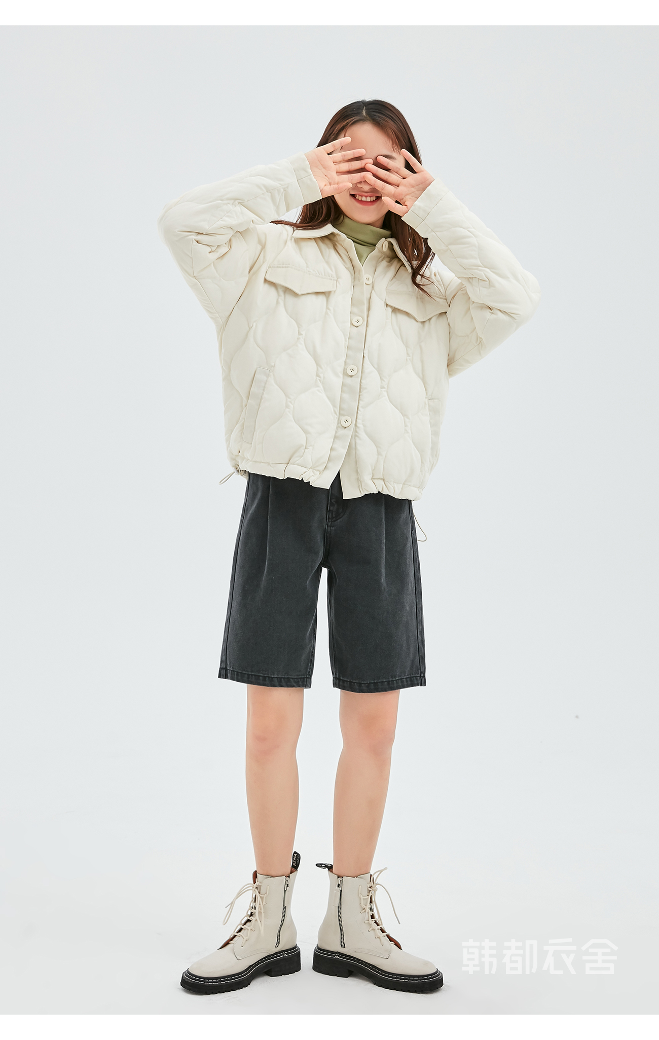 韩都衣舍冬季新款韩版衬衫式格纹宽松短款羽绒服OM81792