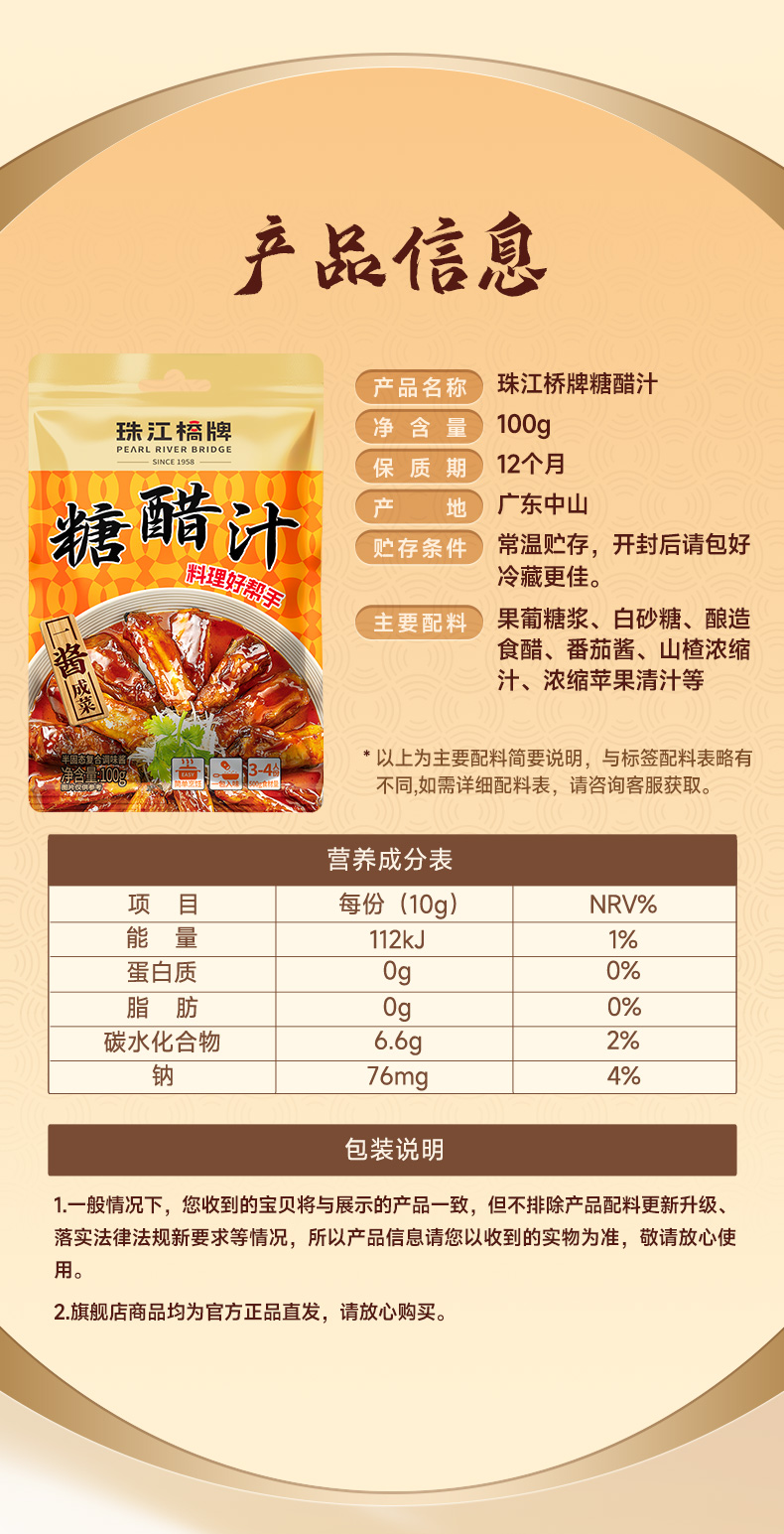 珠江桥牌 糖醋汁250g 1瓶/2瓶