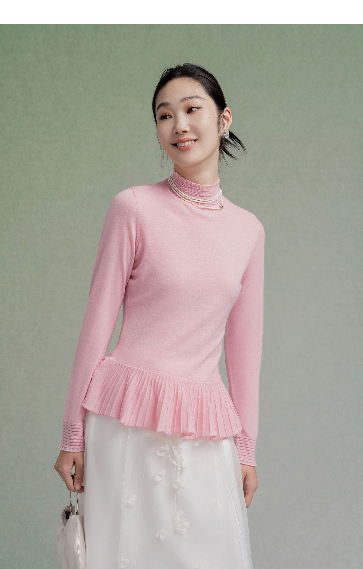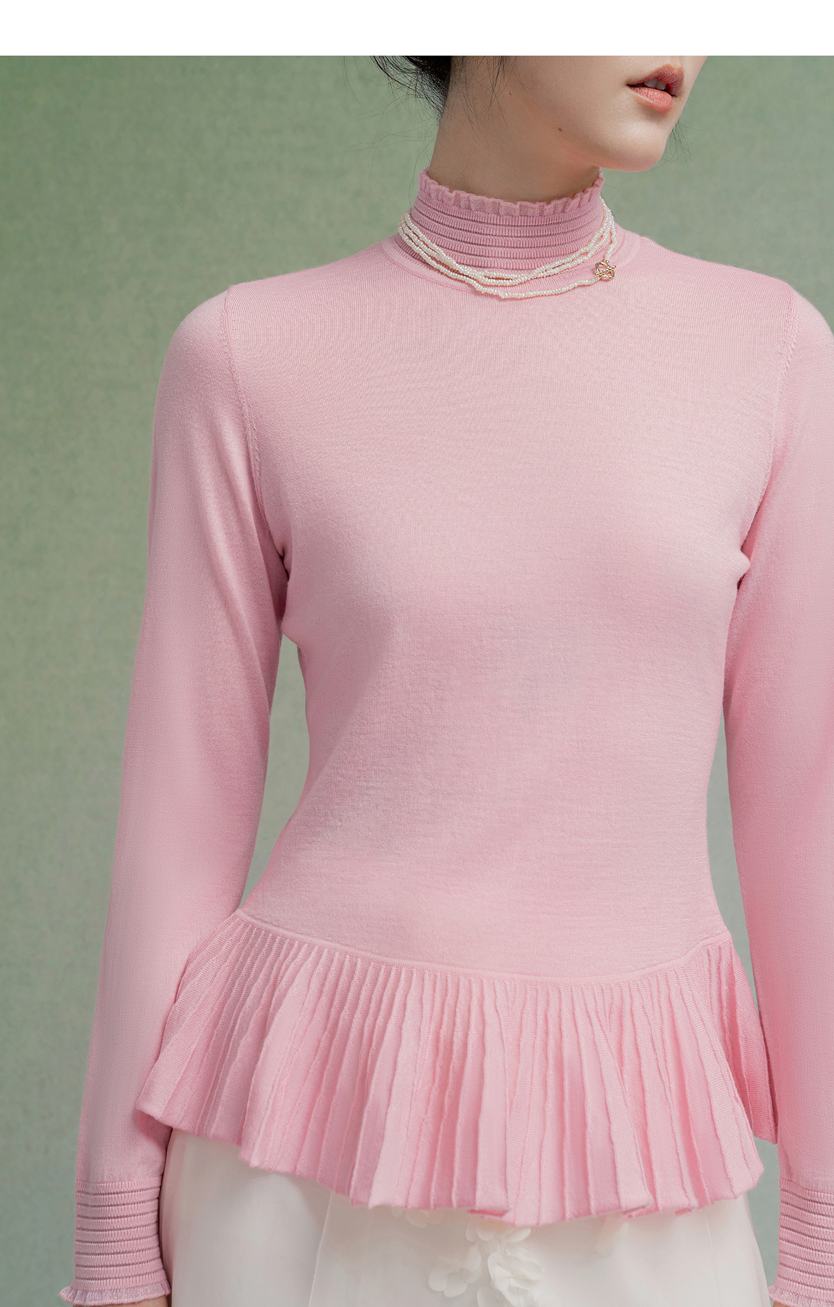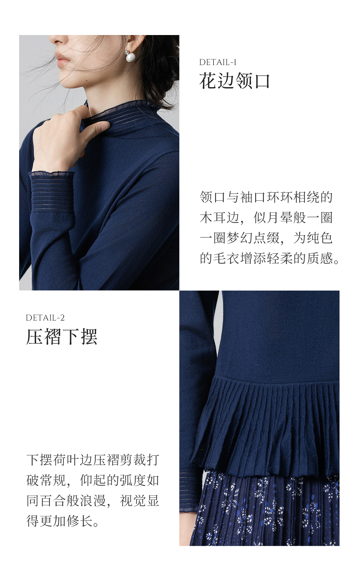 【林栖设计小店】(现货)多色美丽诺绵羊毛织上衣复古荷叶摆打底保暖2025秋季新款毛衣女1954063