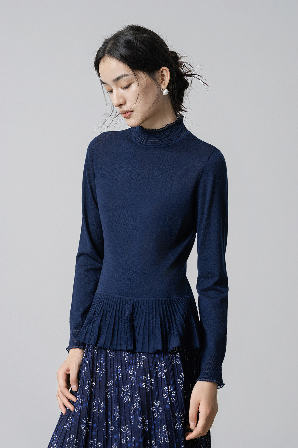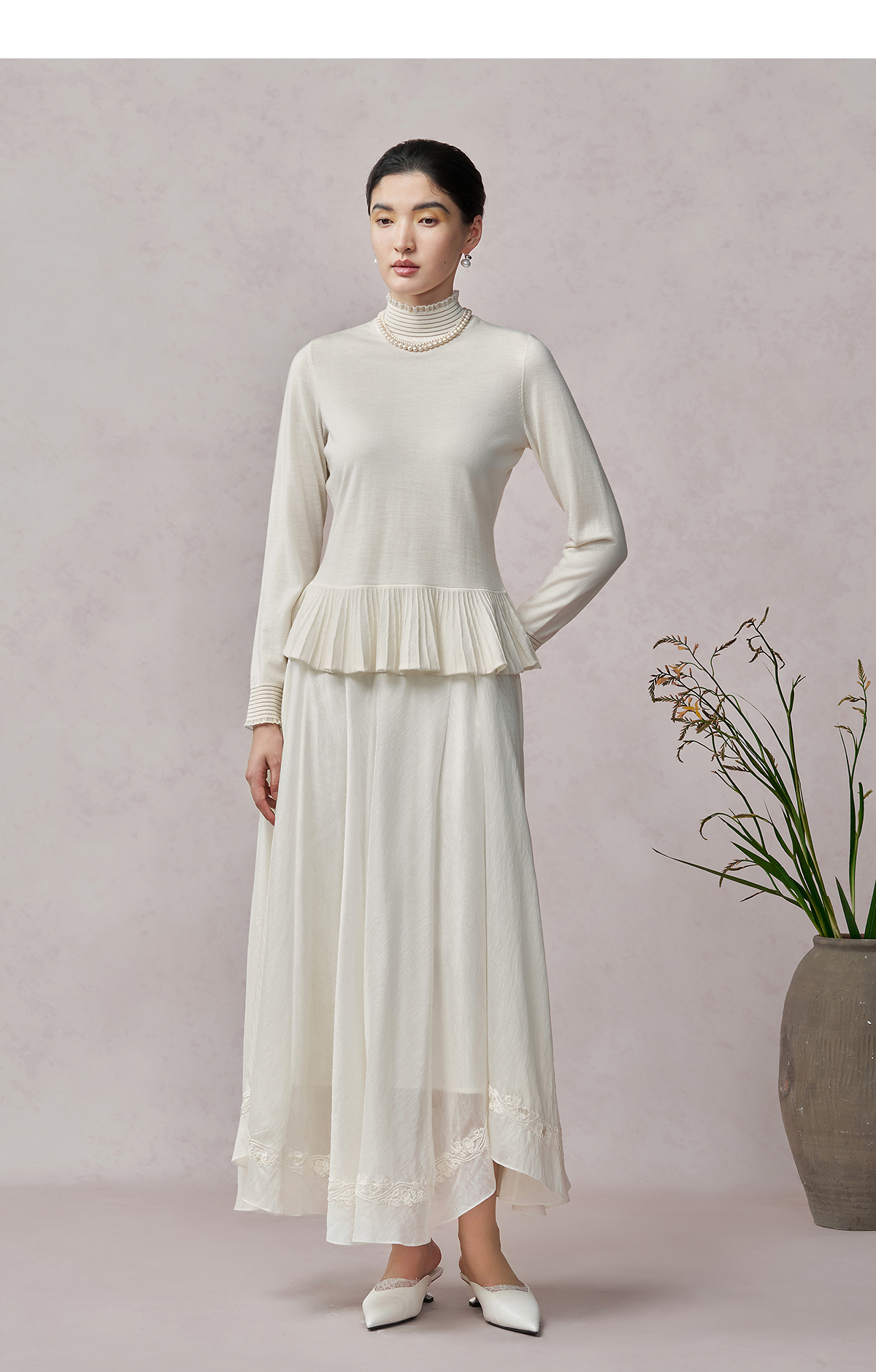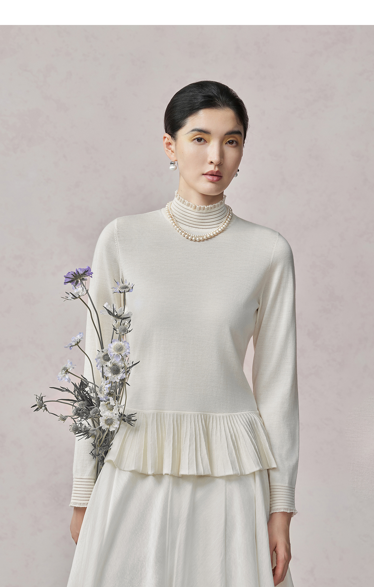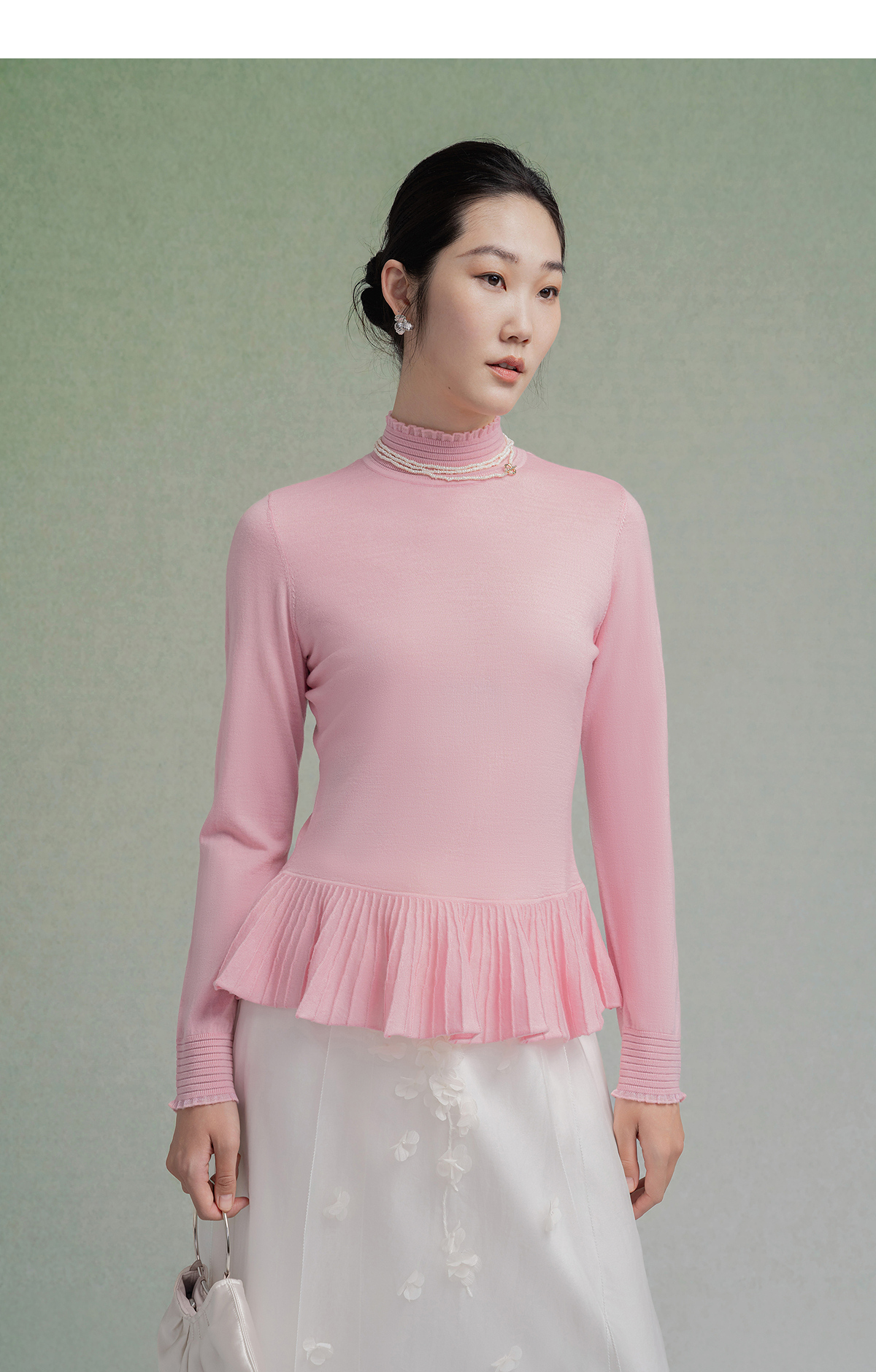 【林栖设计小店】(现货)多色美丽诺绵羊毛织上衣复古荷叶摆打底保暖2025秋季新款毛衣女1954063