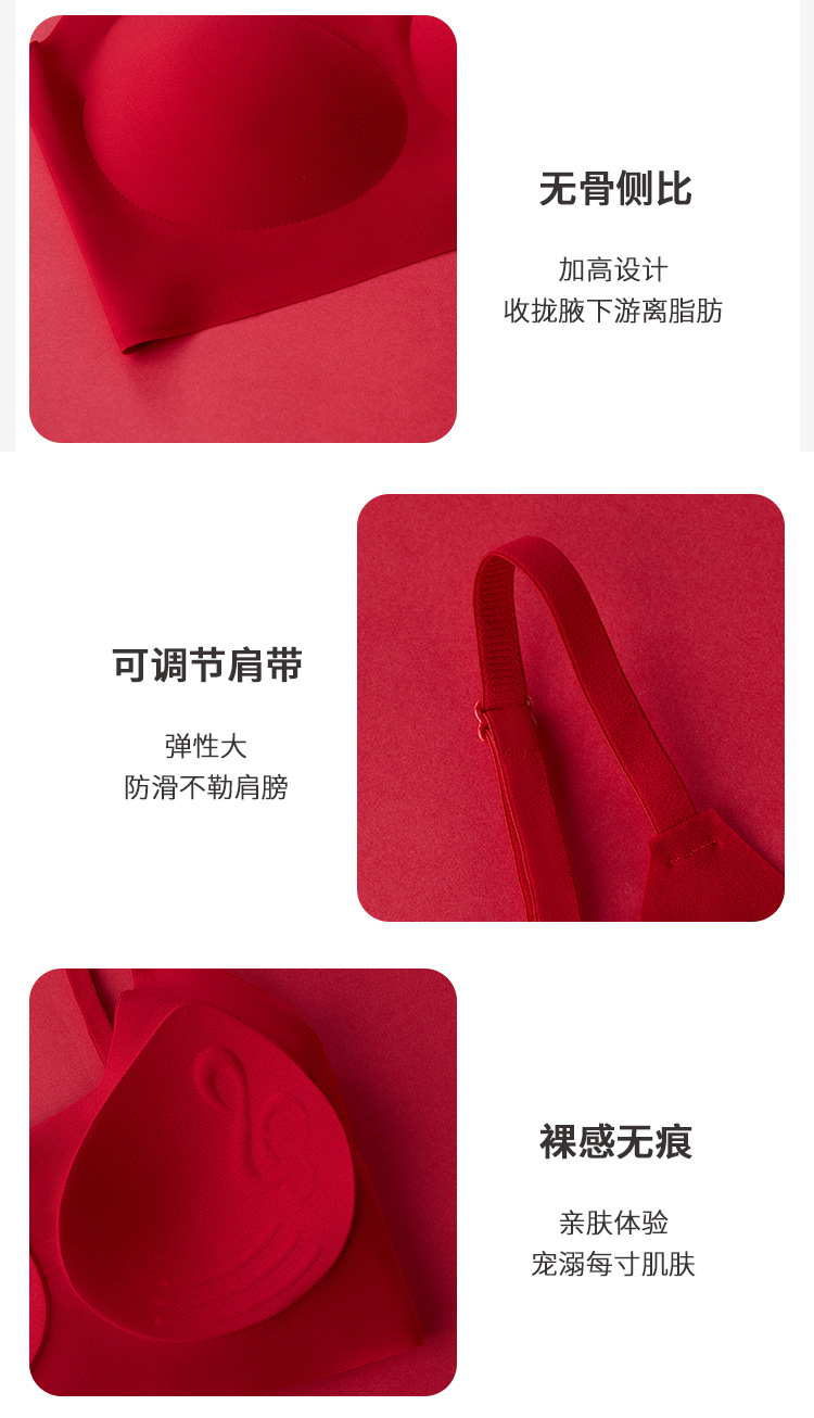 【穿红变红!红运一整年】本命年新年结婚无痕内衣大红套装固定杯无钢圈舒适文胸内裤礼盒装。ry