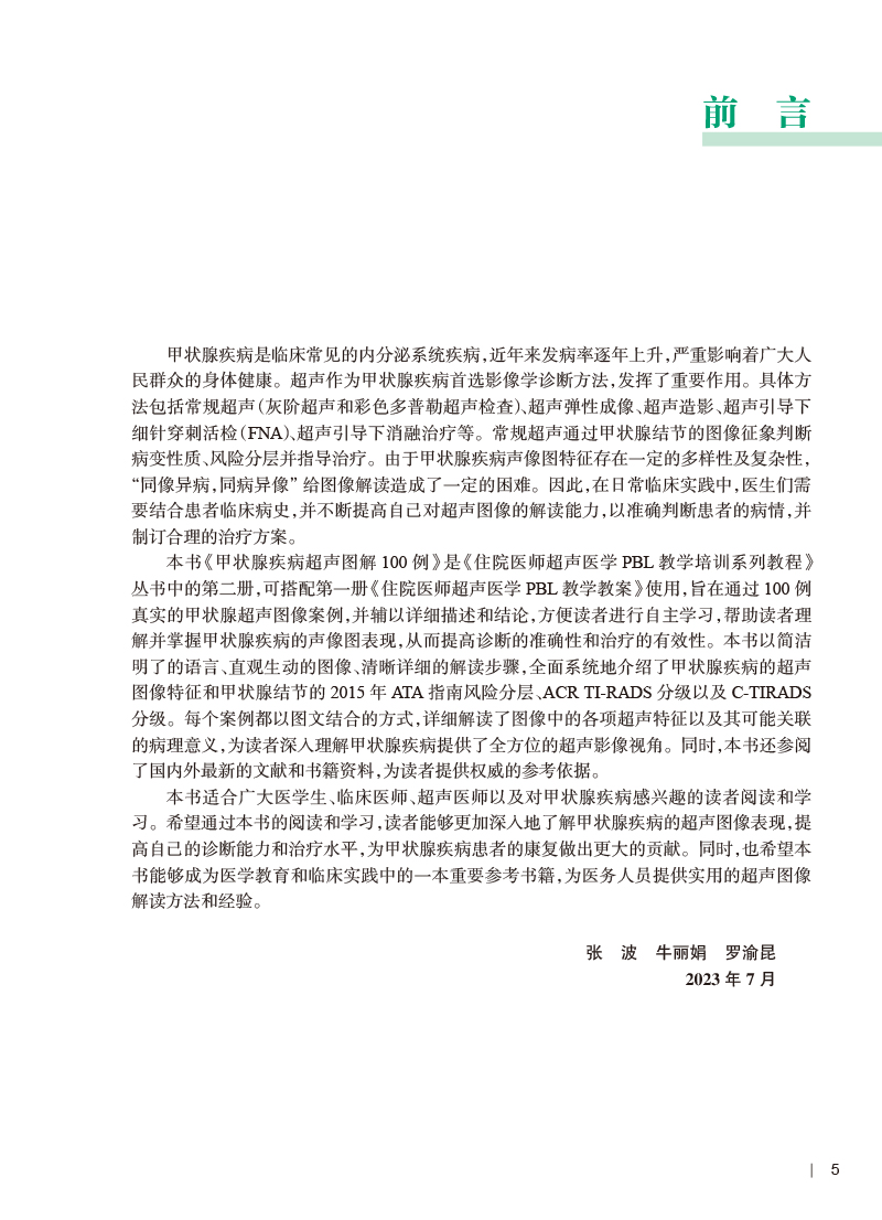 甲状腺疾病超声图解100例 张波 牛丽娟 罗渝昆 住院医师超声医学PBL教学培训系列教程 典型疾病经典超声图谱诊断 人民卫生出版社