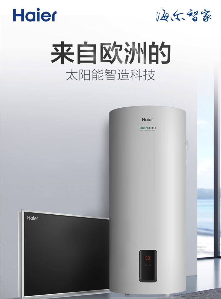 海尔太阳能热水器阳台壁挂太阳能更换室内水箱光电两用 80升竖式1套阳台机 联系客服备注出口