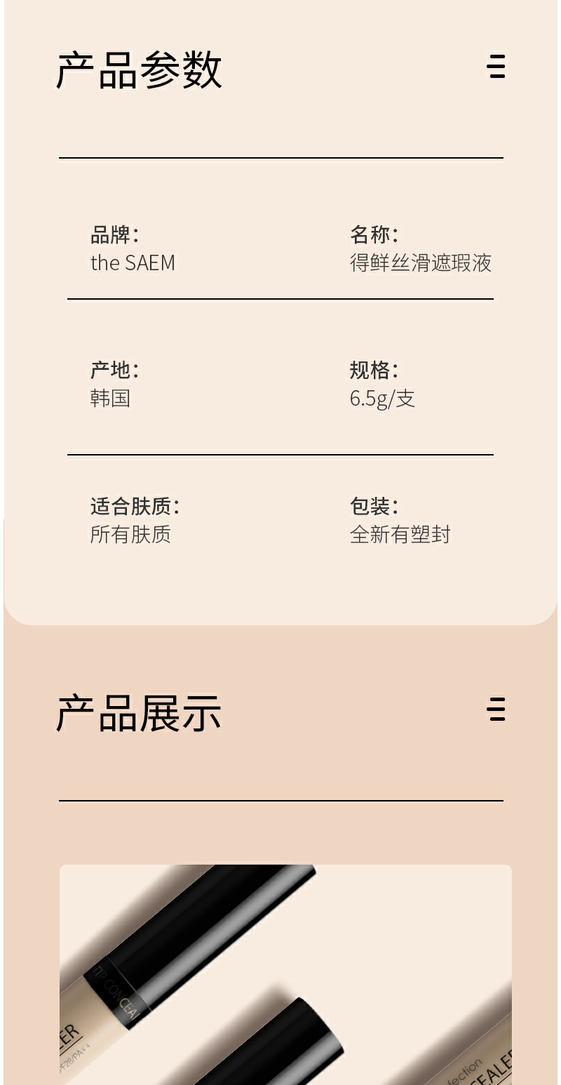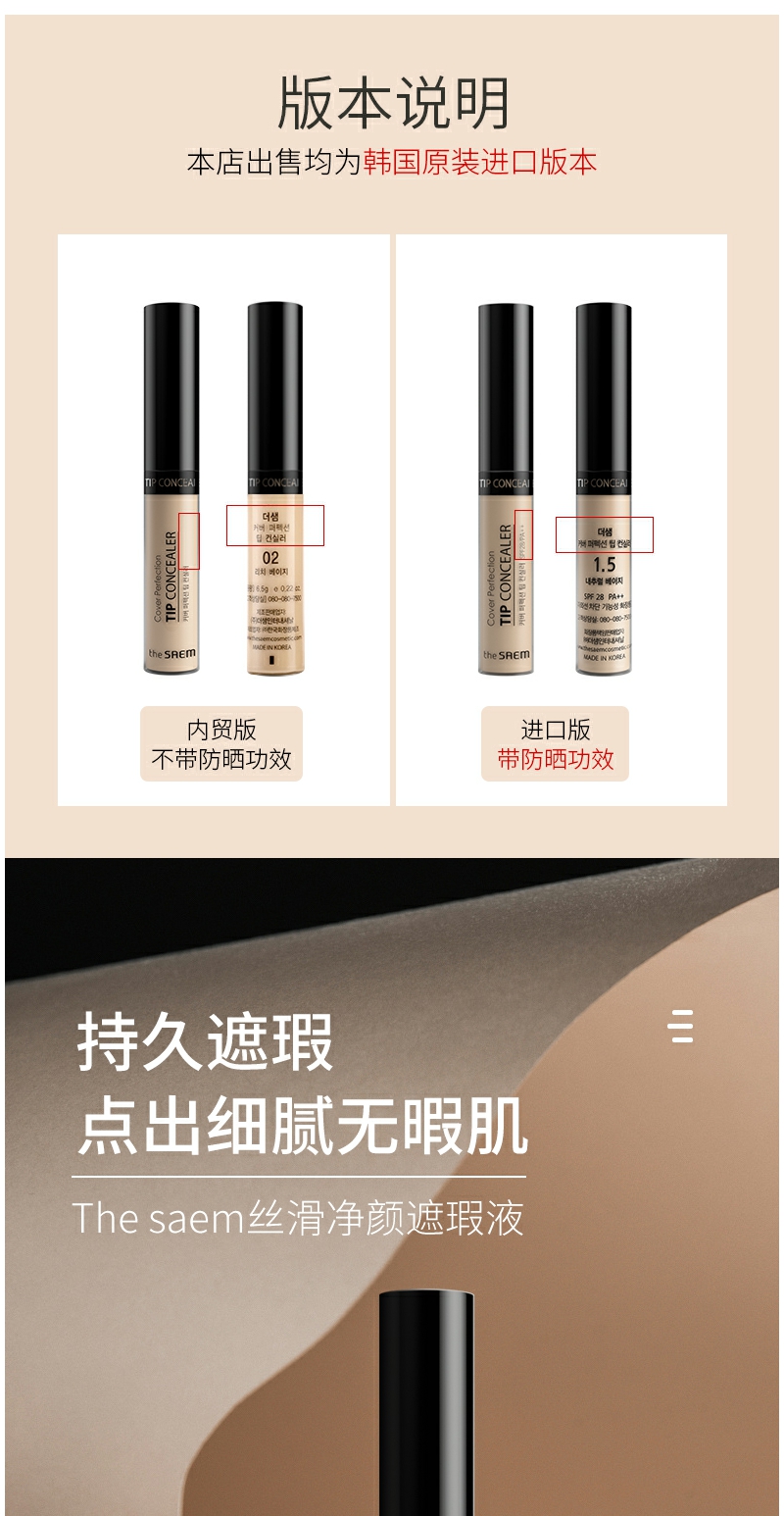 【YZ】the saem得鲜遮瑕液笔膏水润持久遮盖眼圈脸部雀斑斑点