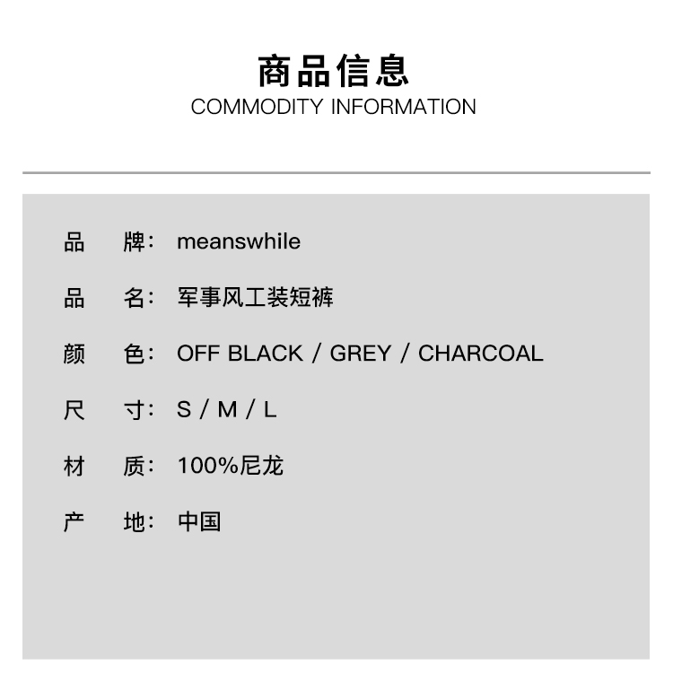 meanswhile Nylon Luggage Cargo 防水防紫外线军事风工装短裤