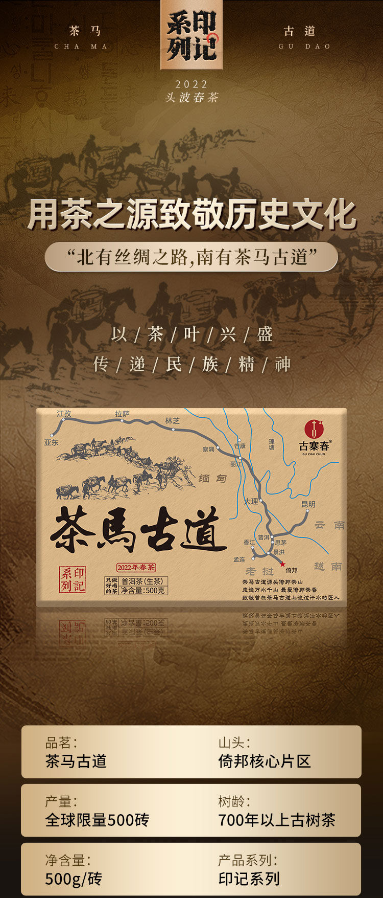 10月7日晚20点【积分兑换价:150元+100积分】【积分兑换】【茶马古道】普洱茶生茶云南易武倚邦核心产区,茶人心中的君子茶,500克/砖