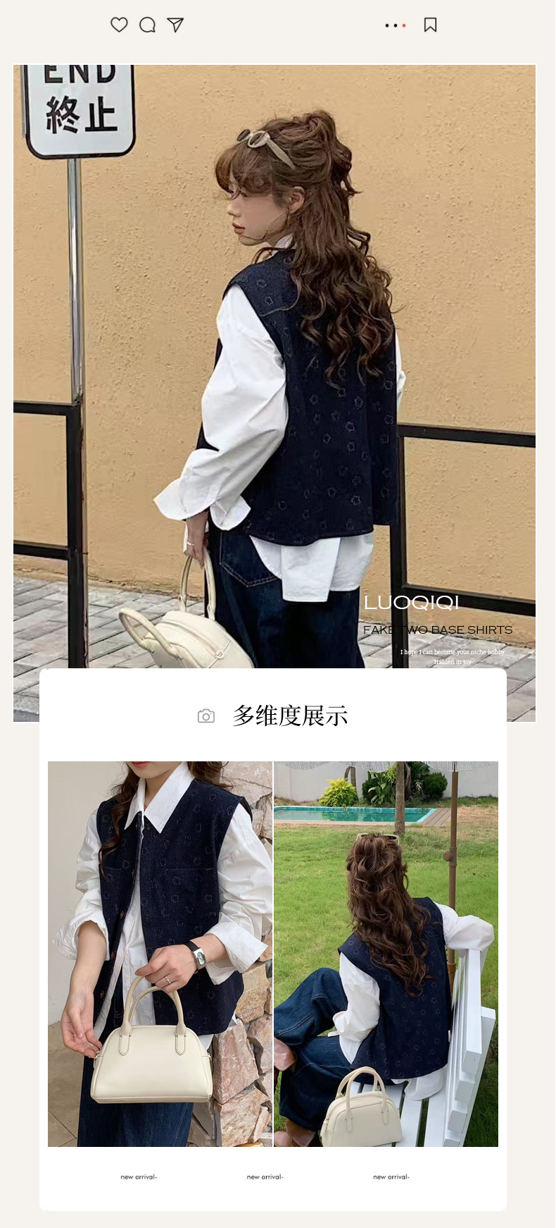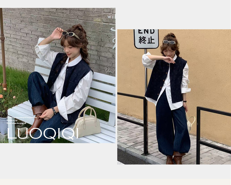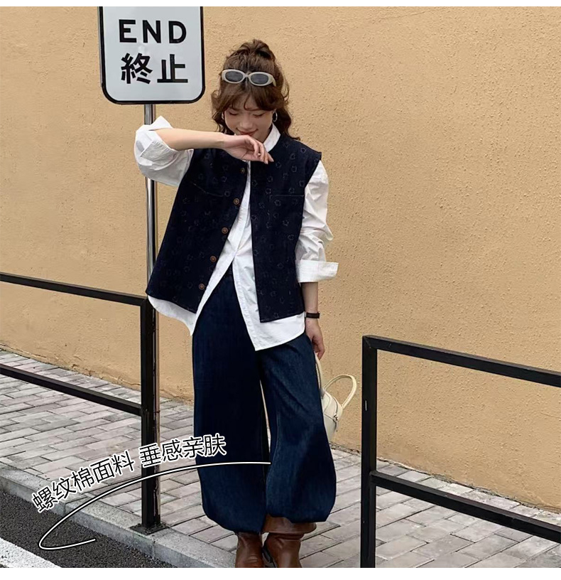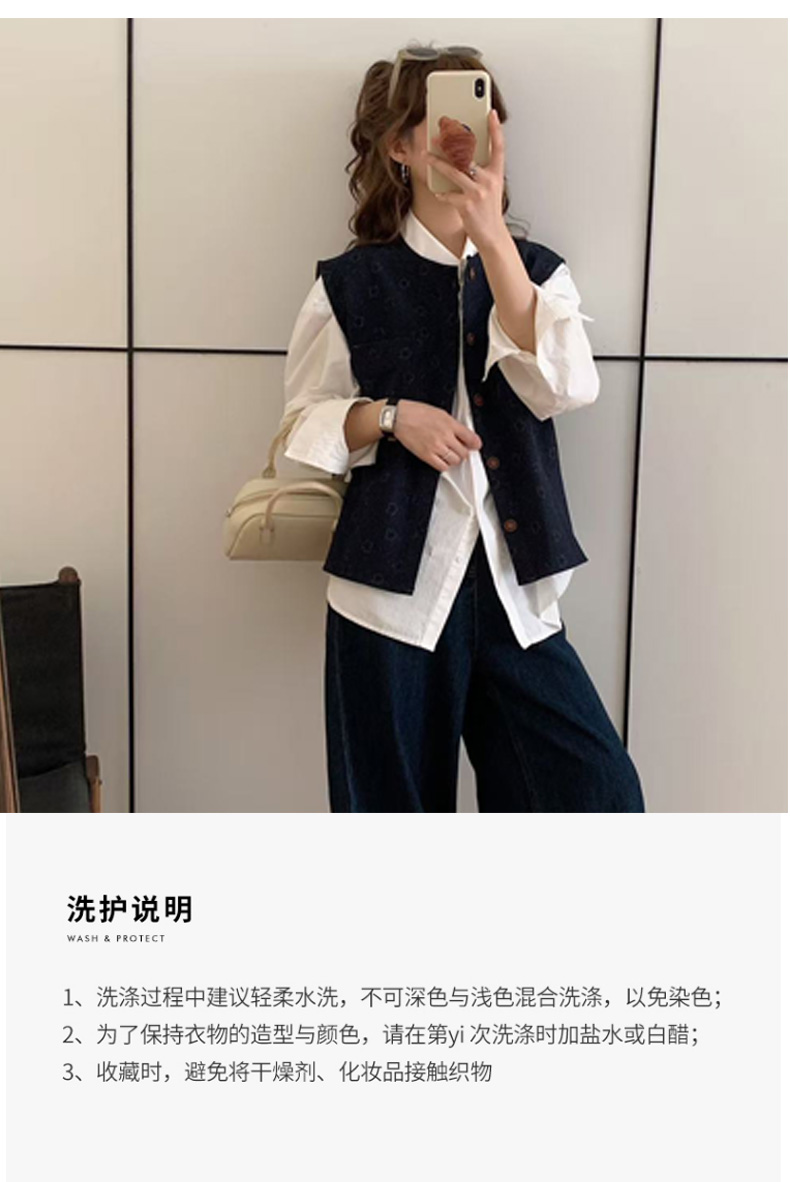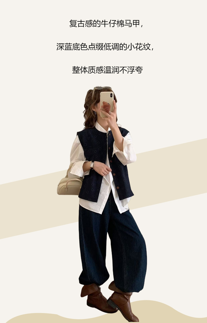 LUOQIQI牛仔花牛仔马甲 木质色纽扣+双口袋 细节感满满 小花纹低调又精致 复古耐看不过时