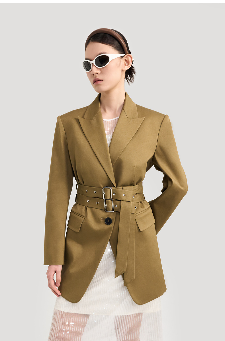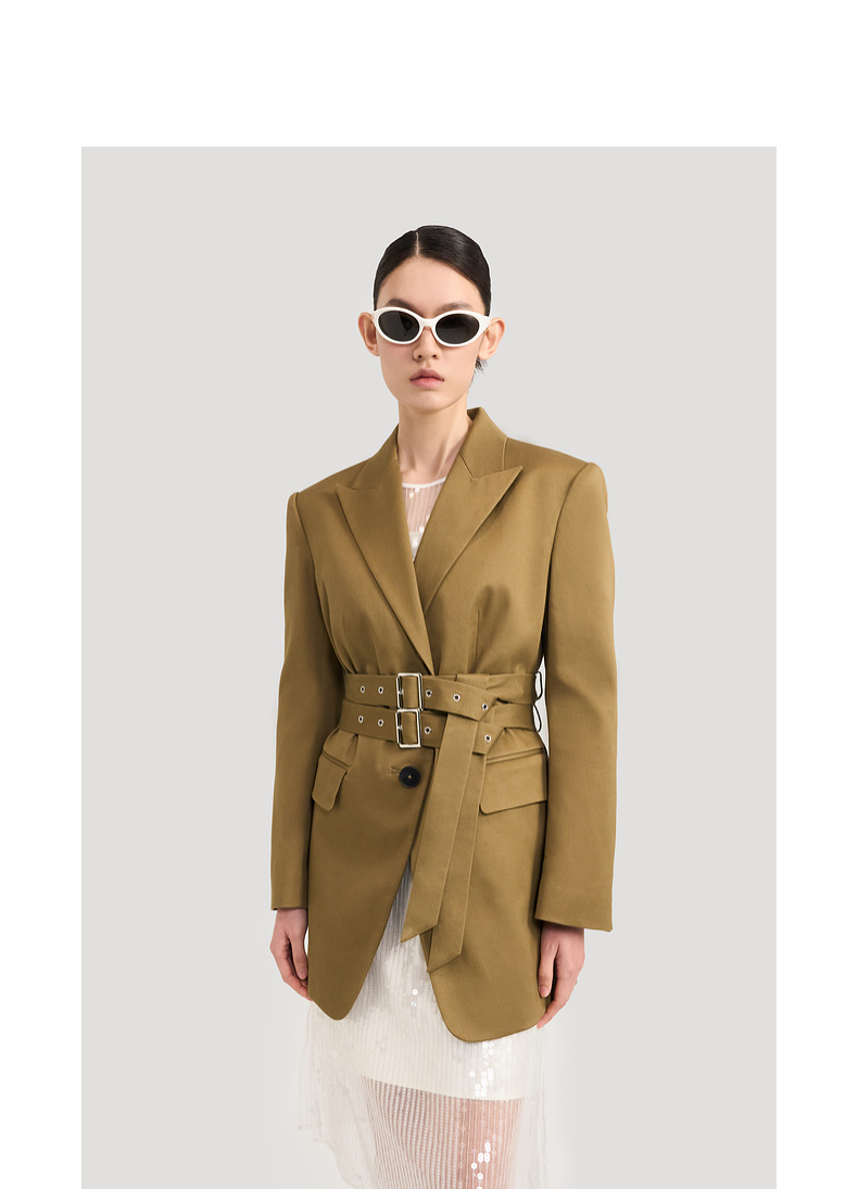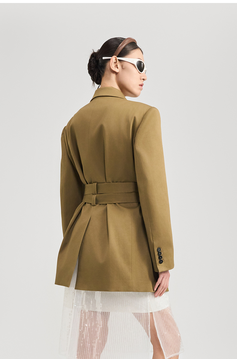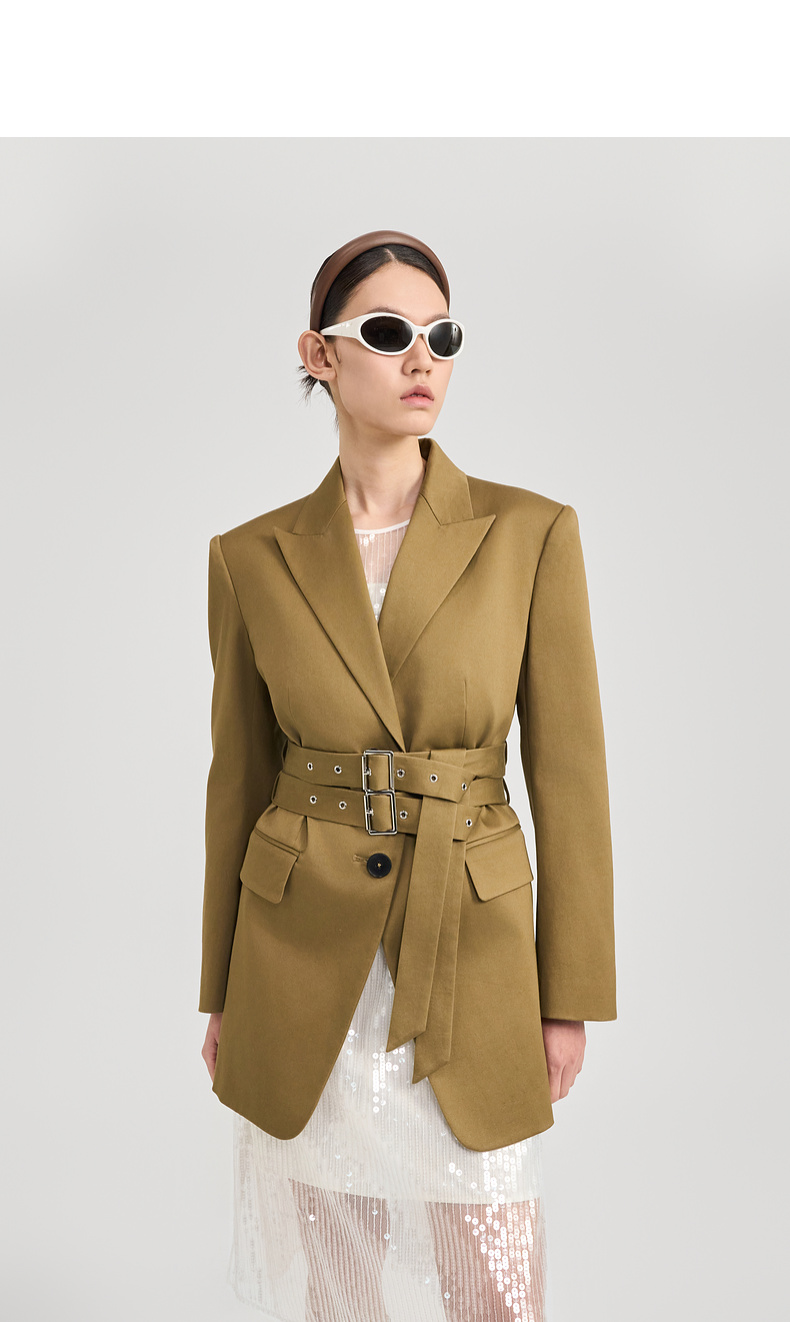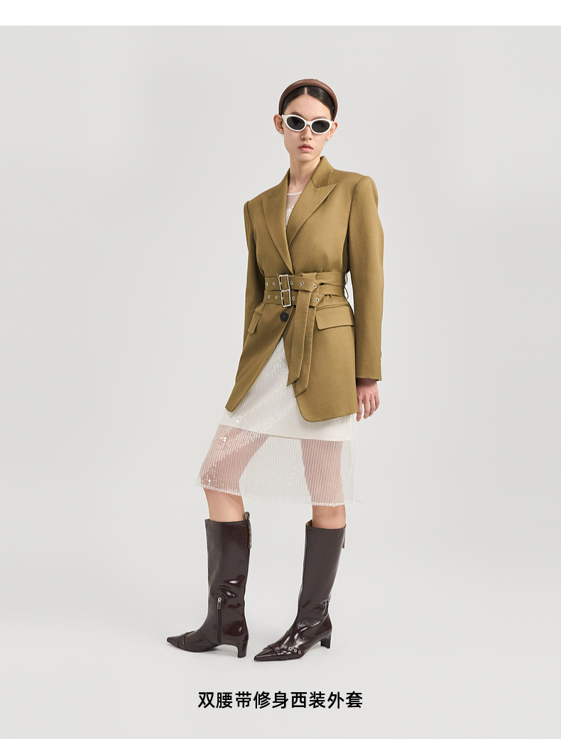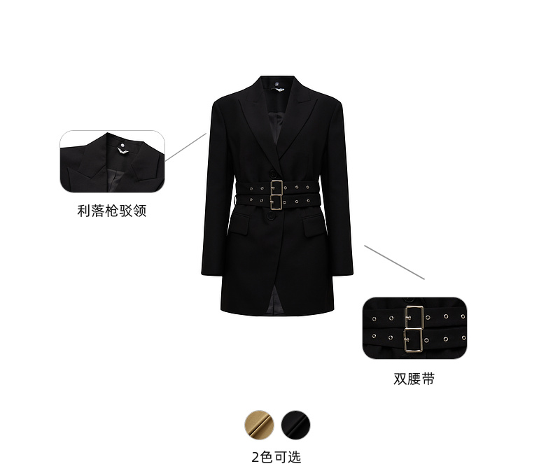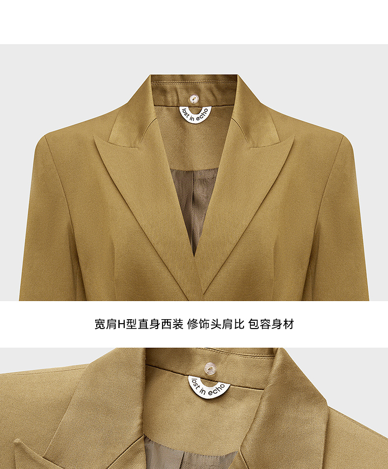 lost in echo2024秋冬新品黑色高级羊毛收腰长袖西装外套上衣女