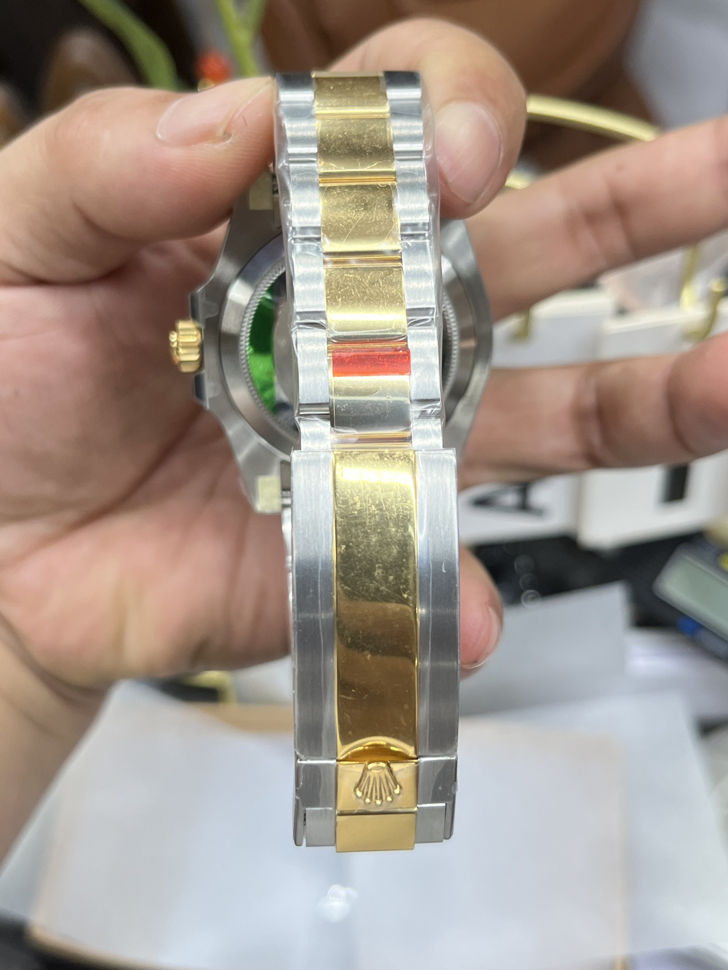 真实实拍对比,好产品会说话。The VS brand new 41mm Gold Black Water Ghost 3235 machine is equipped with the latest version of Clean factory green ring mouth (the latest!+VS self-produced luminous beads, don't worry about the luminous bead color being too yellow! )