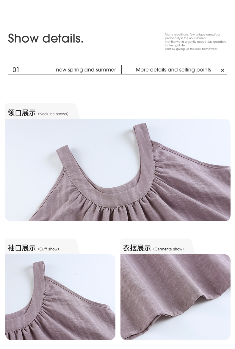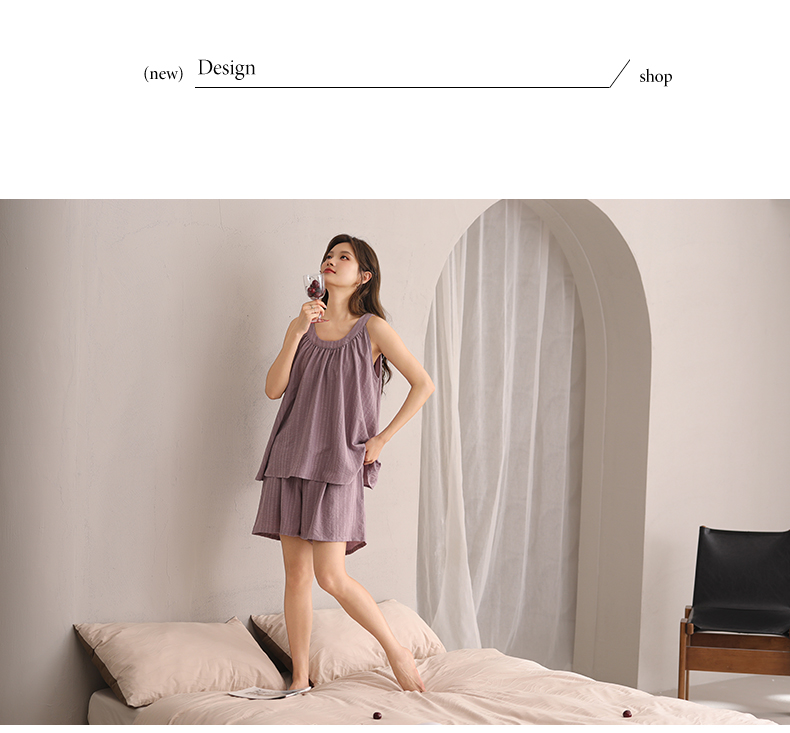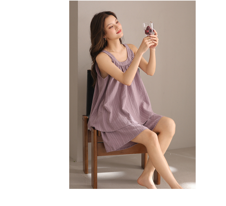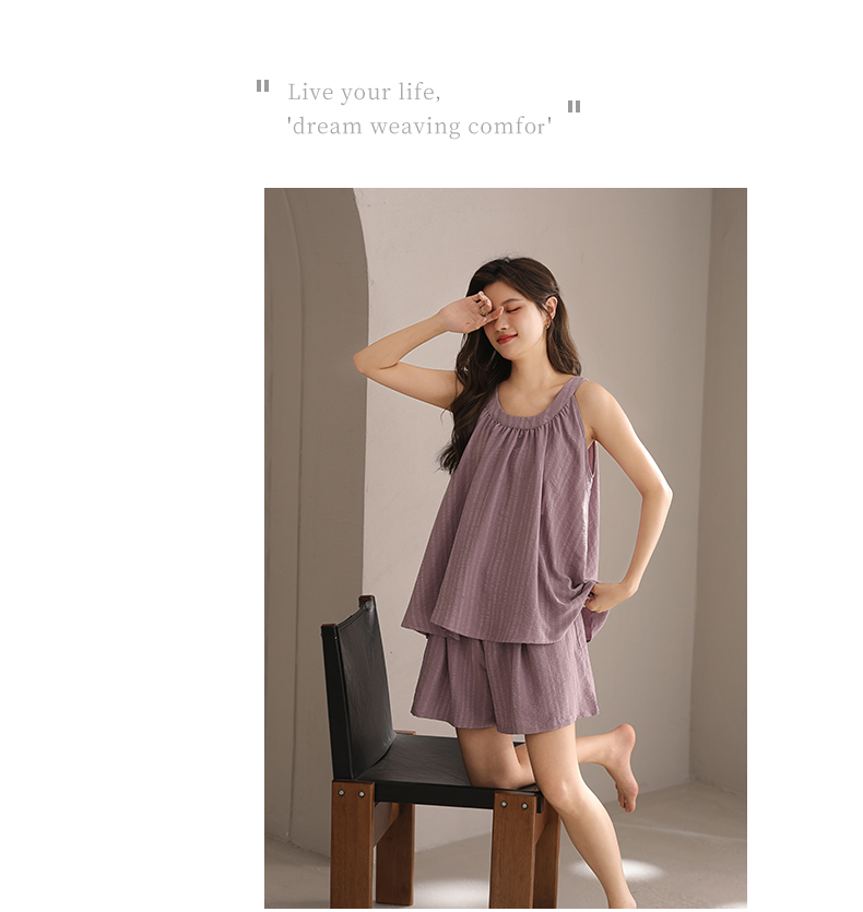 可人儿小众设计新款泡泡绵夏季女士吊带睡衣时尚可外出家居服套装