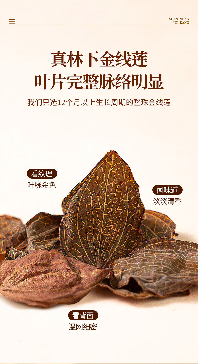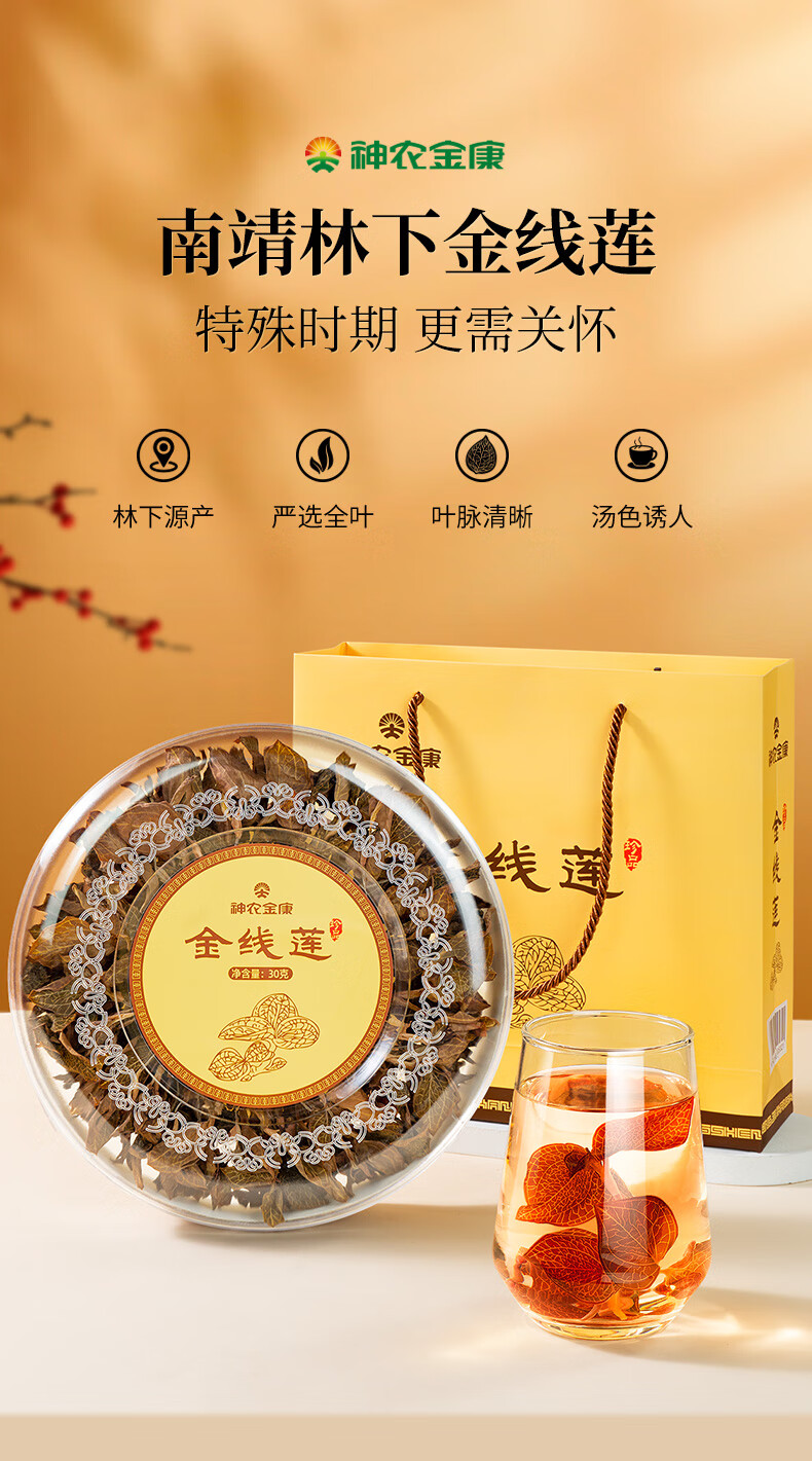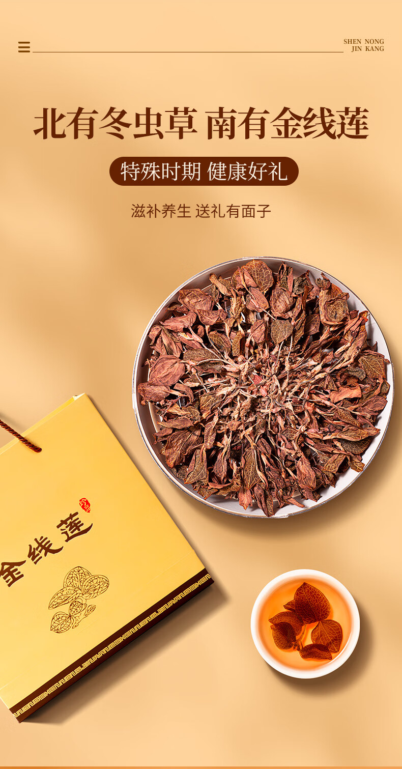 【礼盒】神农金康金线莲干品 林下整株金线莲叶大茎粗福 30克 新中式滋补礼 原生态真滋补喝护家人健康