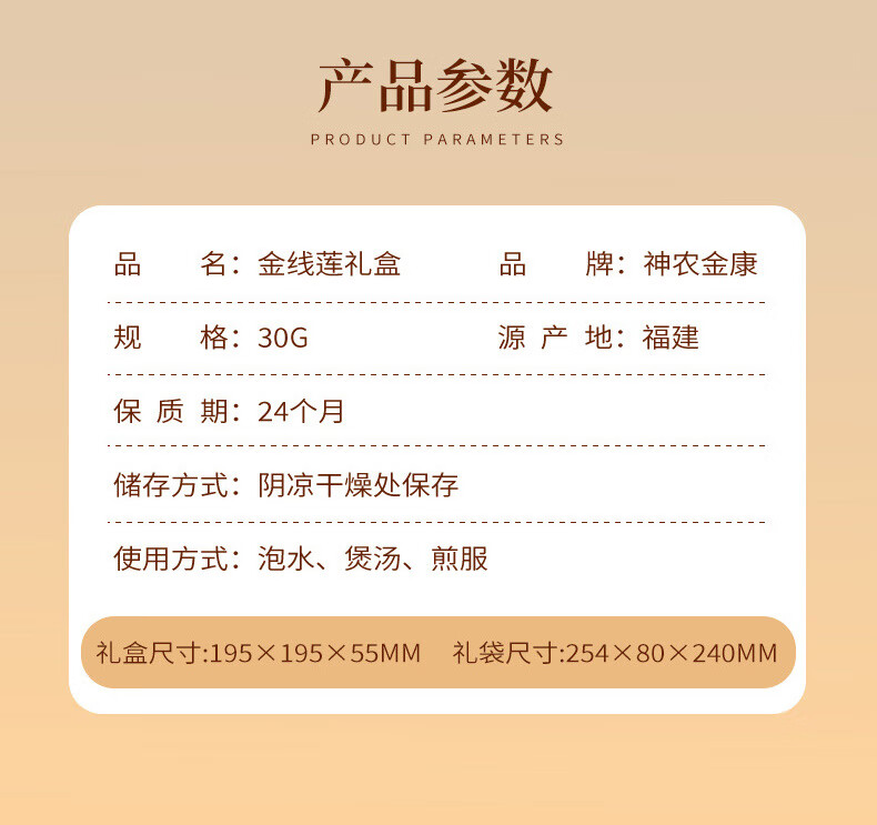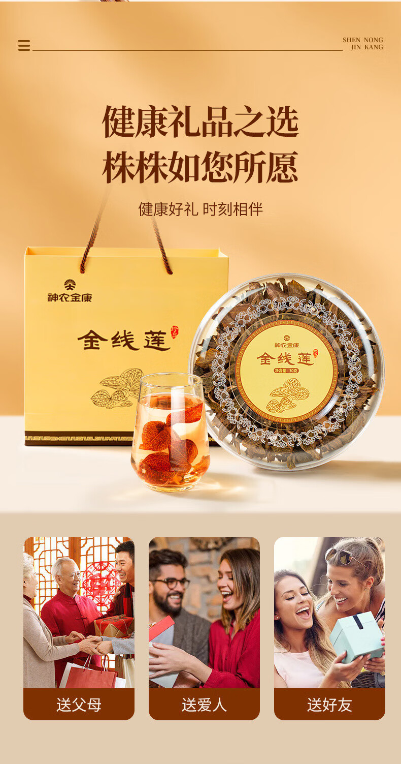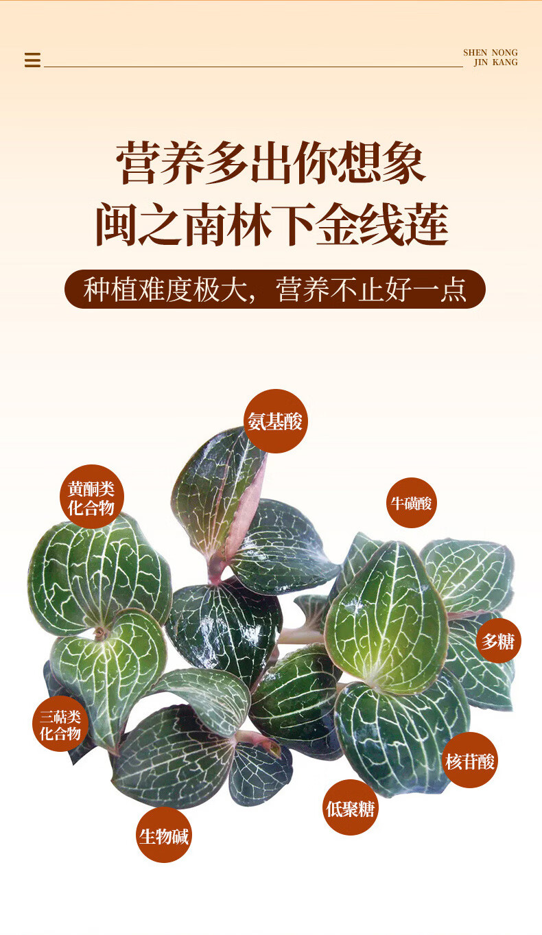 【礼盒】神农金康金线莲干品 林下整株金线莲叶大茎粗福 30克 新中式滋补礼 原生态真滋补喝护家人健康