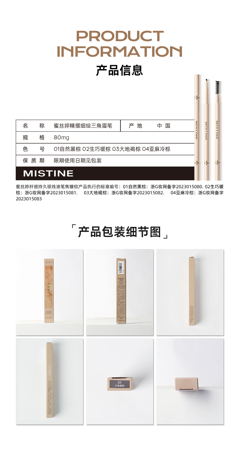 【89任选2件】(三角眉笔)MISTINE蜜丝婷双头三角眉笔眉粉自然立体棕色初学者适用官方正品rc