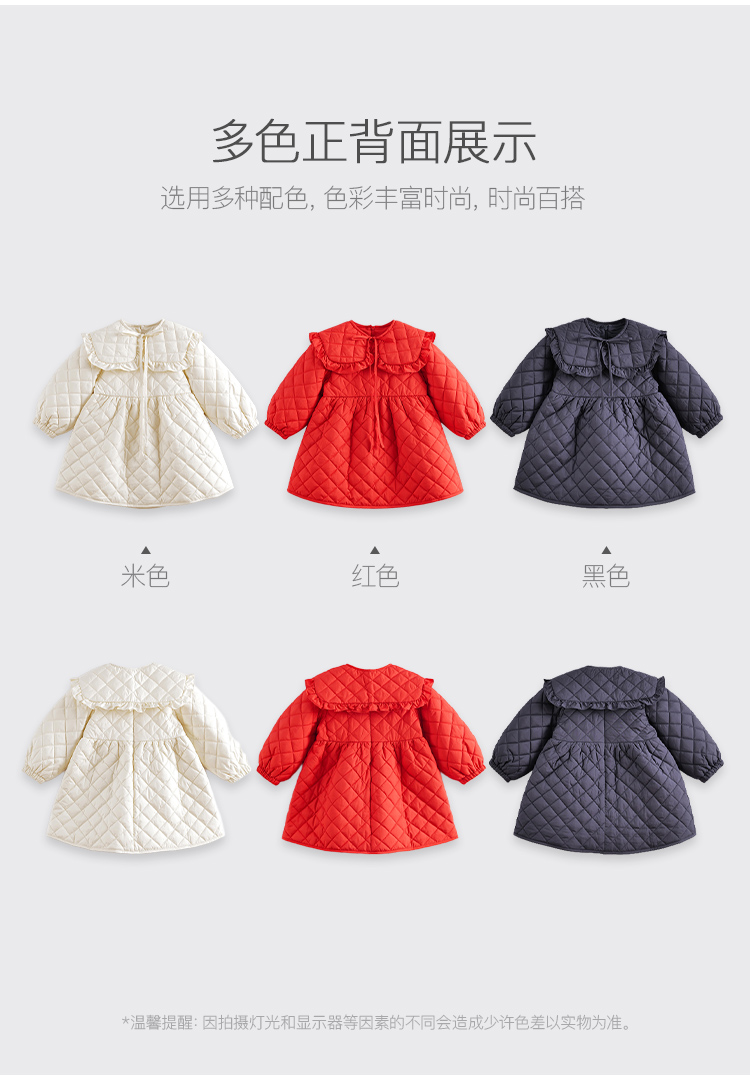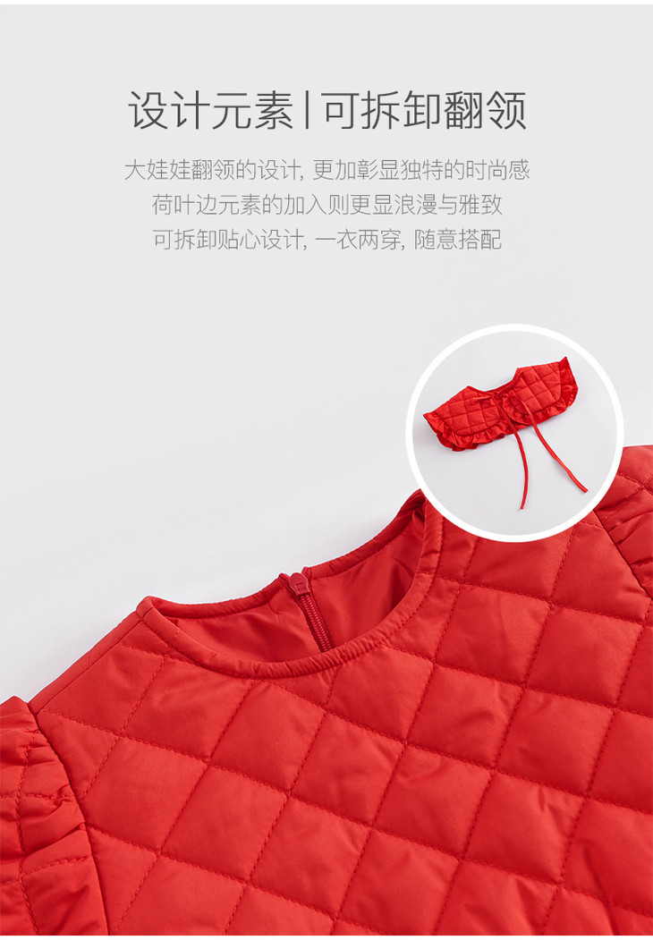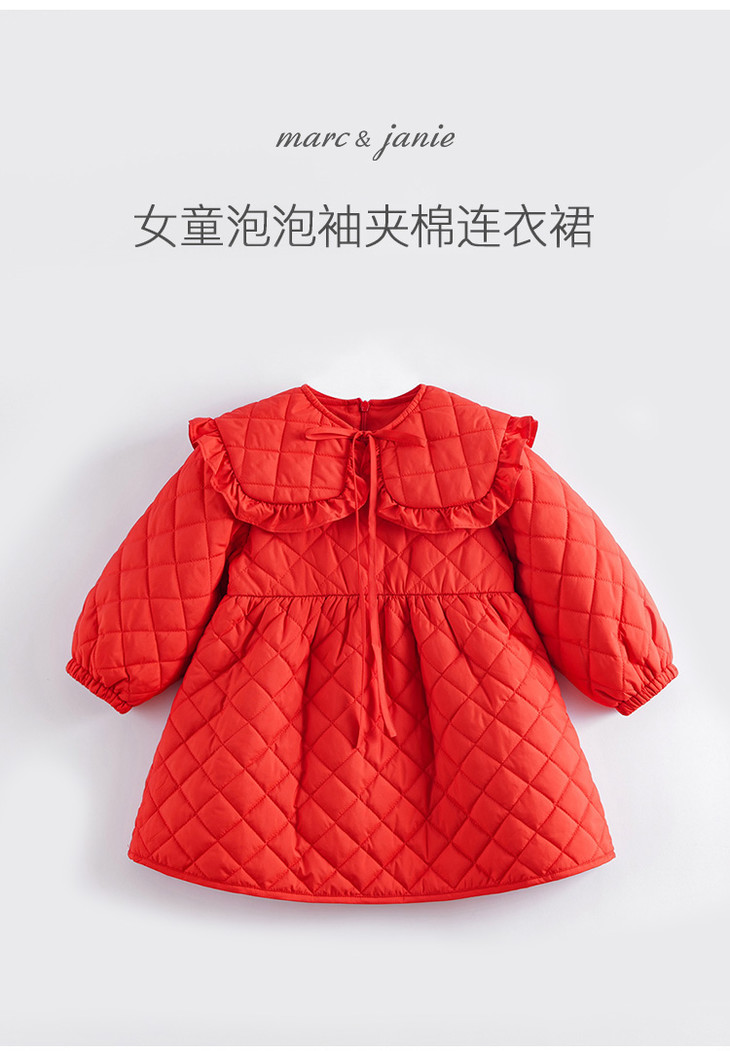 马克珍妮秋冬新款 女童泡泡袖夹棉翻领连衣裙221565