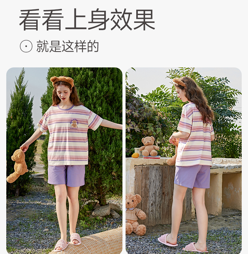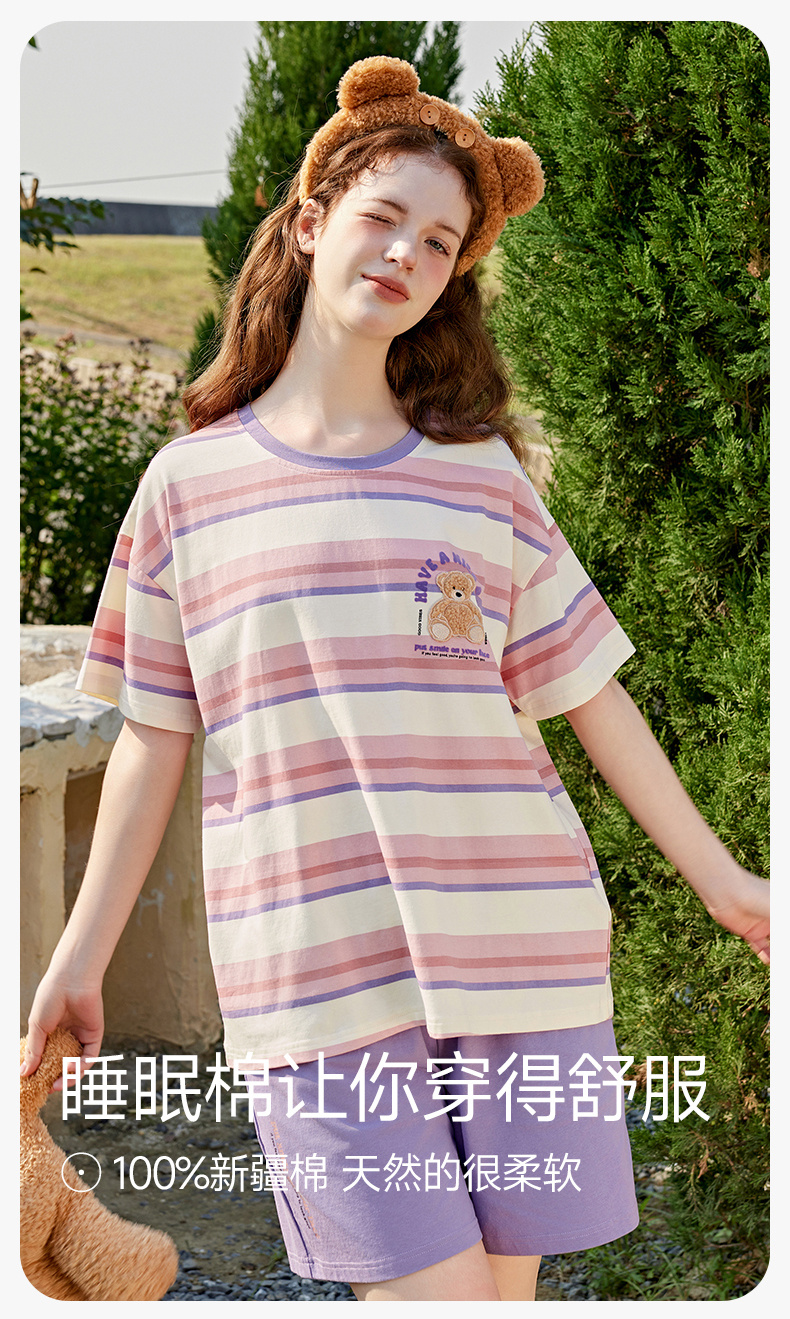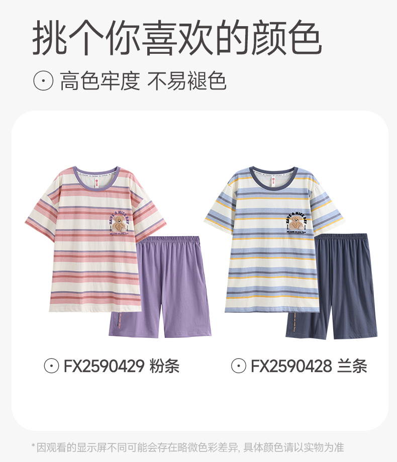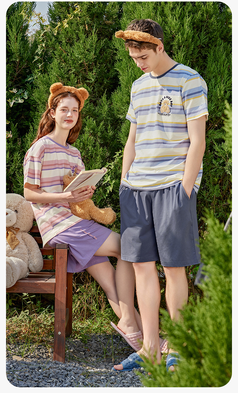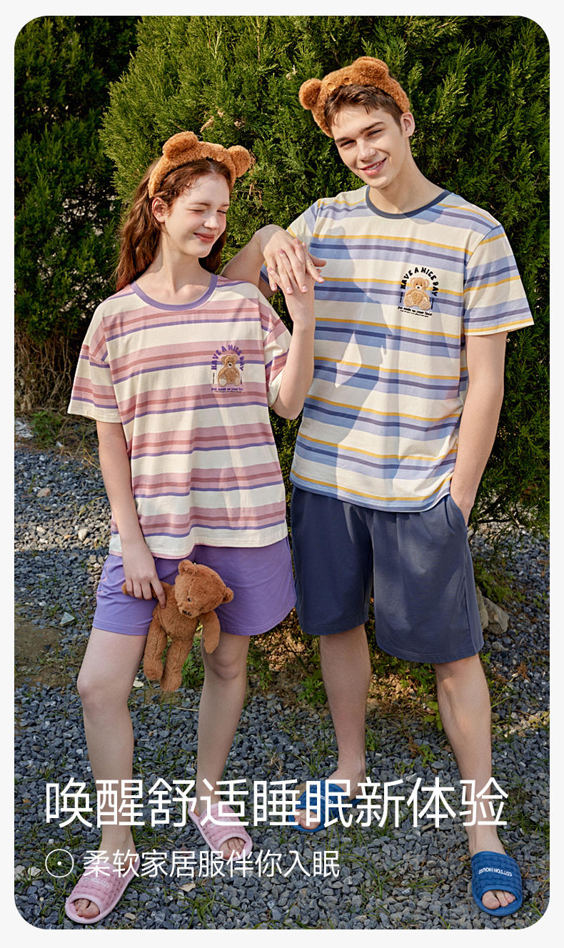 芬腾情侣睡衣女士夏季纯棉短袖圆领套装男宽松休闲大码全棉家居服