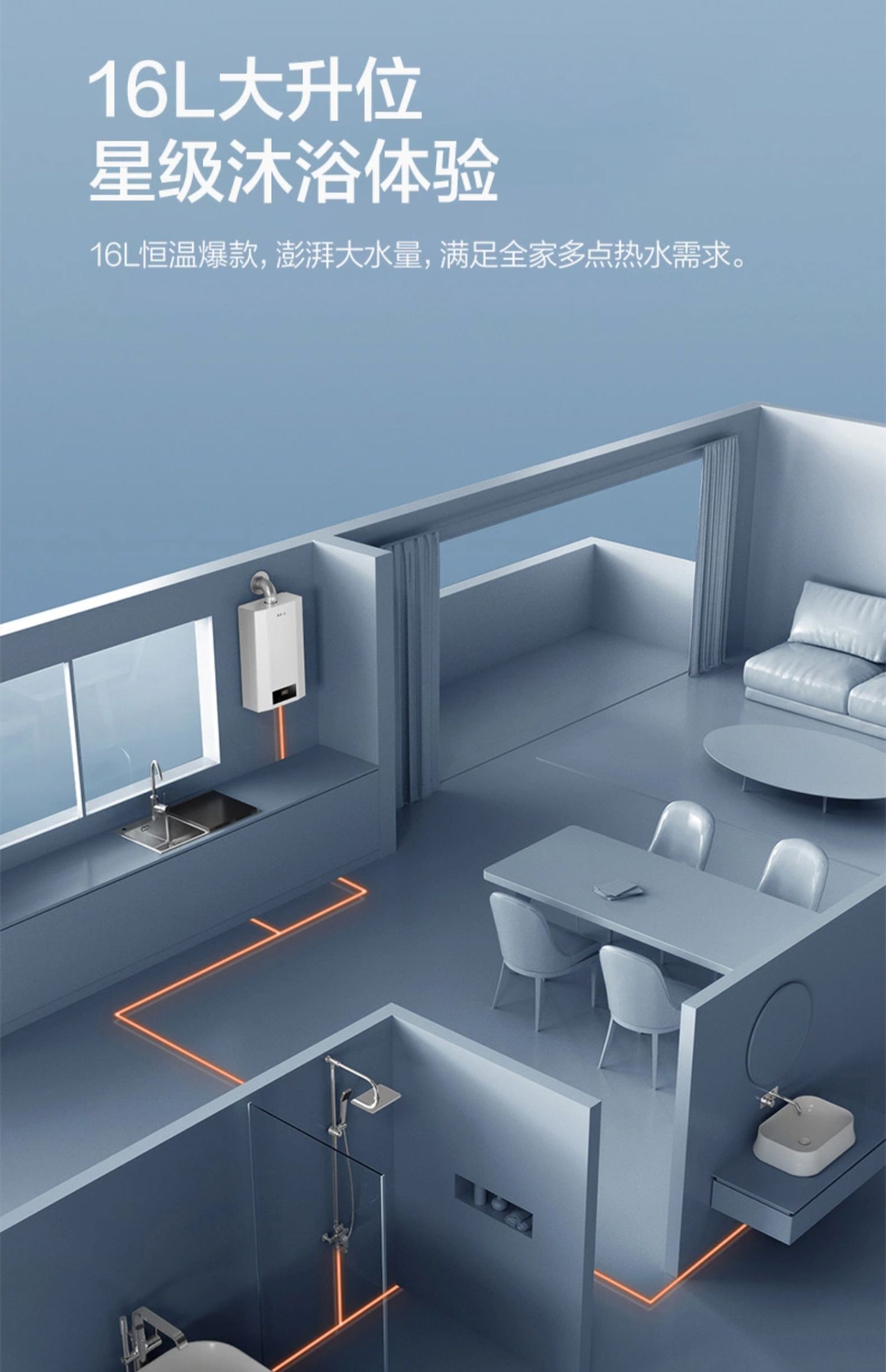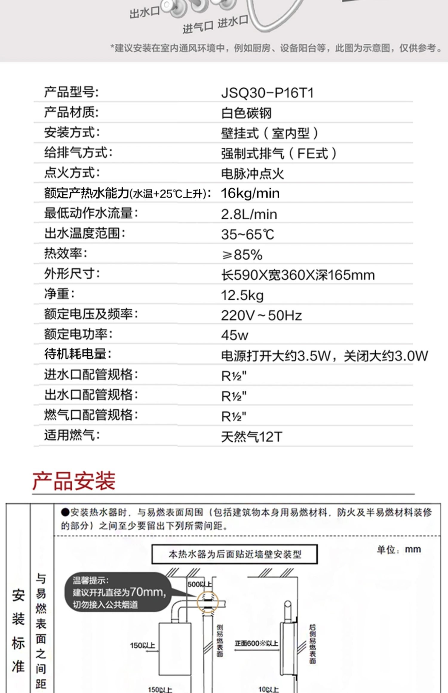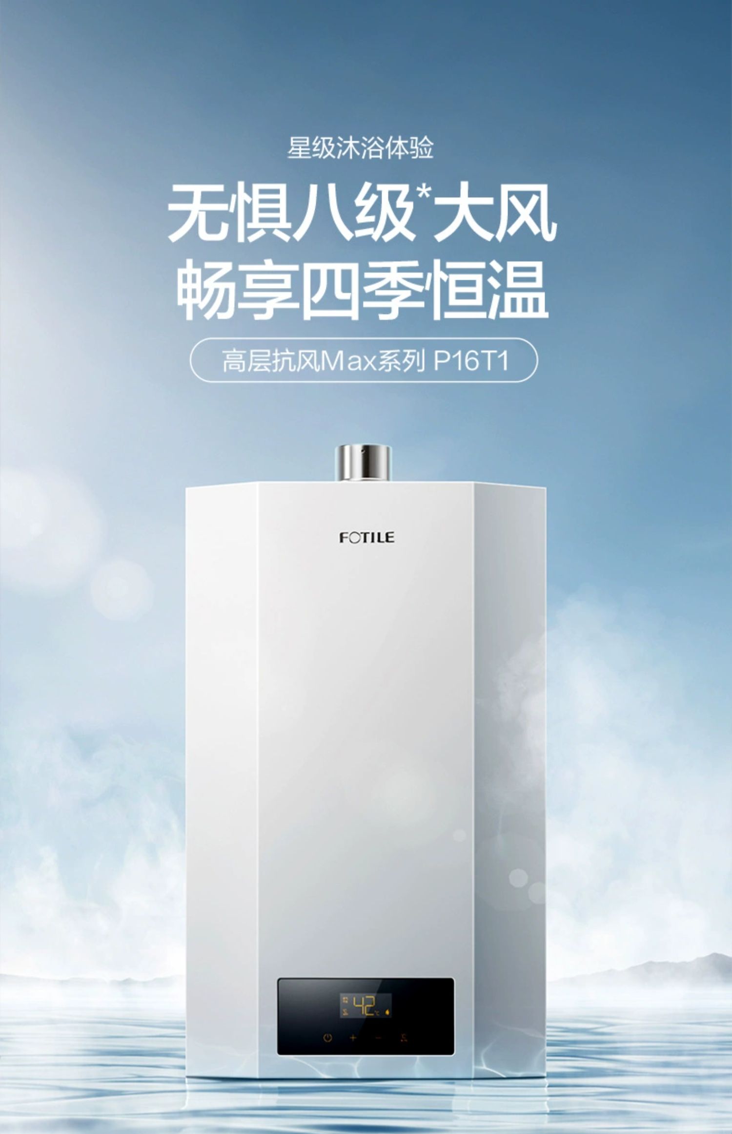 方太燃气热水器16升 抗水波动 0.5℃精准控温 家用强排式速热水器天然气高层抗风 JSQ30-P16T1官方正品