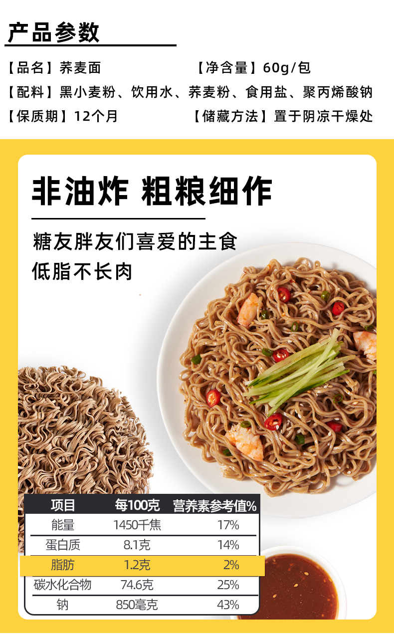 十堰 粗粮荞麦 低脂面 健康面 粗粮荞麦面60克/袋*10