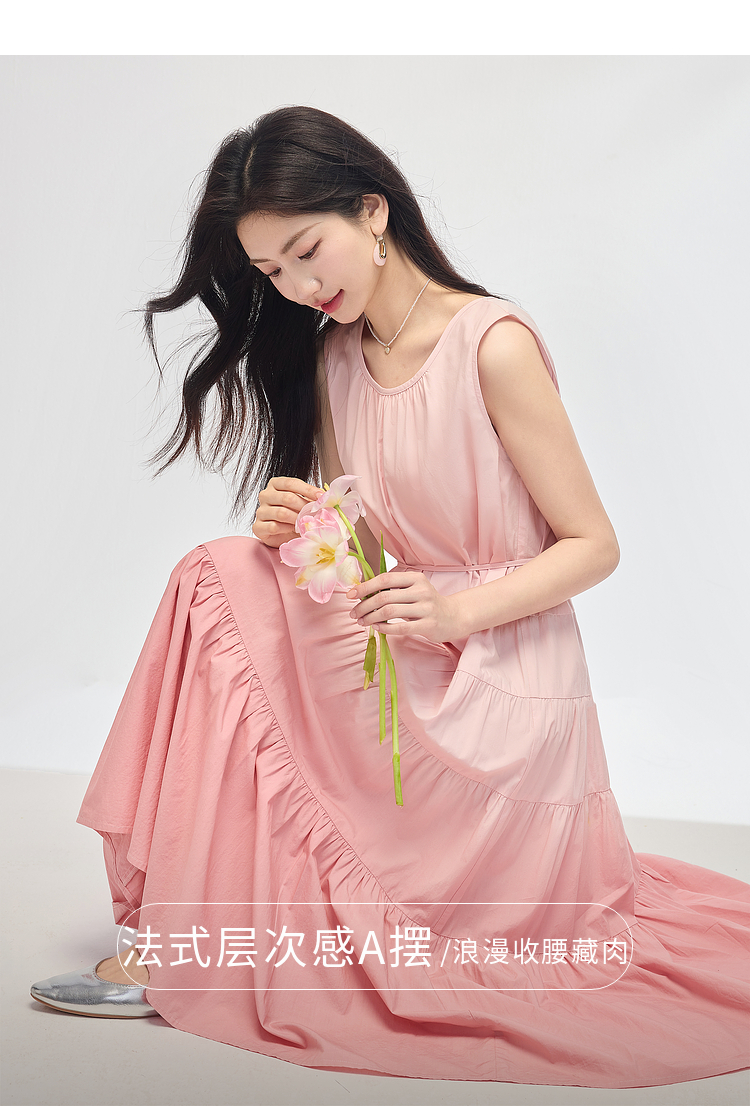 【初夏新品】熙世界约会穿搭渐变粉色无袖连衣裙女夏季收腰显瘦超好看蛋糕裙子