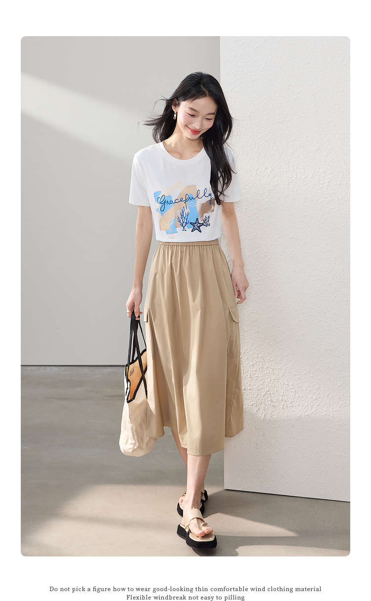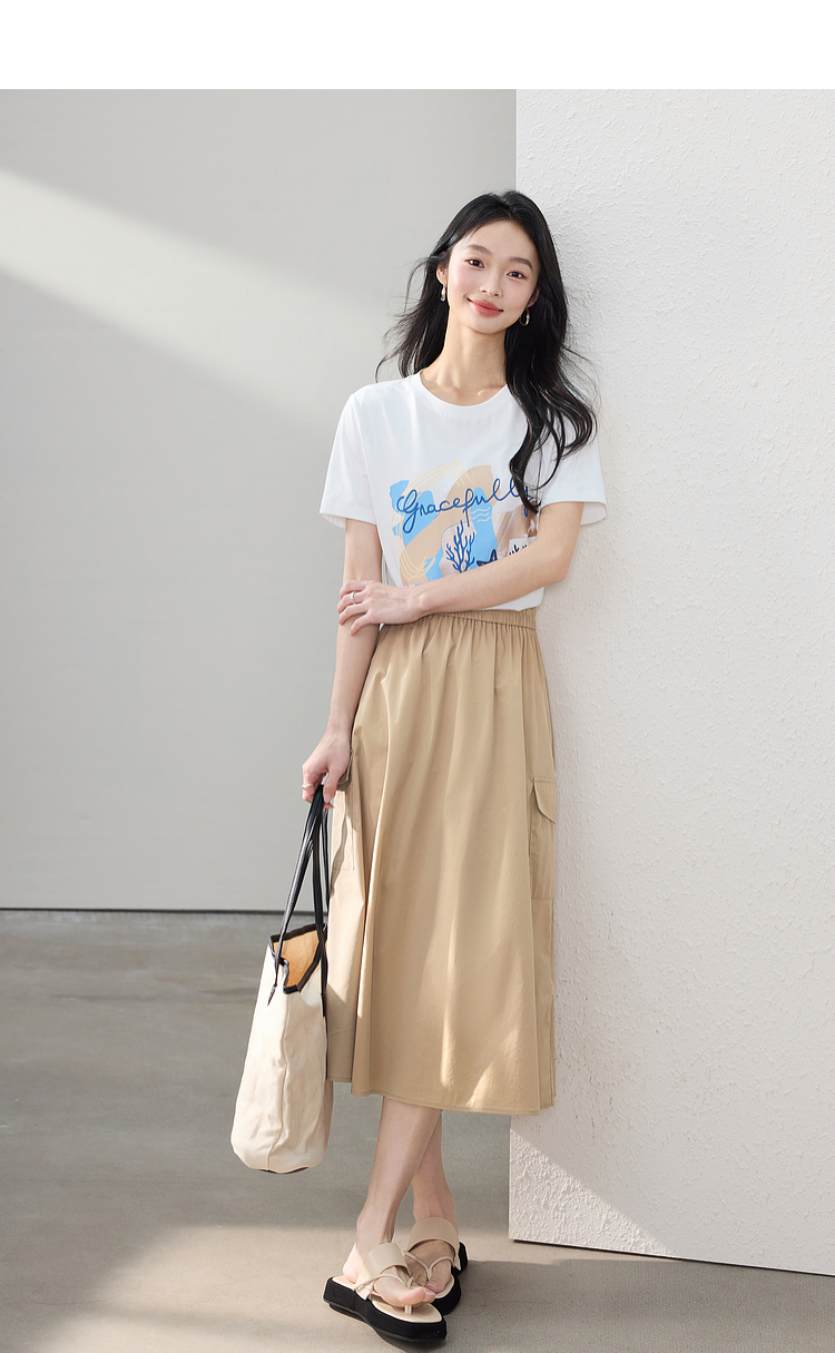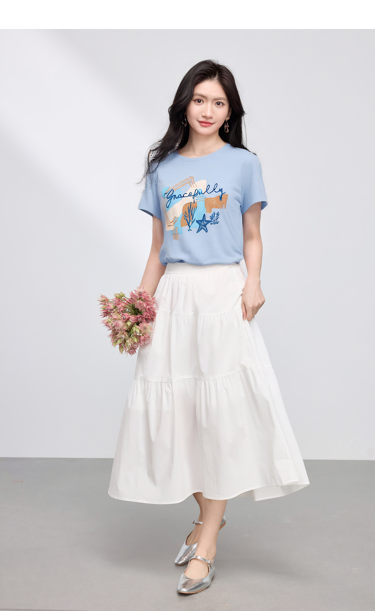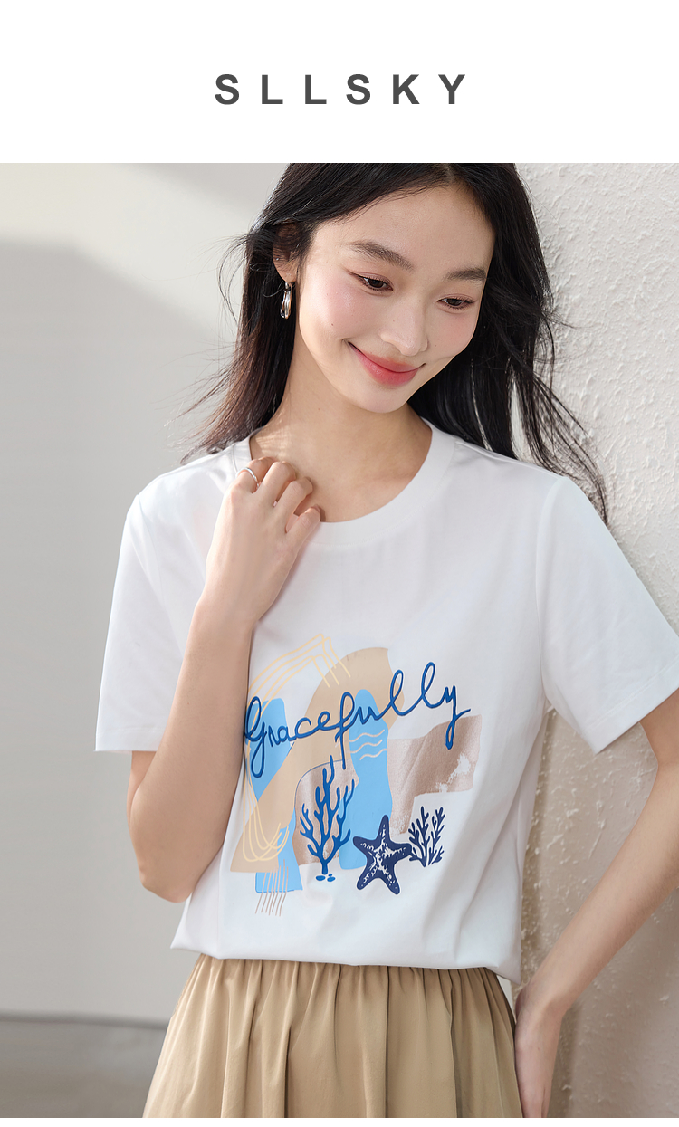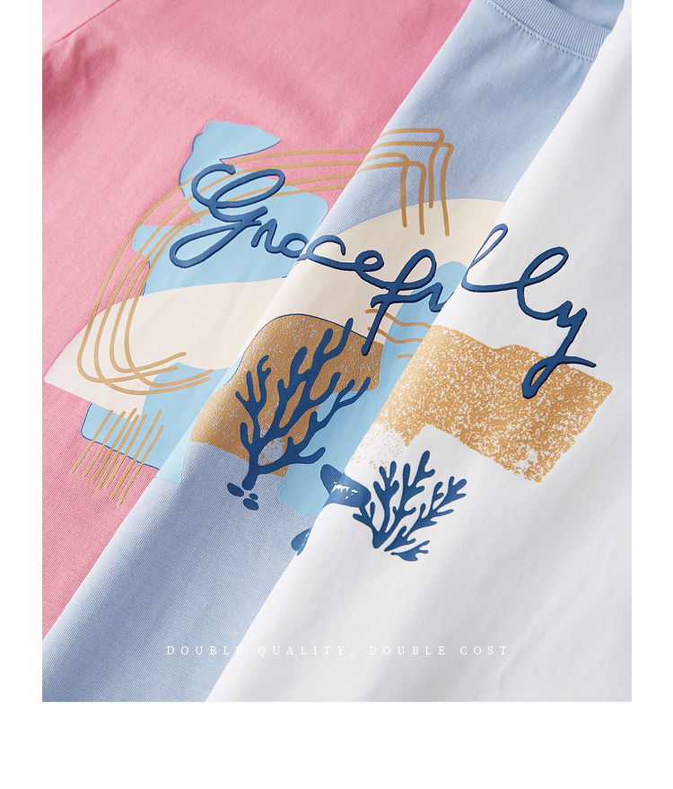 【专属特价】熙世界休闲印花体恤上衣女2025夏季新款时尚流行粉色短袖T恤正肩