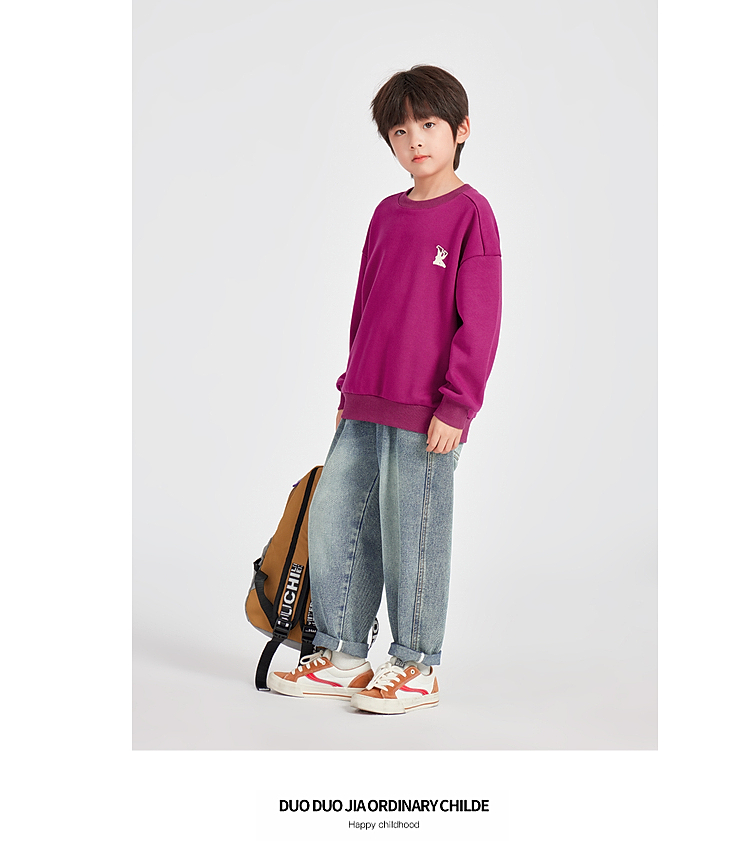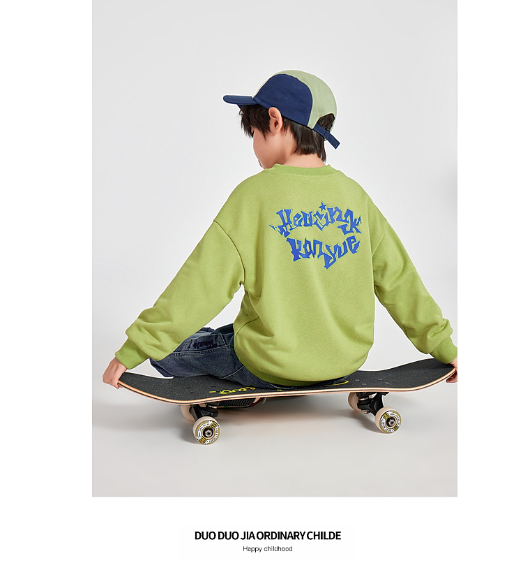 【团购价49.9】多多家男童卫衣2025新款春秋款儿童中大童圆领字母印花上衣春装潮10330