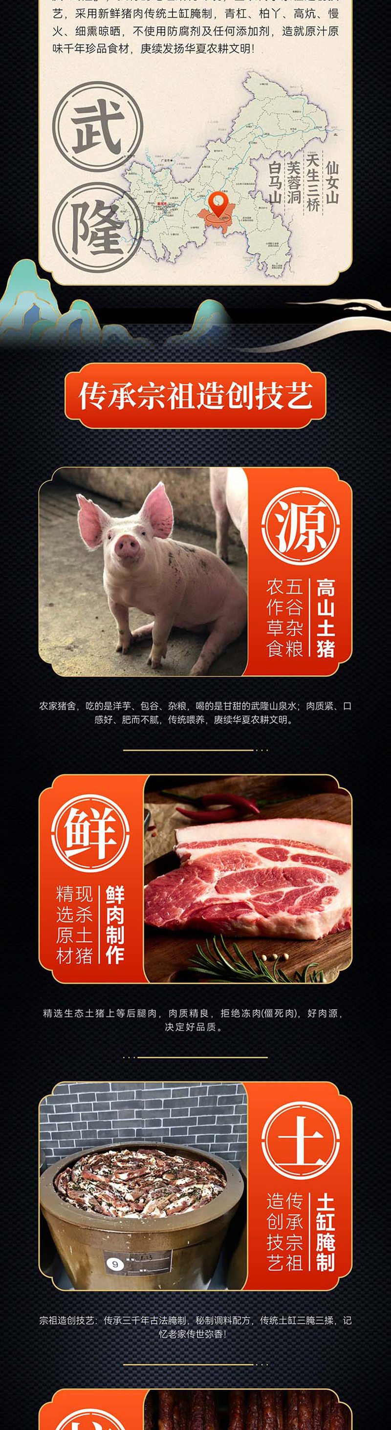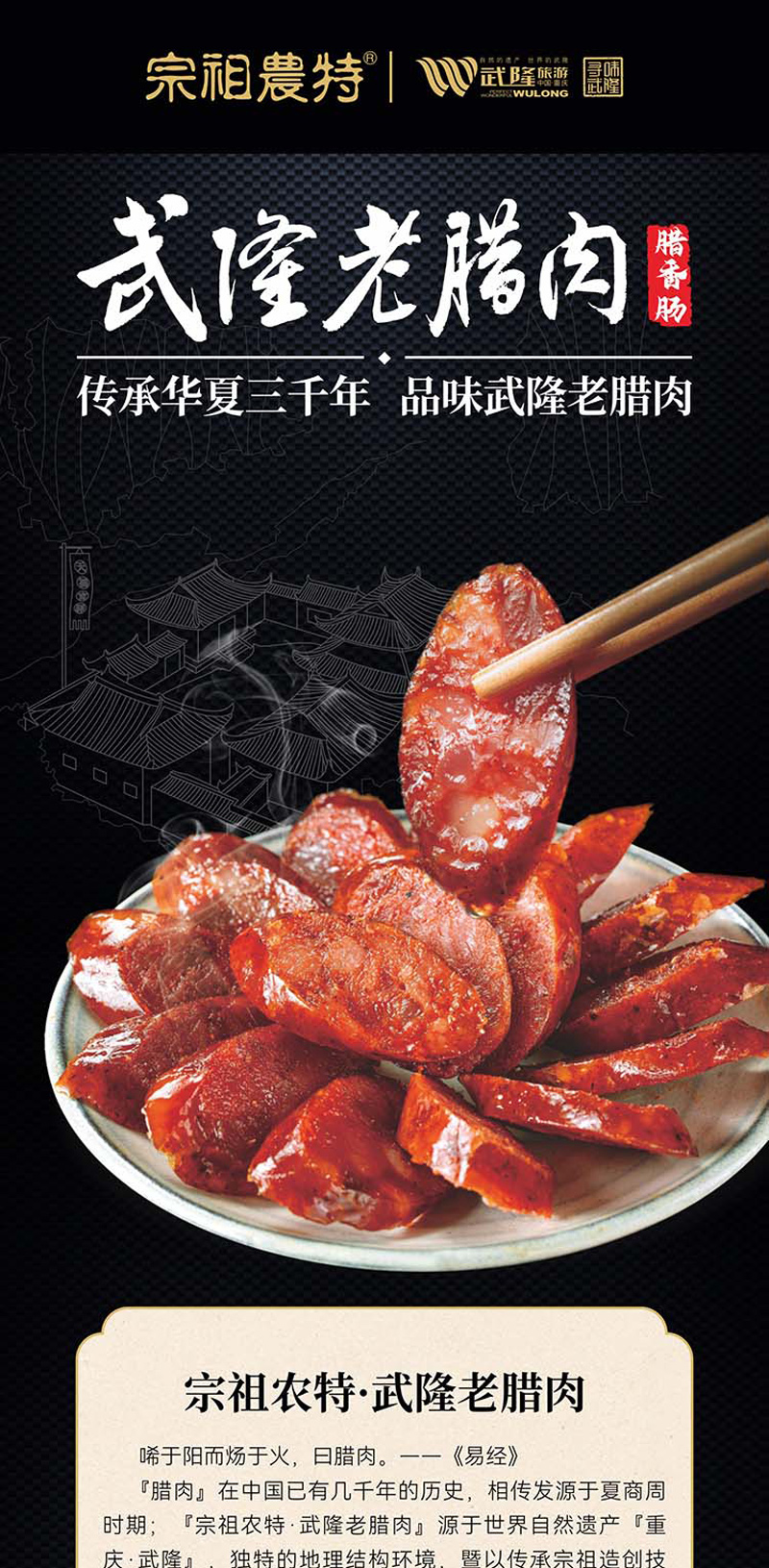 宗祖农特武隆老腊肉 高山土猪腊香肠原味 500g/袋