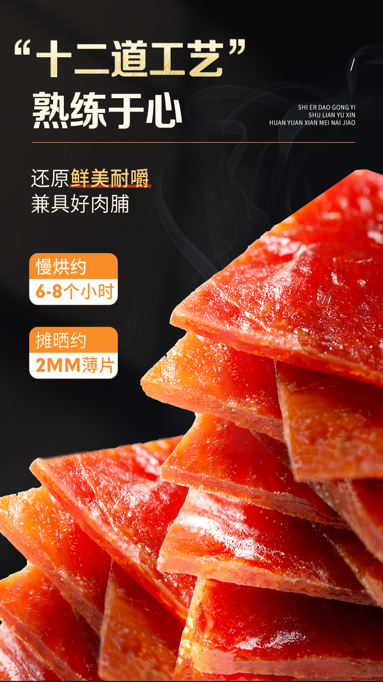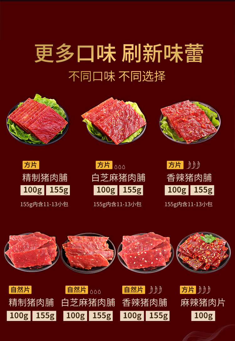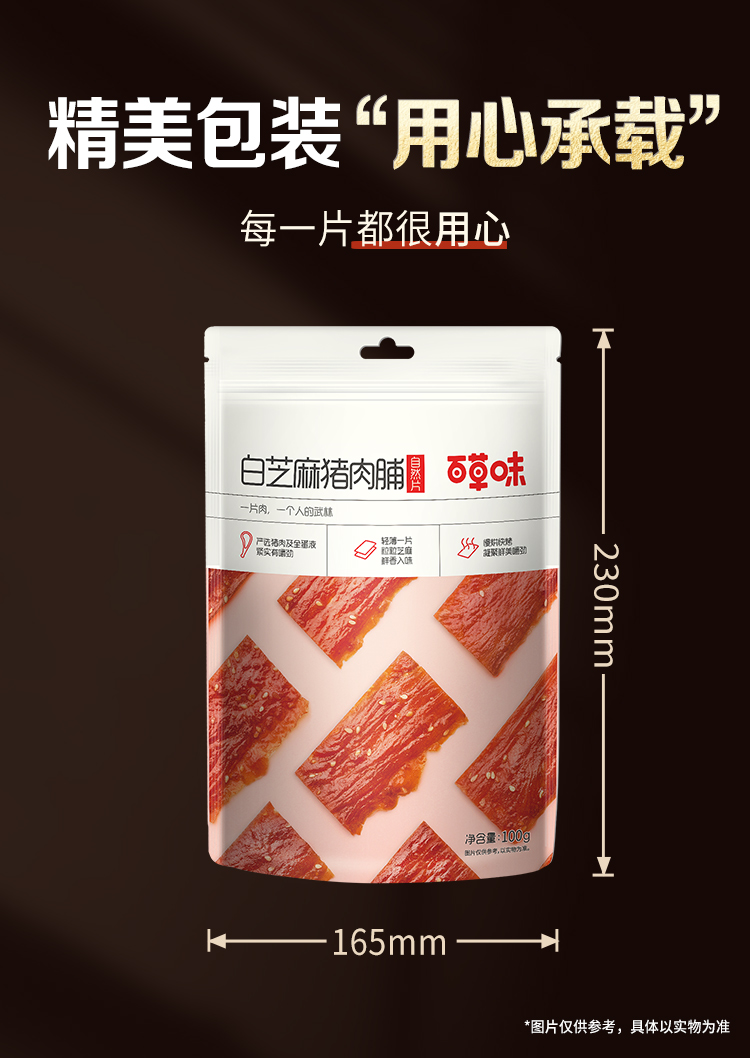 白芝麻猪肉脯自然片100g 靖江肉干 嫩而不柴