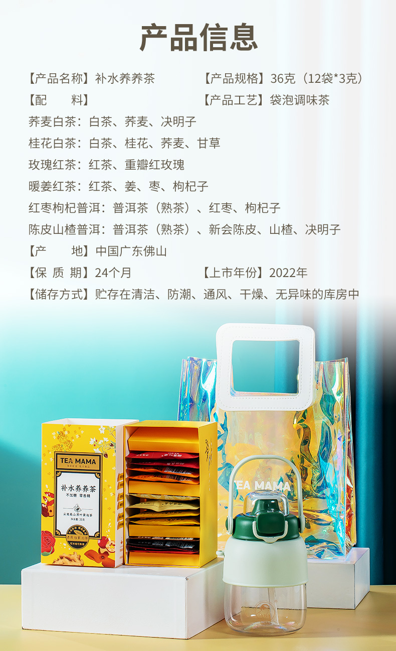 【积分兑换】澜沧古茶2022年补水养养茶袋泡茶12泡盒装+900ml大肚杯套组