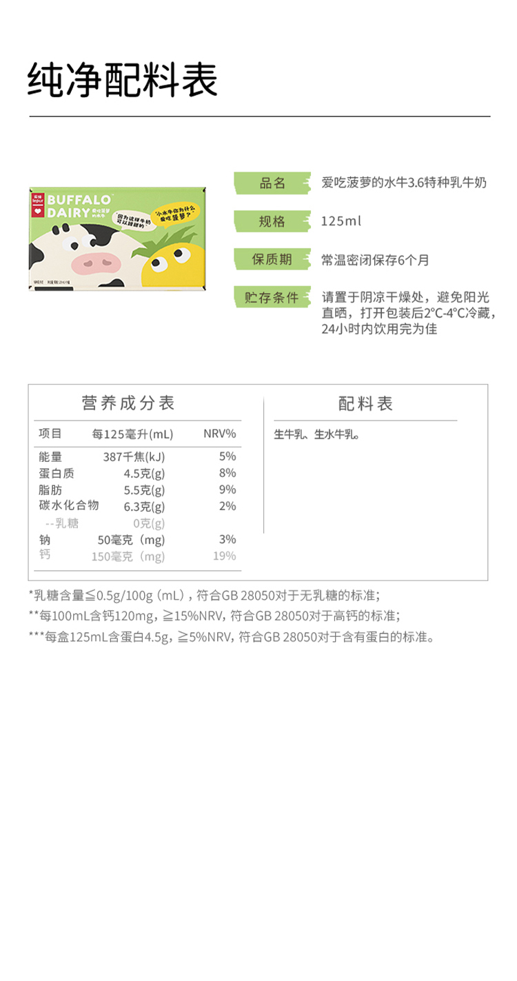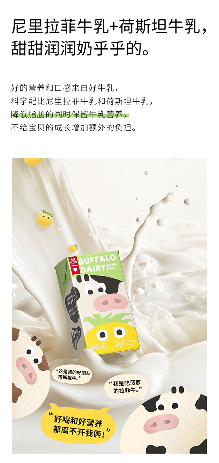 【专属】乐纯万里挑一轻盈lite零乳糖水牛牛奶儿童高钙营养早餐125ml