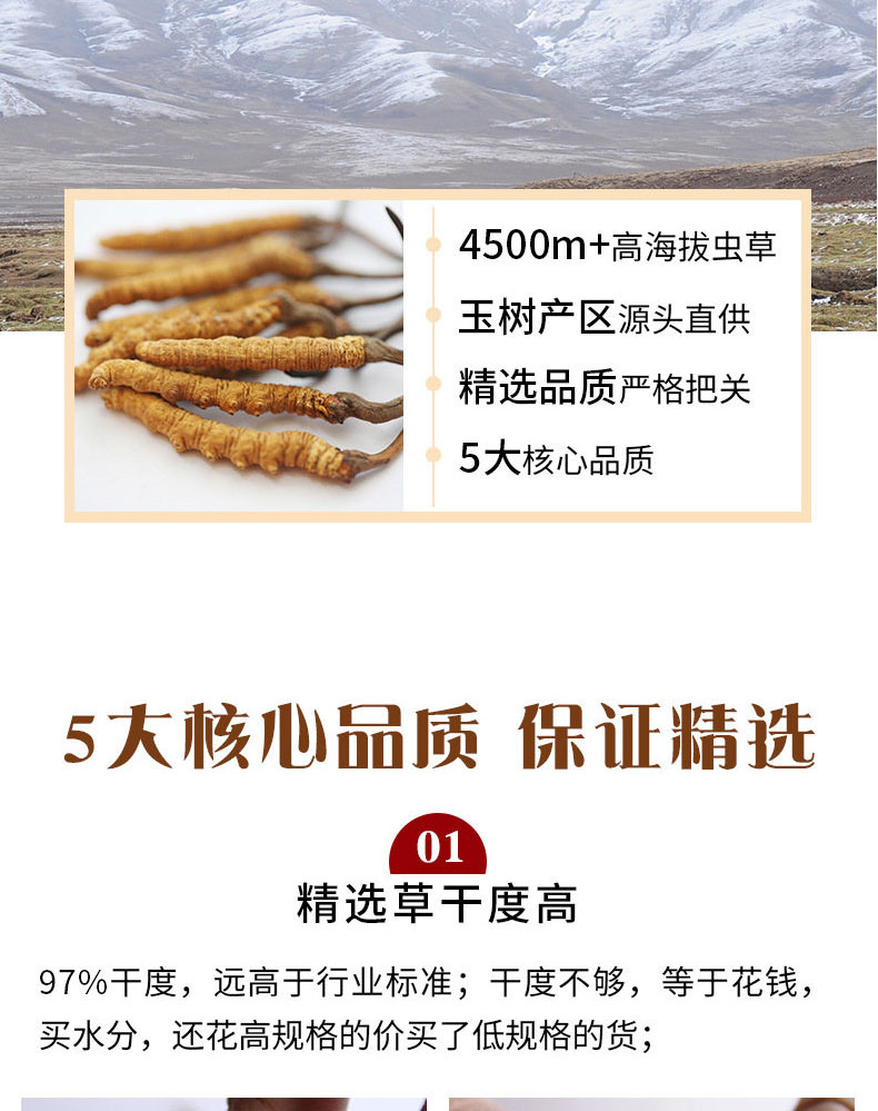 挑时青海玉树冬虫夏草 5500条/KG 50g·100g·250g·500g 无断草 无增重 无接驳