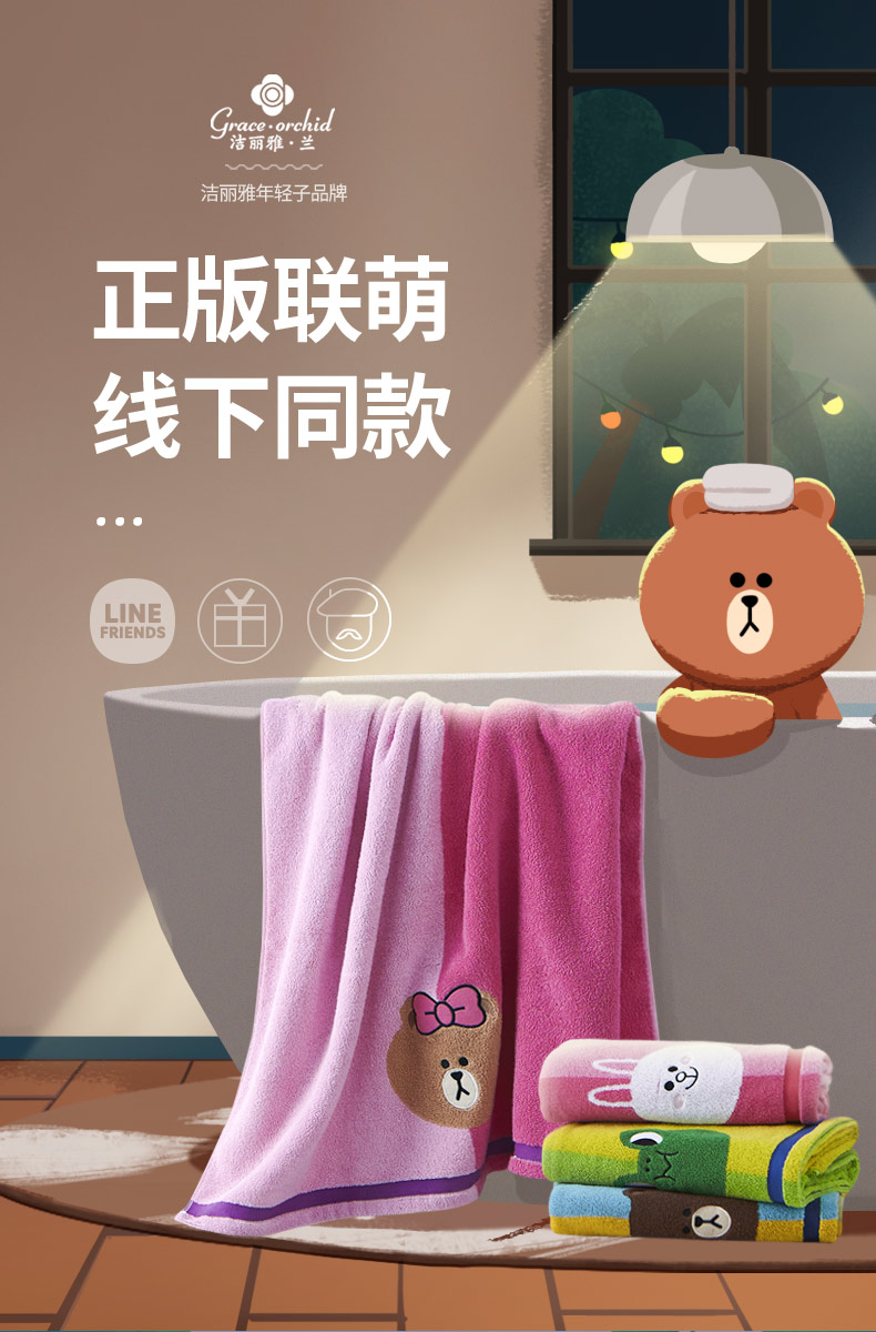 硬核补贴【line-friends正版联名】布朗熊新疆大浴巾 全棉提花款