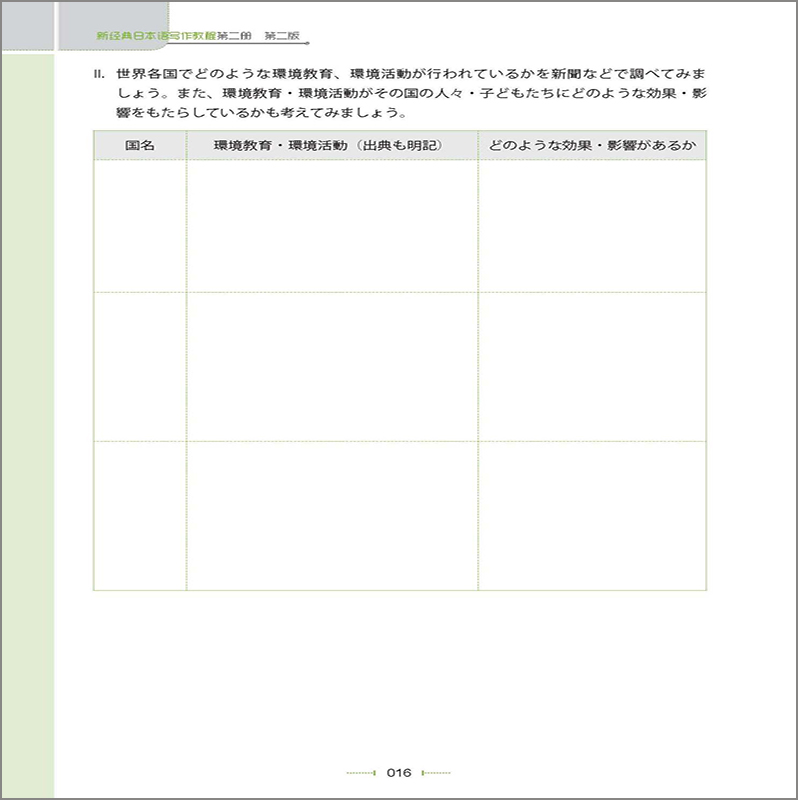 人们极其关注的热点主题进行了写作方法、写作注意要点等的讲解,最后一单元为实践篇。单元1针对环境问题,介绍如何调查、解读环境问题现状以及如何考虑构建可持续发展社会;单元2探讨共生社会问题,介绍如何考虑构建更加舒适的社会环境等;单元3以科学技术为主题,思考信息社会、先进科技的功与过;单元4讨论文化理解问题,介绍不同地域文化并探讨国民性;单元5为实践篇,教授如何融合前四单元来完成研究计划书、应聘申请表的书写。