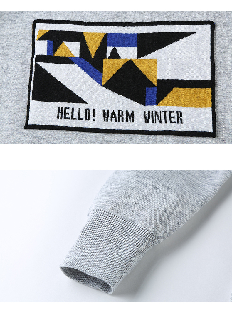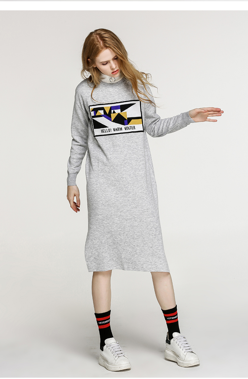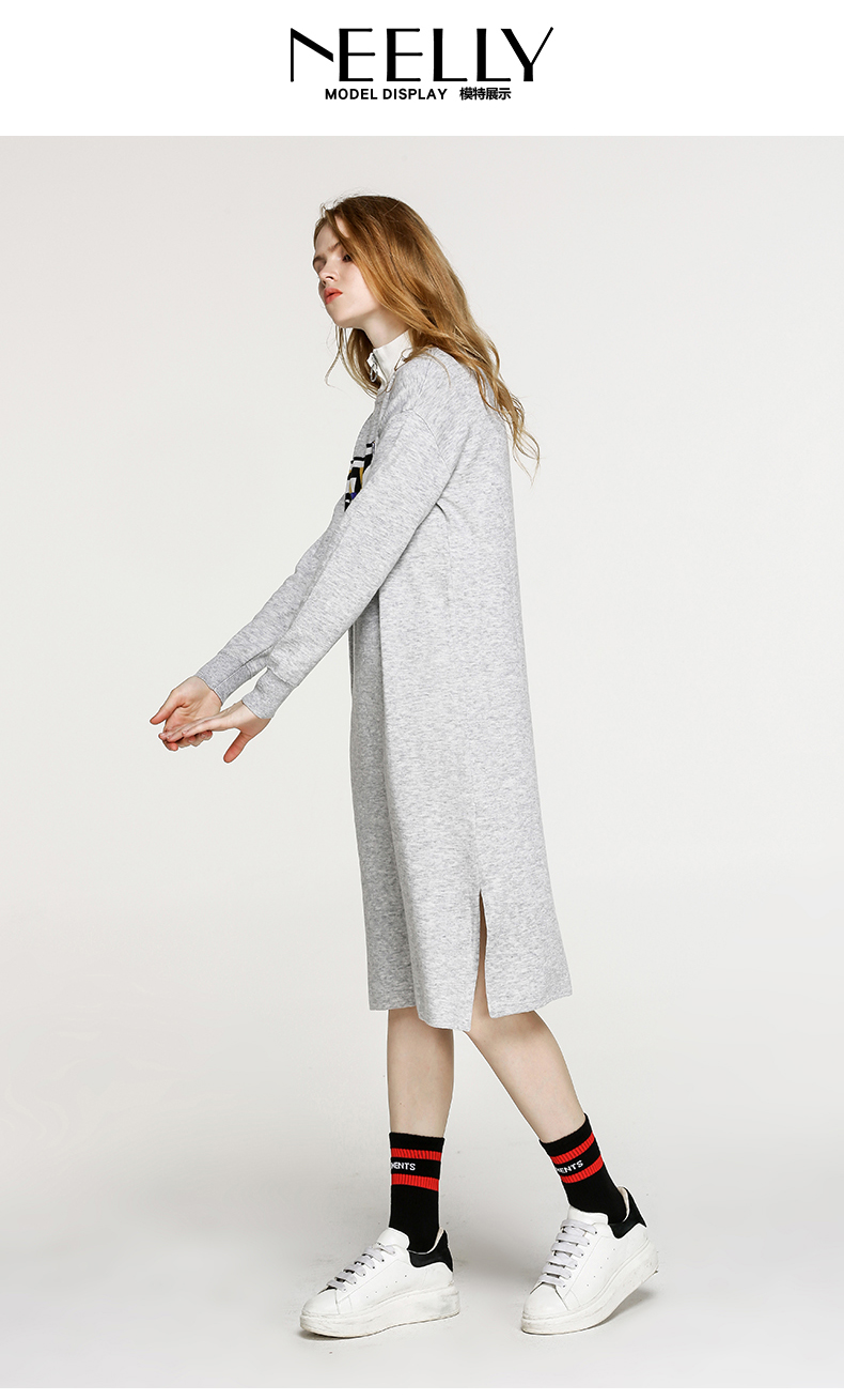 NEELLY/纳俪冬季新款中长款套头通勤开叉几何拼接针织连衣裙