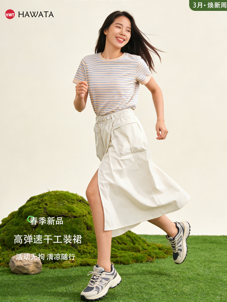 哈瓦塔新款(中长款裙)轻户外工装口袋裤裙 H361107