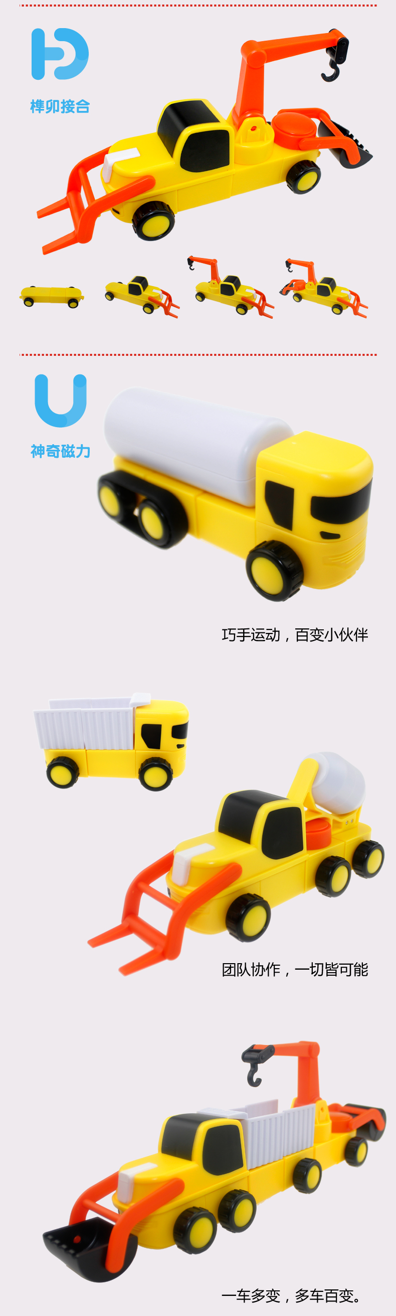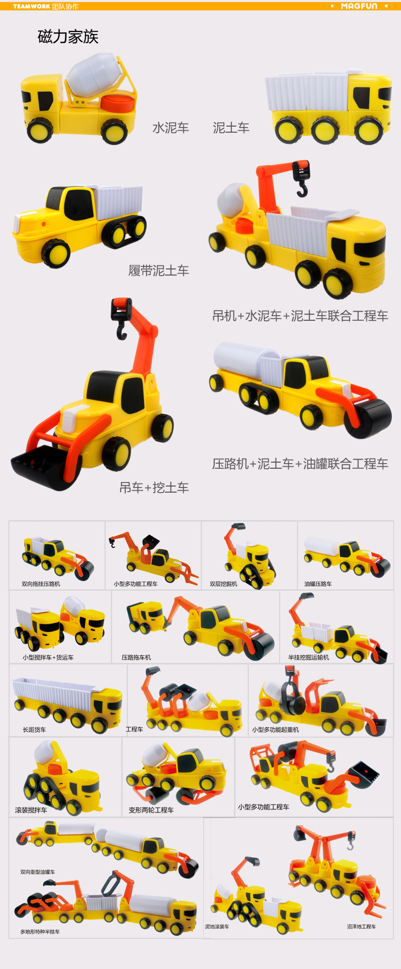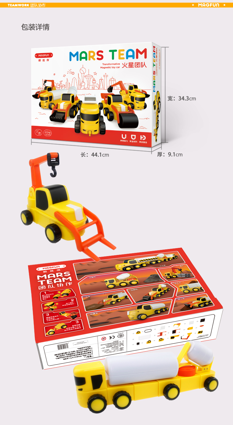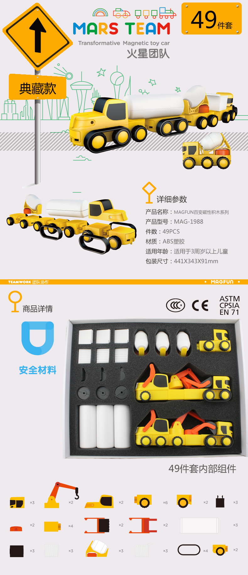 Magfun酷彼伴 火星团队系列工程车家庭款 一车多变磁力磁性积木3岁+