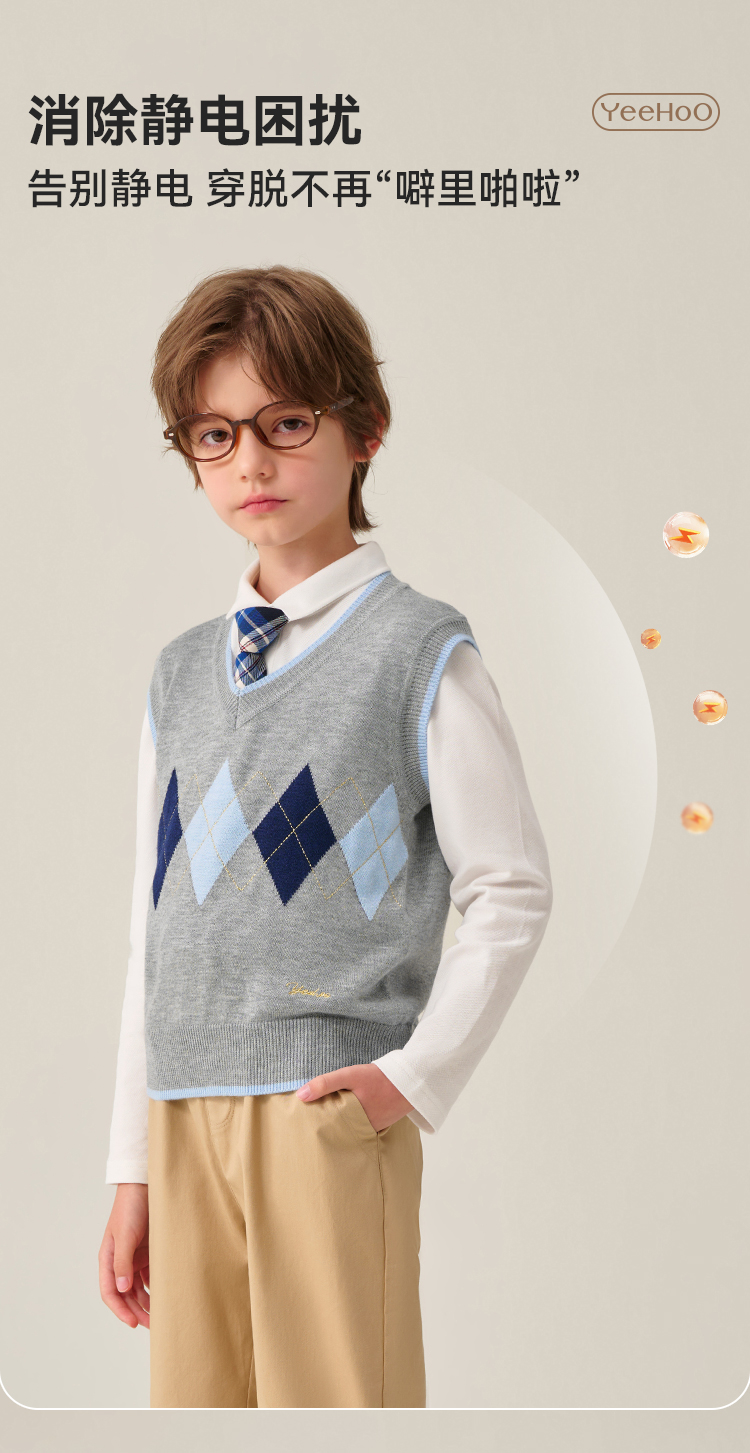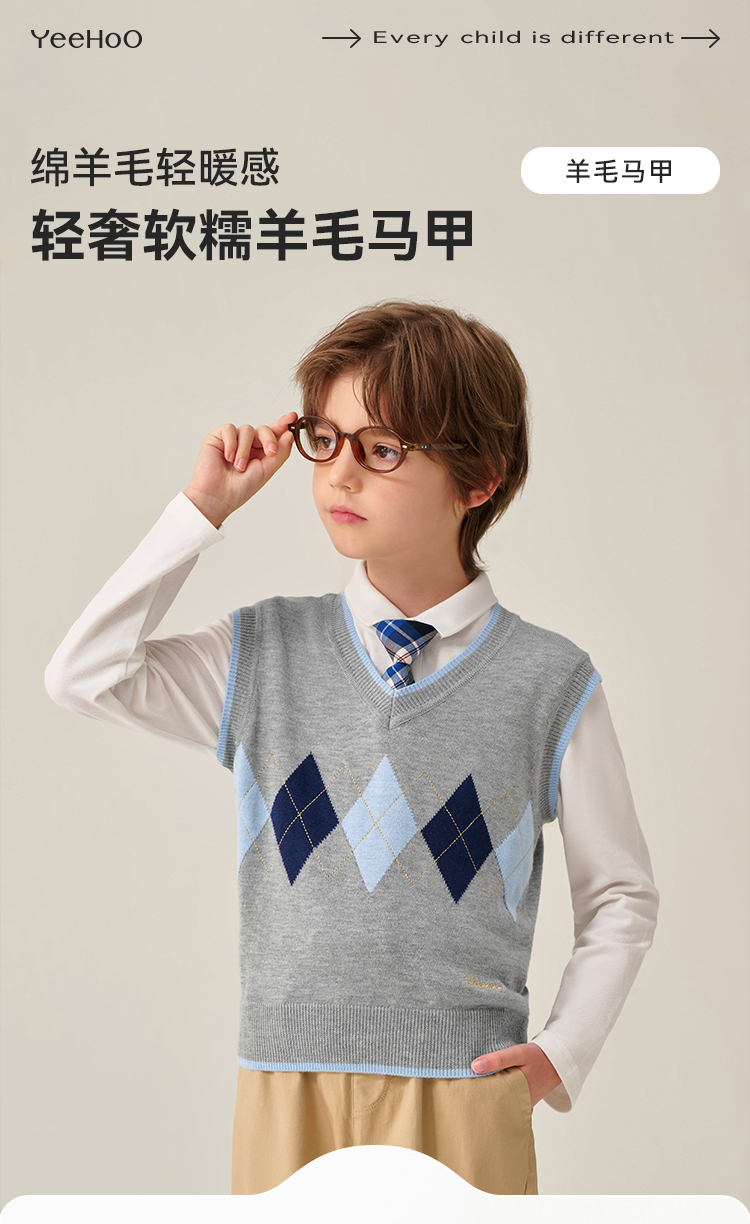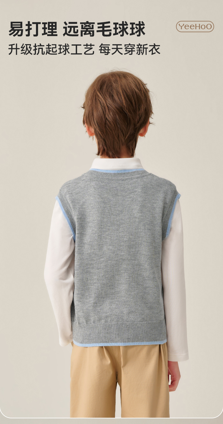 【英氏】【含绵羊毛】【120-165】男童针织衫马甲
