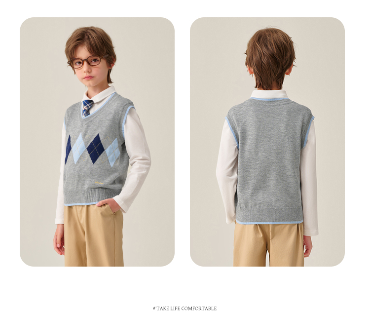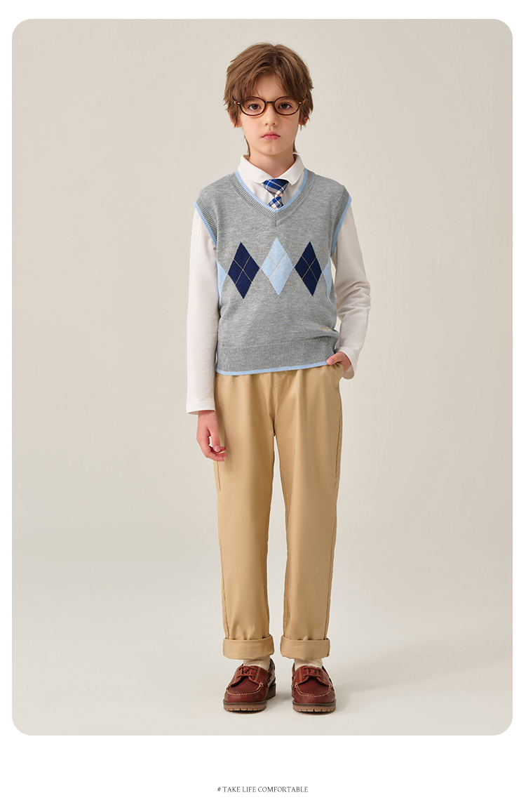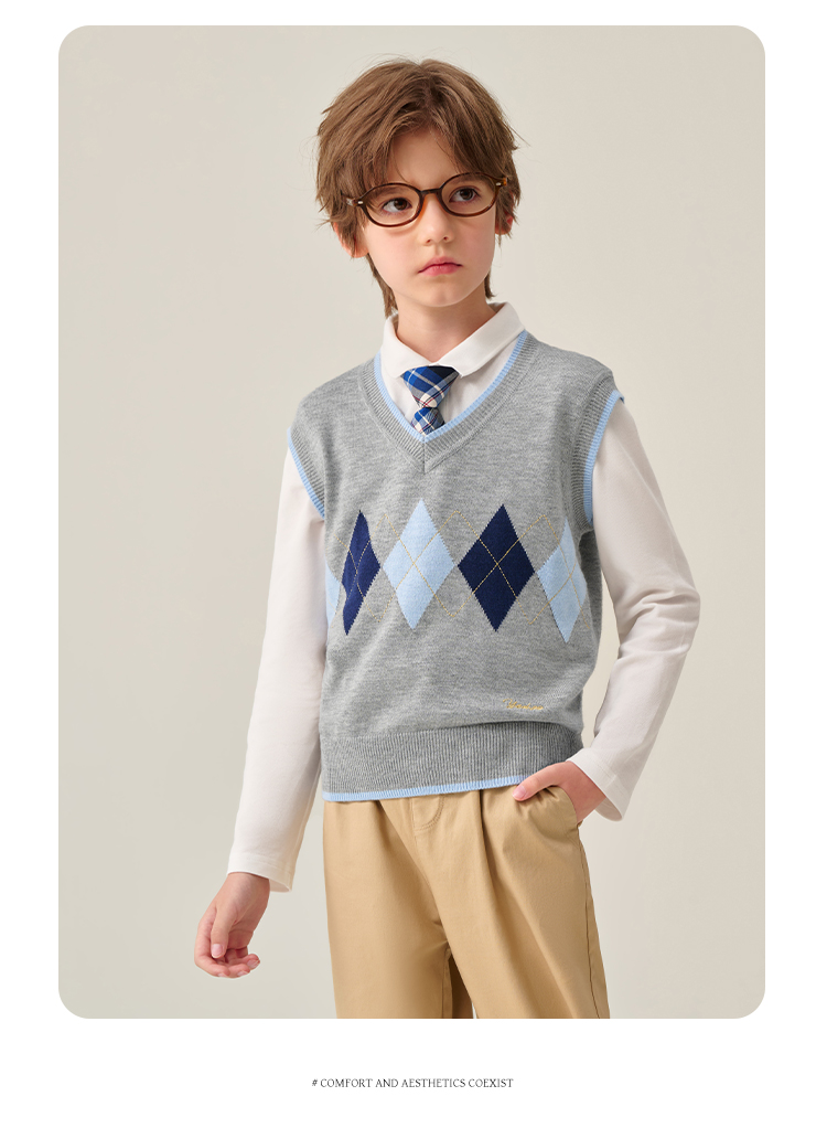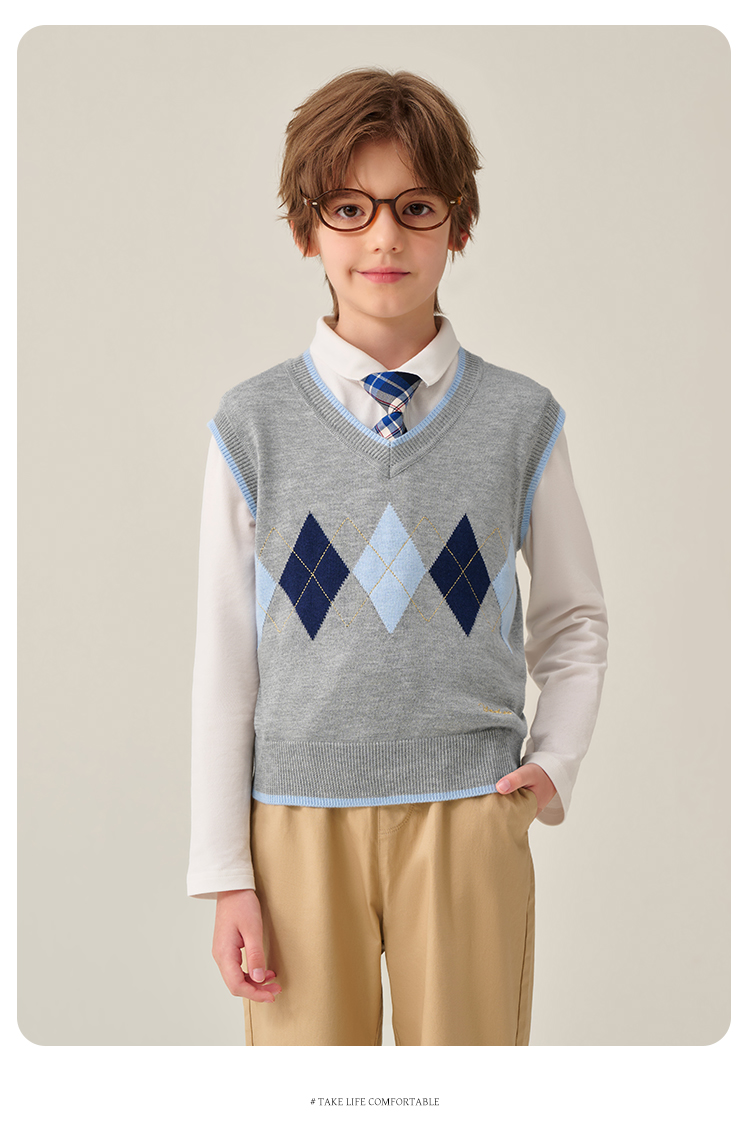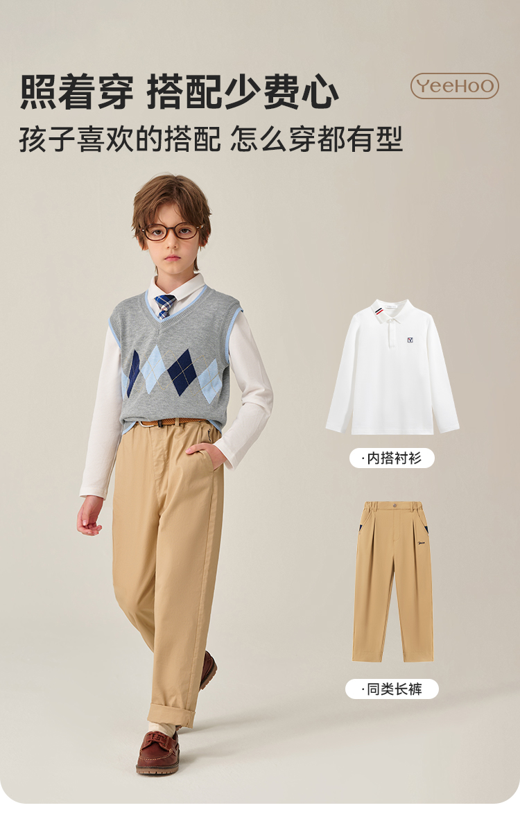 【英氏】【含绵羊毛】【120-165】男童针织衫马甲