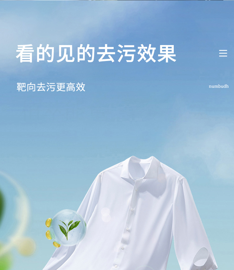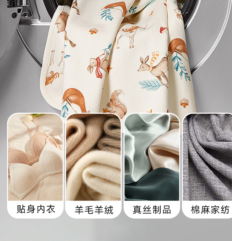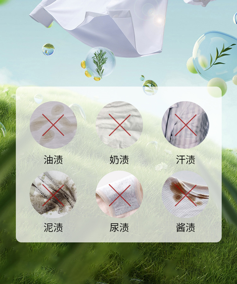 适用于多种面料、多种污渍,低泡易漂洗,节水又环保,手洗机洗皆可;