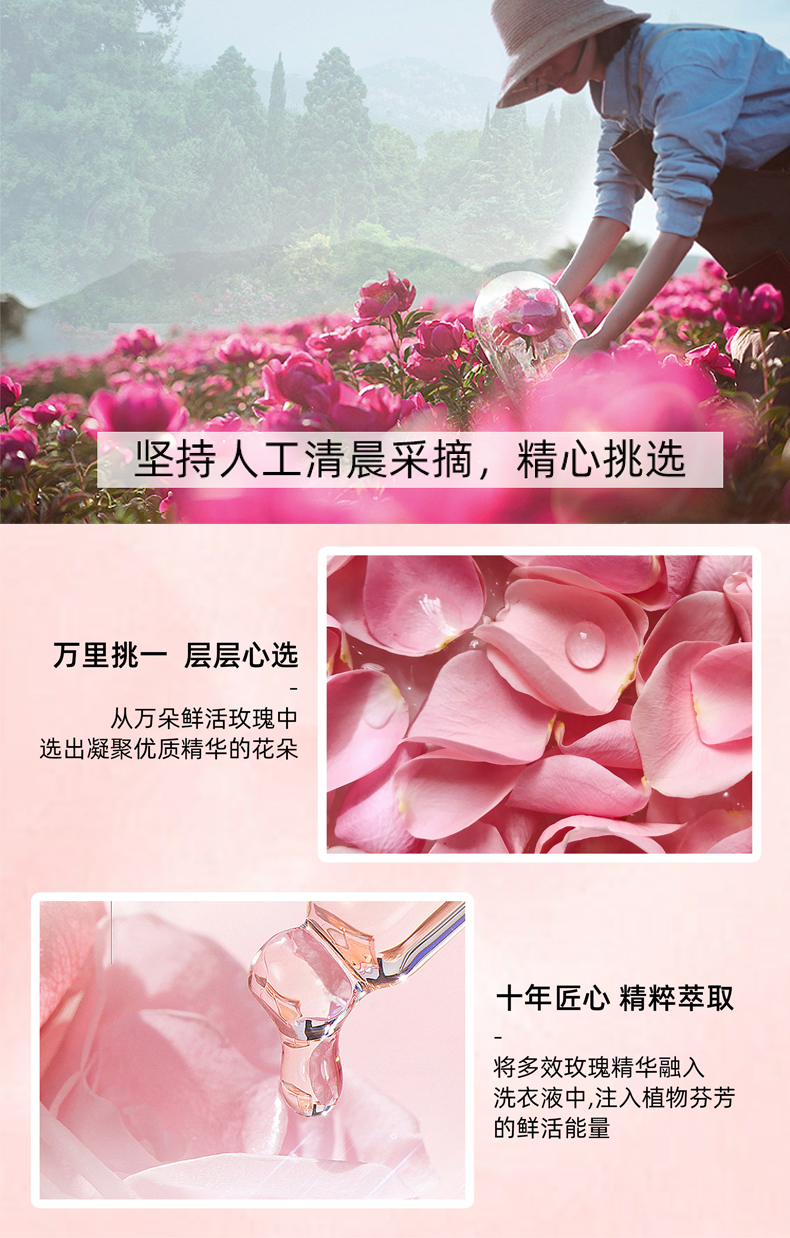 添加保加利亚进口精油,先进科学萃取工艺,经先进微胶囊技术处理,牢牢附着在衣物纤维上,香气缓缓释放,自然芳香不刺鼻;