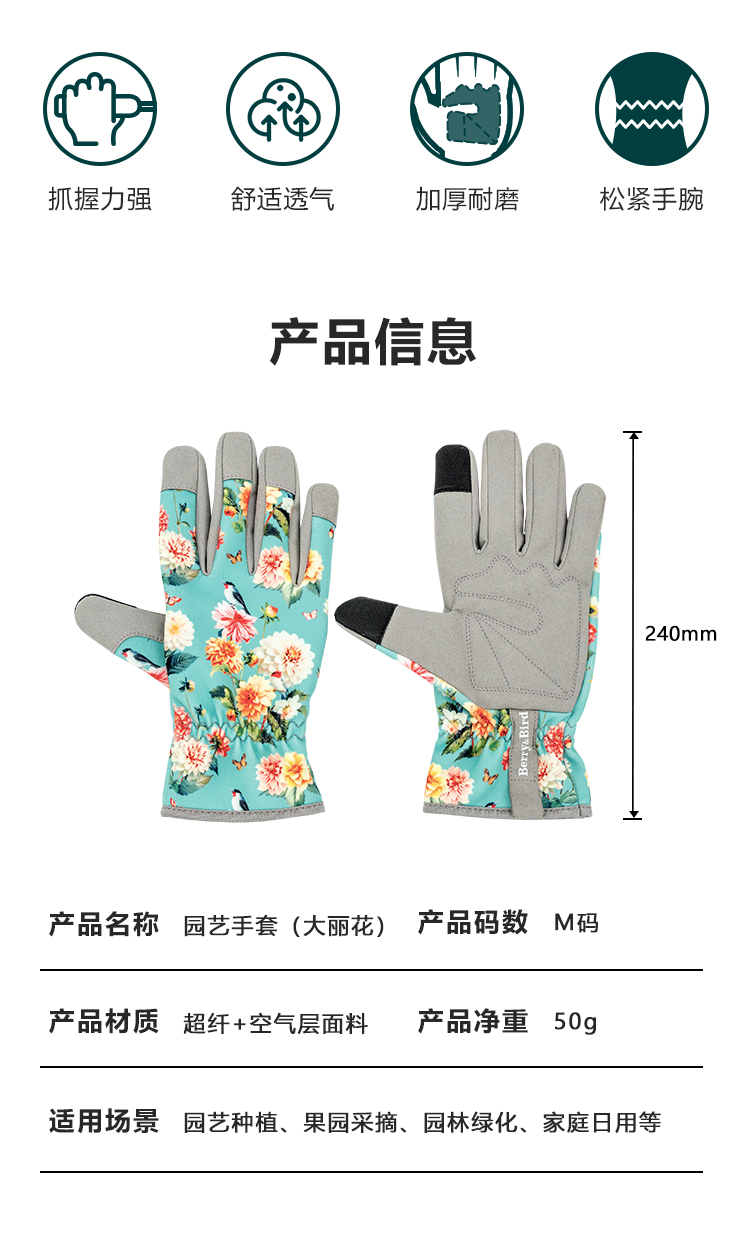 【云优选】Berry&Bird园艺手套(大丽花)