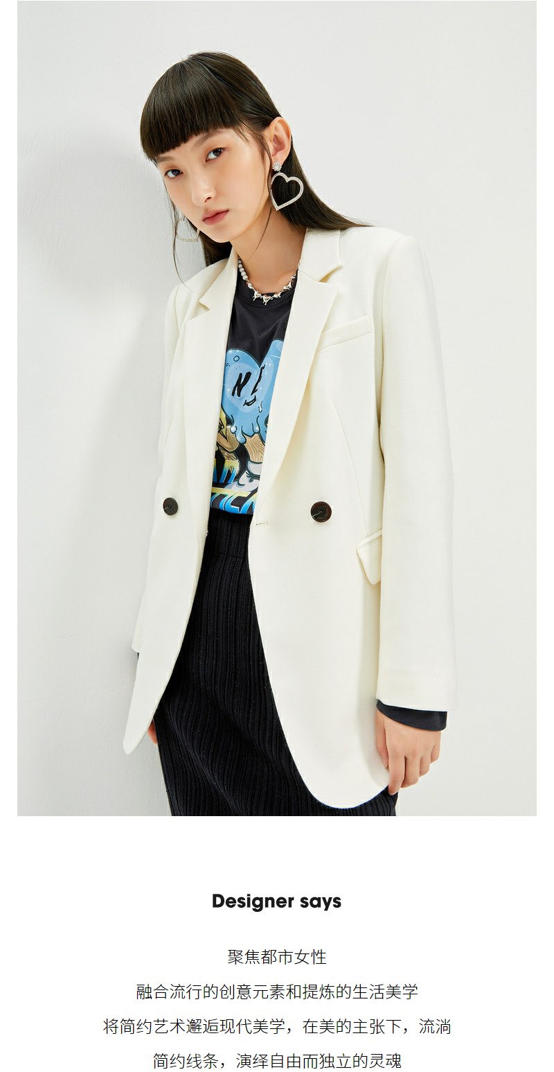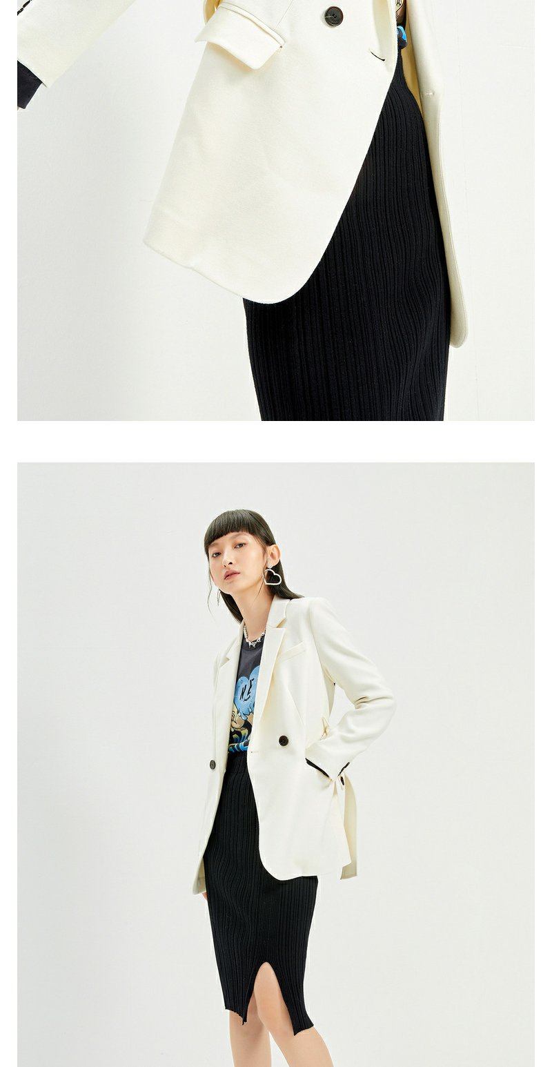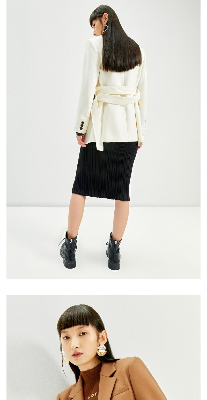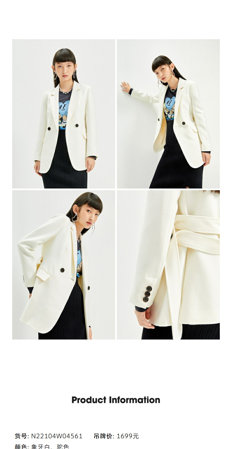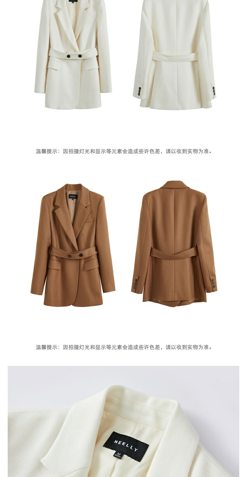 NEELLY纳俪2022年新款休闲白色西装外套女系带收腰气质外套职业装N22104W04561