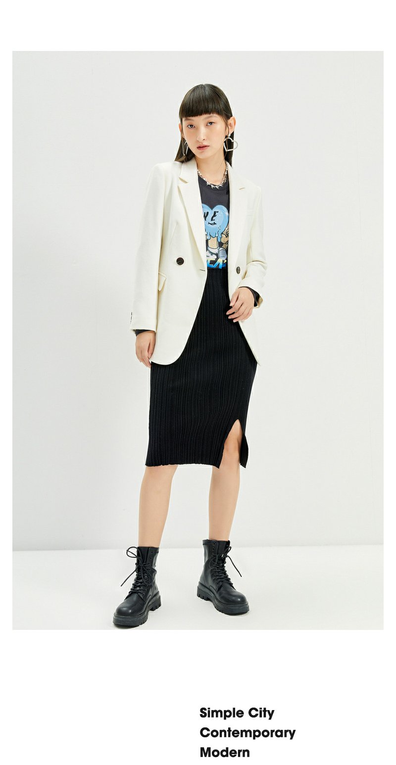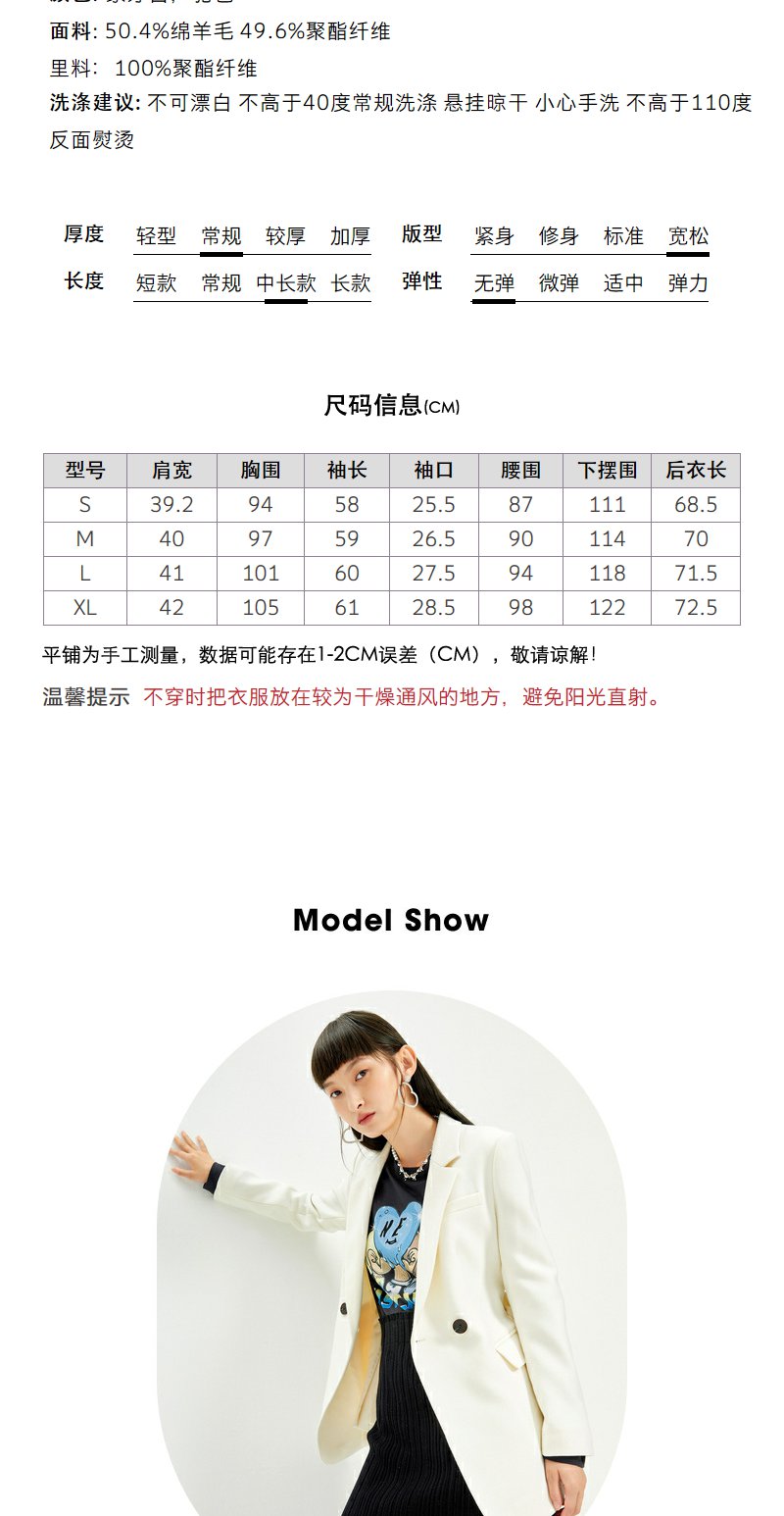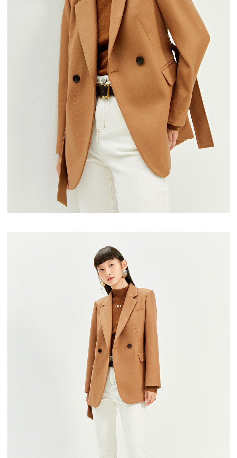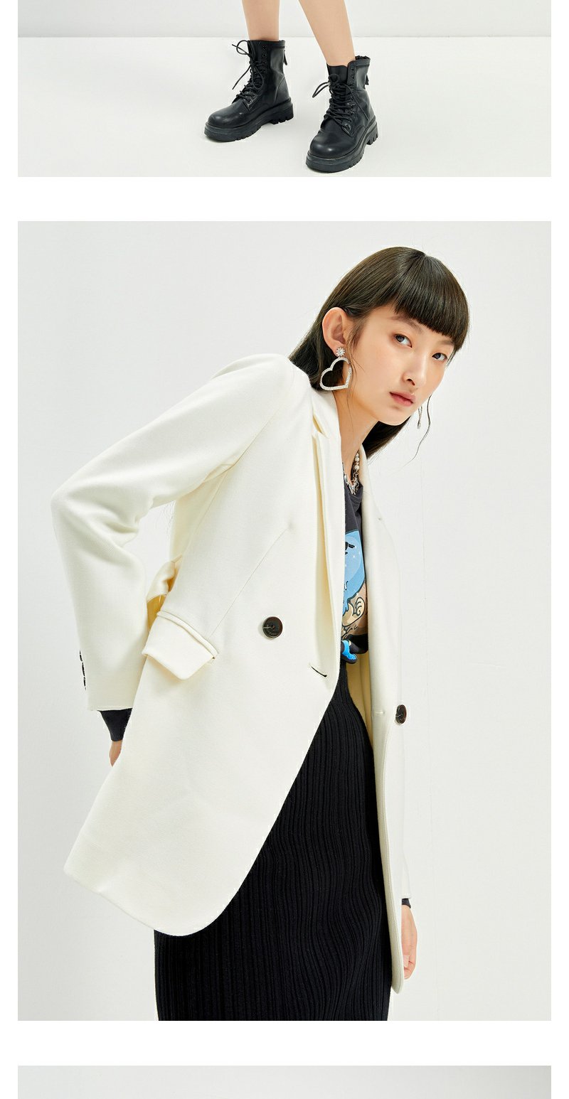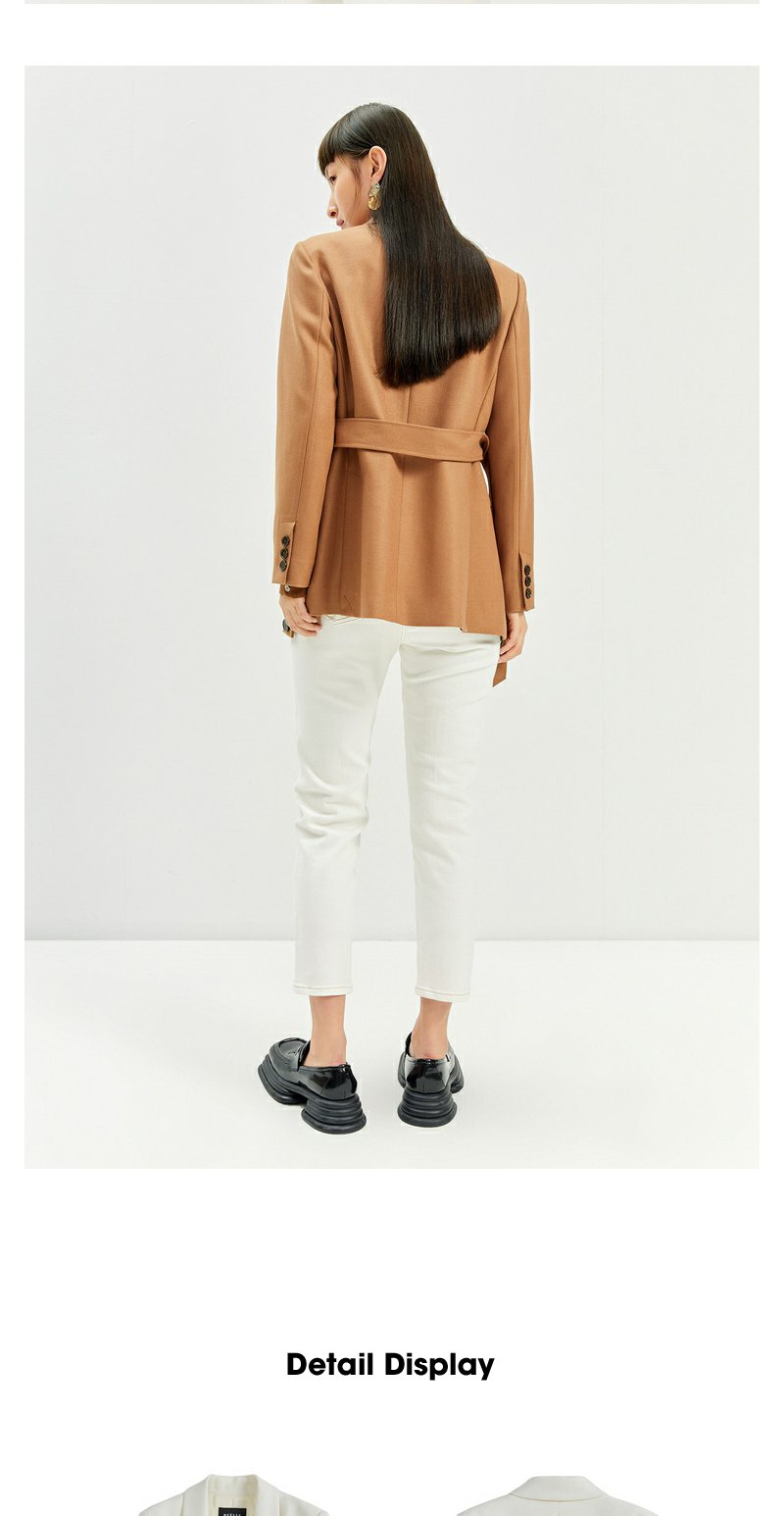 NEELLY纳俪2022年新款休闲白色西装外套女系带收腰气质外套职业装N22104W04561