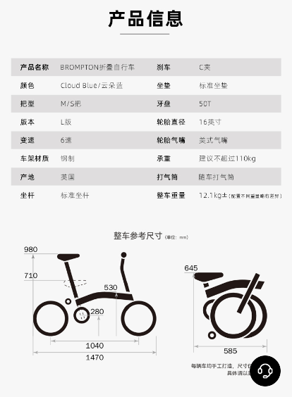 BROMPTON/Cloud Blue云蓝(MY23 C-Line)
