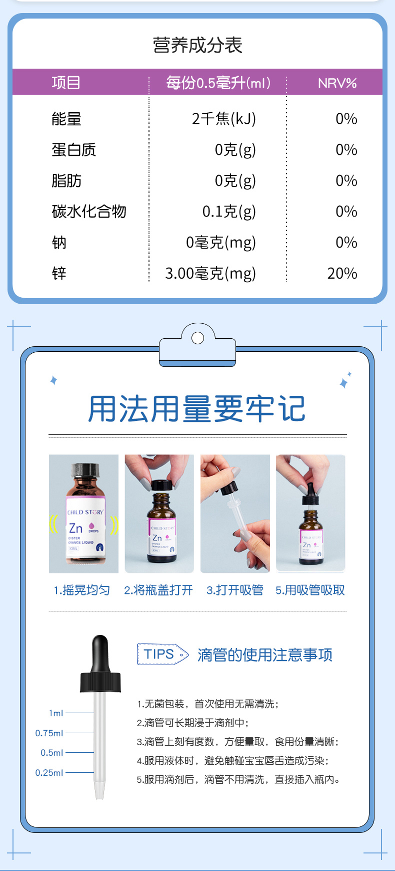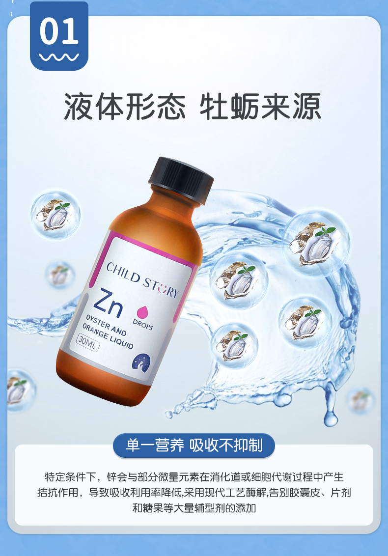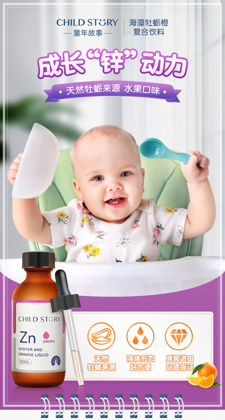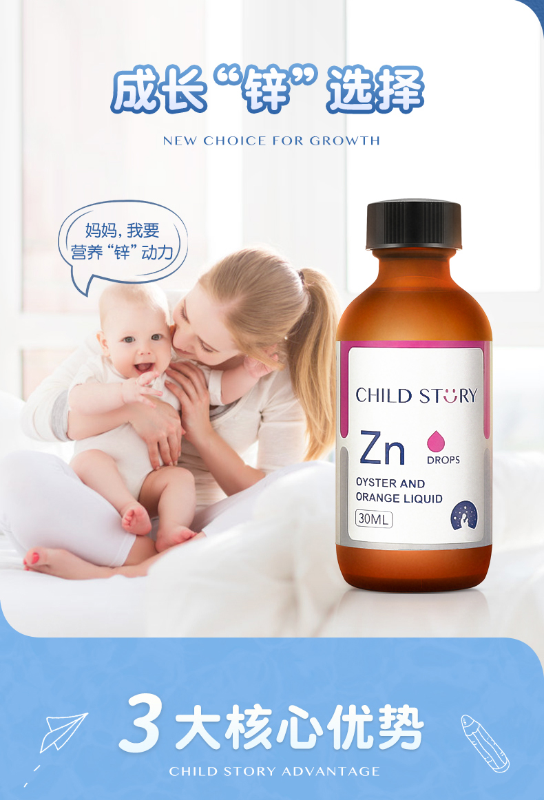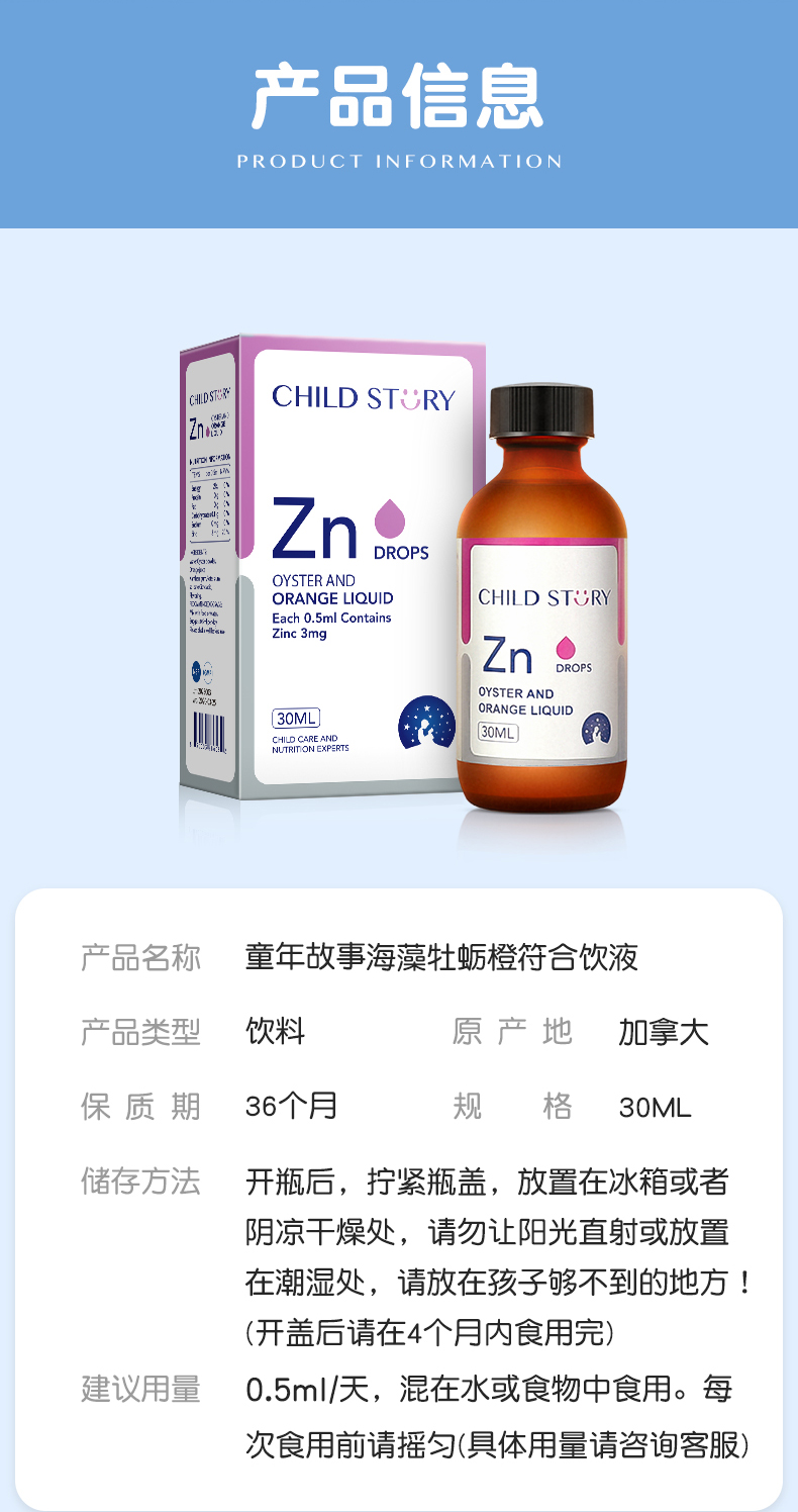 童年故事海藻牡蛎橙复合饮液锌滴剂儿童液体锌补锌加拿大进口30ml