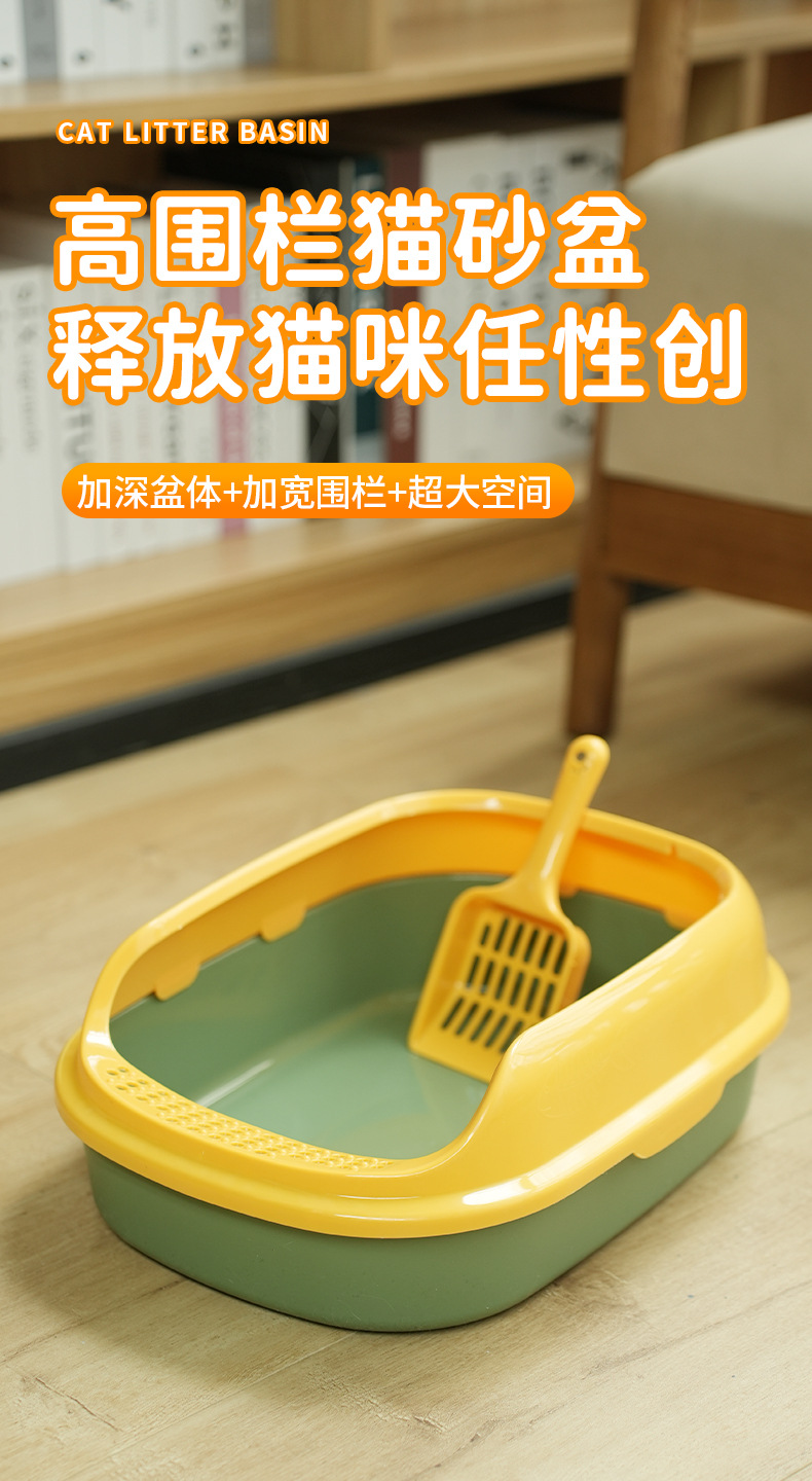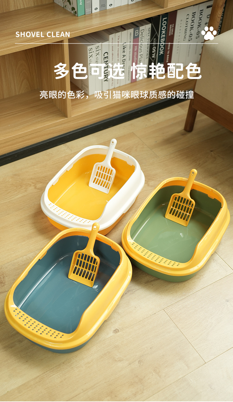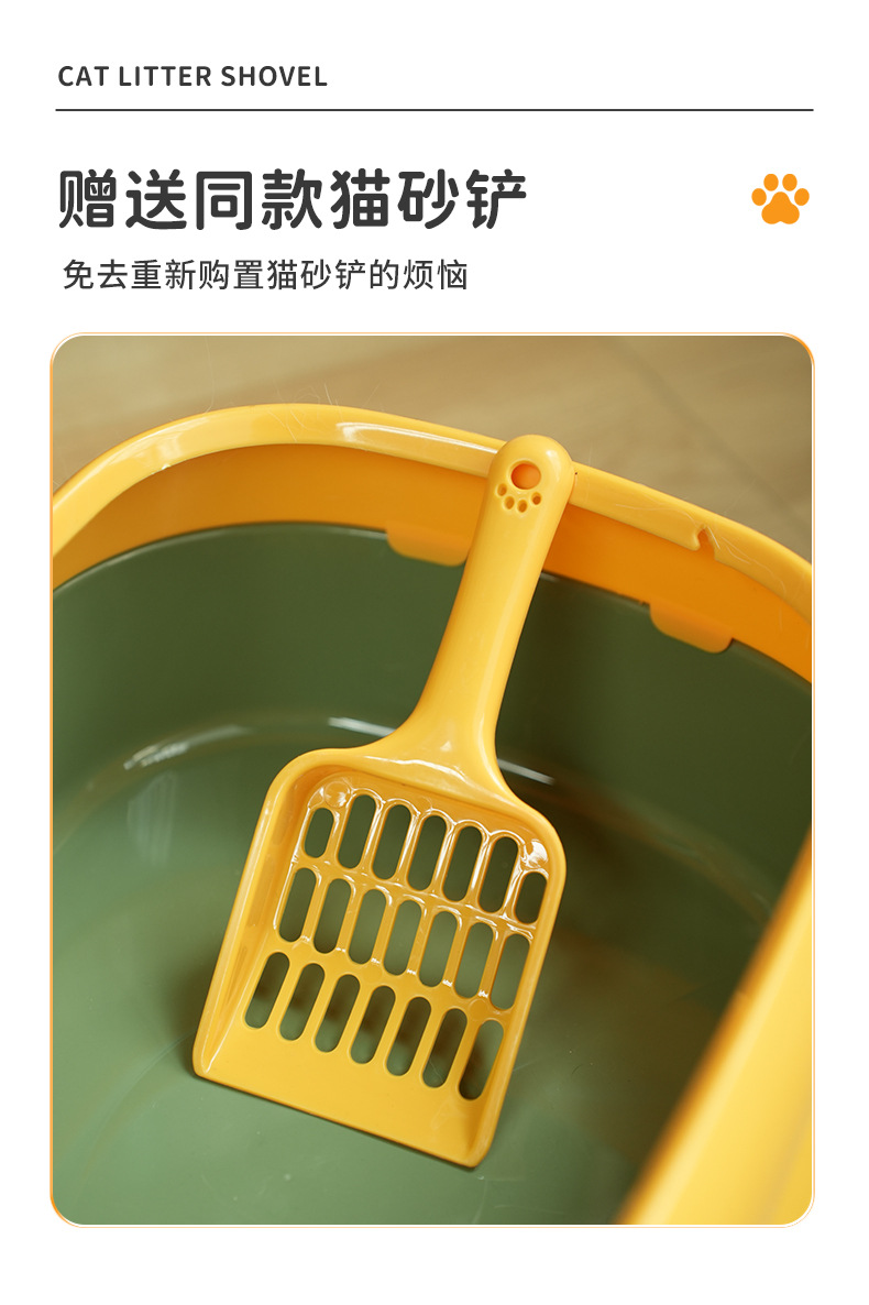 拼色猫砂盆半封闭式 高围栏 赠猫砂铲 尺寸约40*29*13.5cm 猫厕所批发
